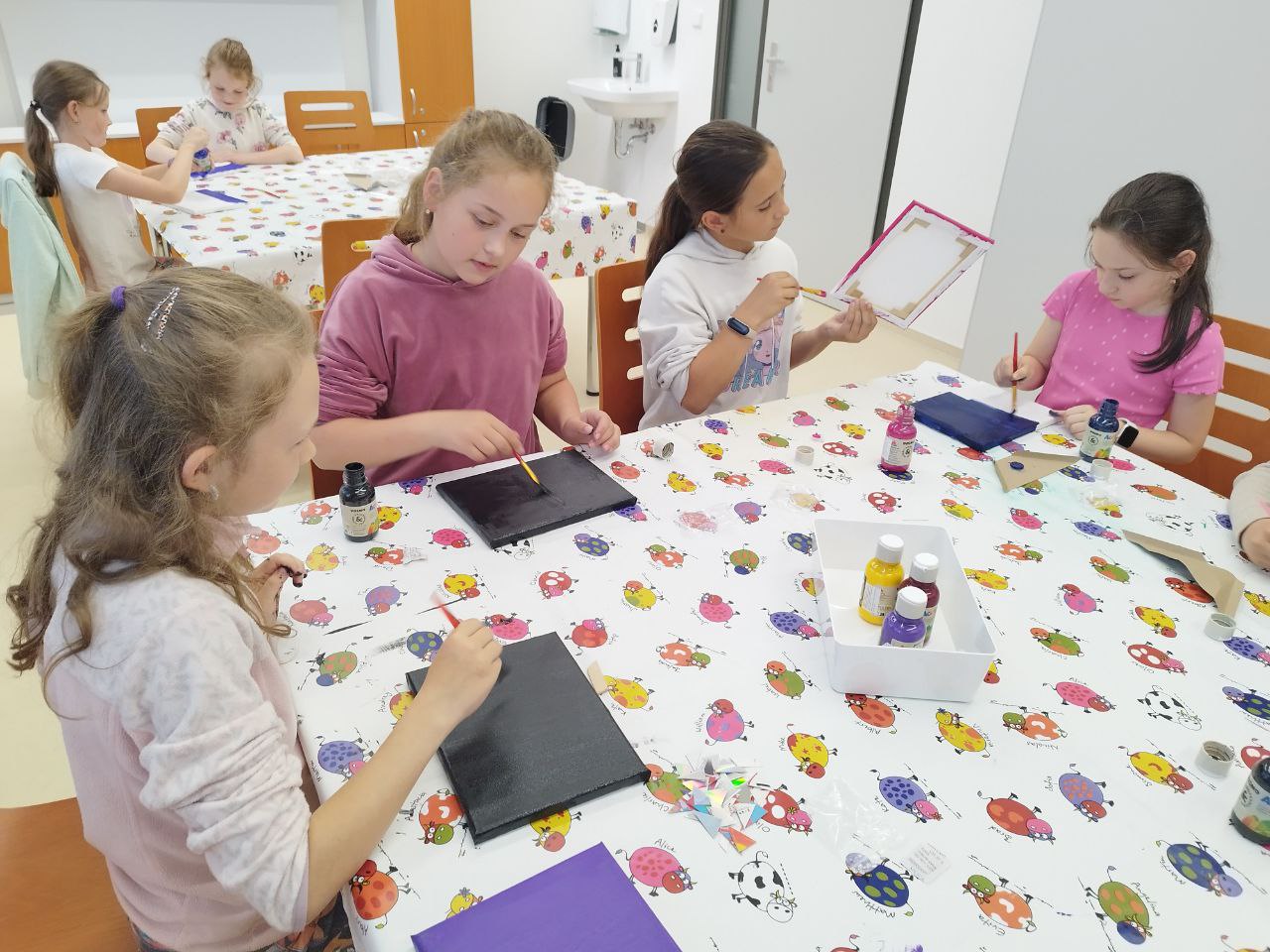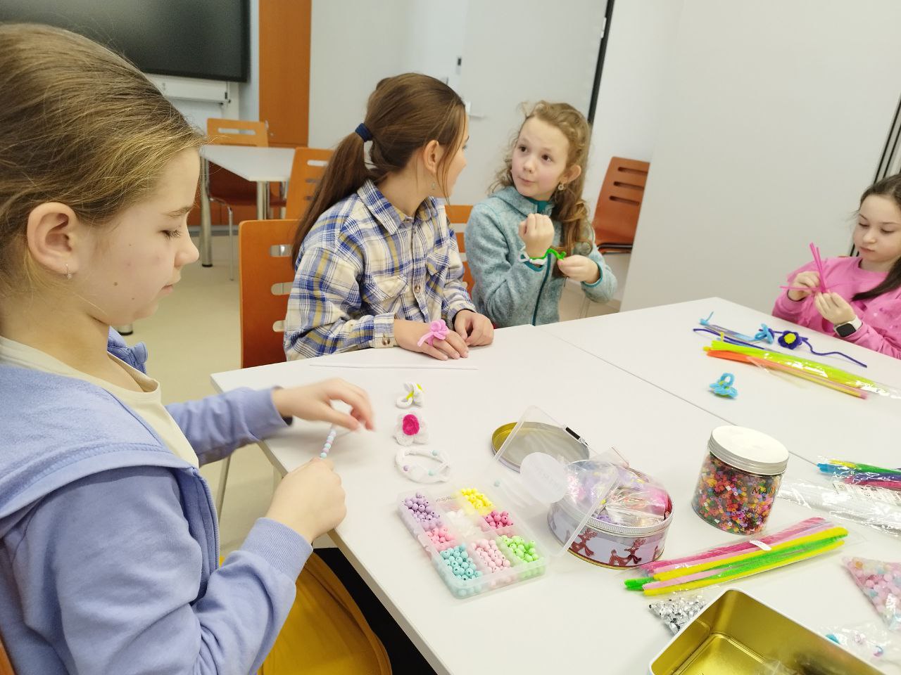 Druhé pololetí uteklo velmi rychle. Na kroužku řemeslné dílny jsme s děvčaty tvořily řadu zajímavých věcí, dívky si dokončily krásné plátěné tašky, některé je dozdobily knoflíky či kapsou, pak následovalo tvoření náramků z korálků. Dívky se navíc naučily principu tkaní na tkalcovském stavu, kdy využily mini stavy vytištěné na 3D tiskárně. Vše jsme dovršily háčkováním. Na každé hodině panovala příjemná a pohodová pracovní atmosféra a probralo se mnoho zajímavých témat. Všem děkuji a tvoření a šití zdar!