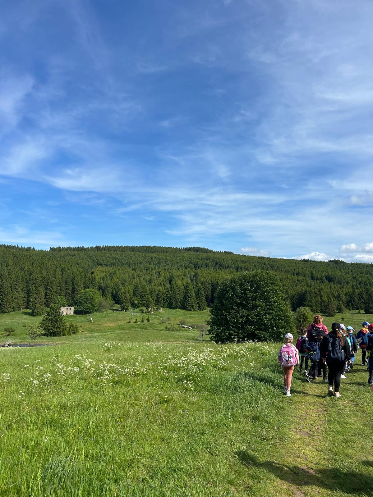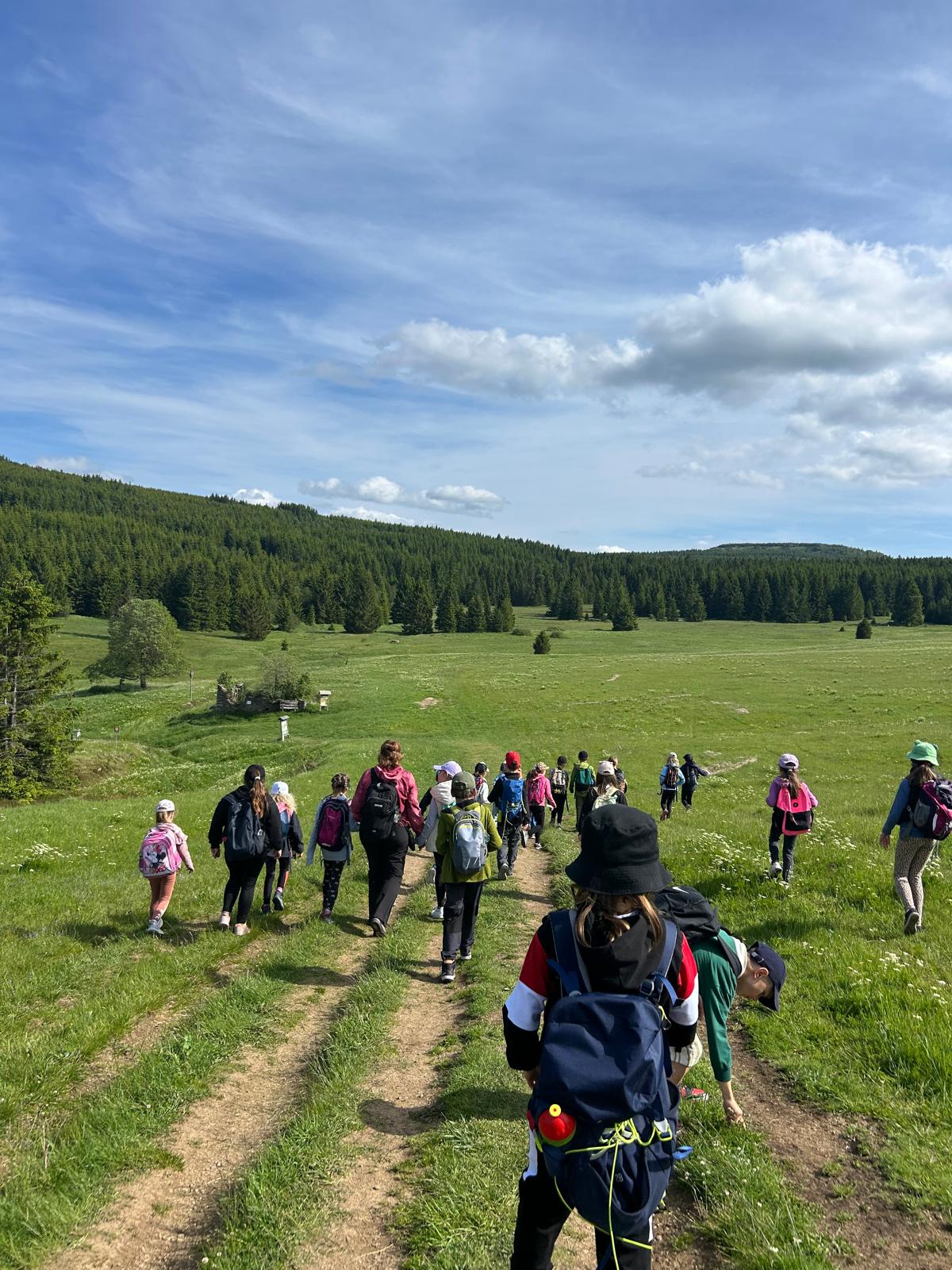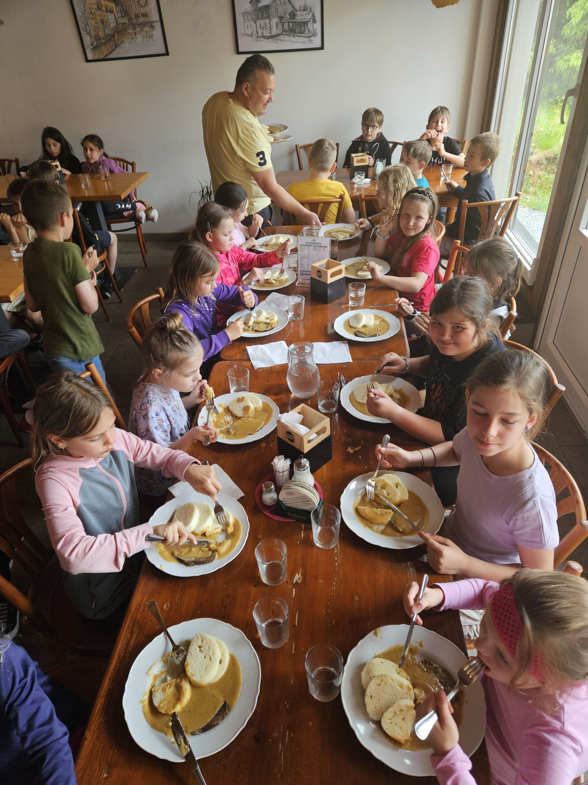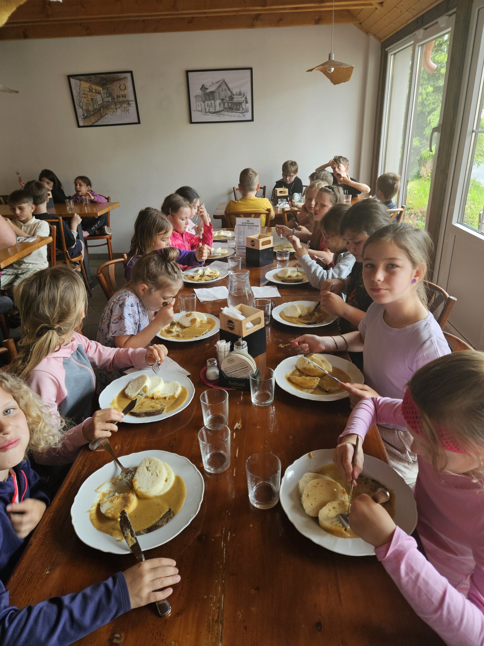 Třeťáci vyrazili na školu v přírodě do Krušných hor. Cesta proběhla v pořádku. Ubytovali jsme se, dosyta najedli svíčkové a šli obhlédnout okolí. Na louce jsme si zahráli seznamovací hru a zasoutěžili ve dvojicích. Cestou jsme si povídali a poznávali zdejší květenu. Potom jsme si vyrobili trička a zapsali zážitky z dnešního dne do deníků. Po večeři jsme se ještě prošli a teď už ležíme v postýlkách. Zítra nás totiž čeká celodenní výlet na Boží Dar.