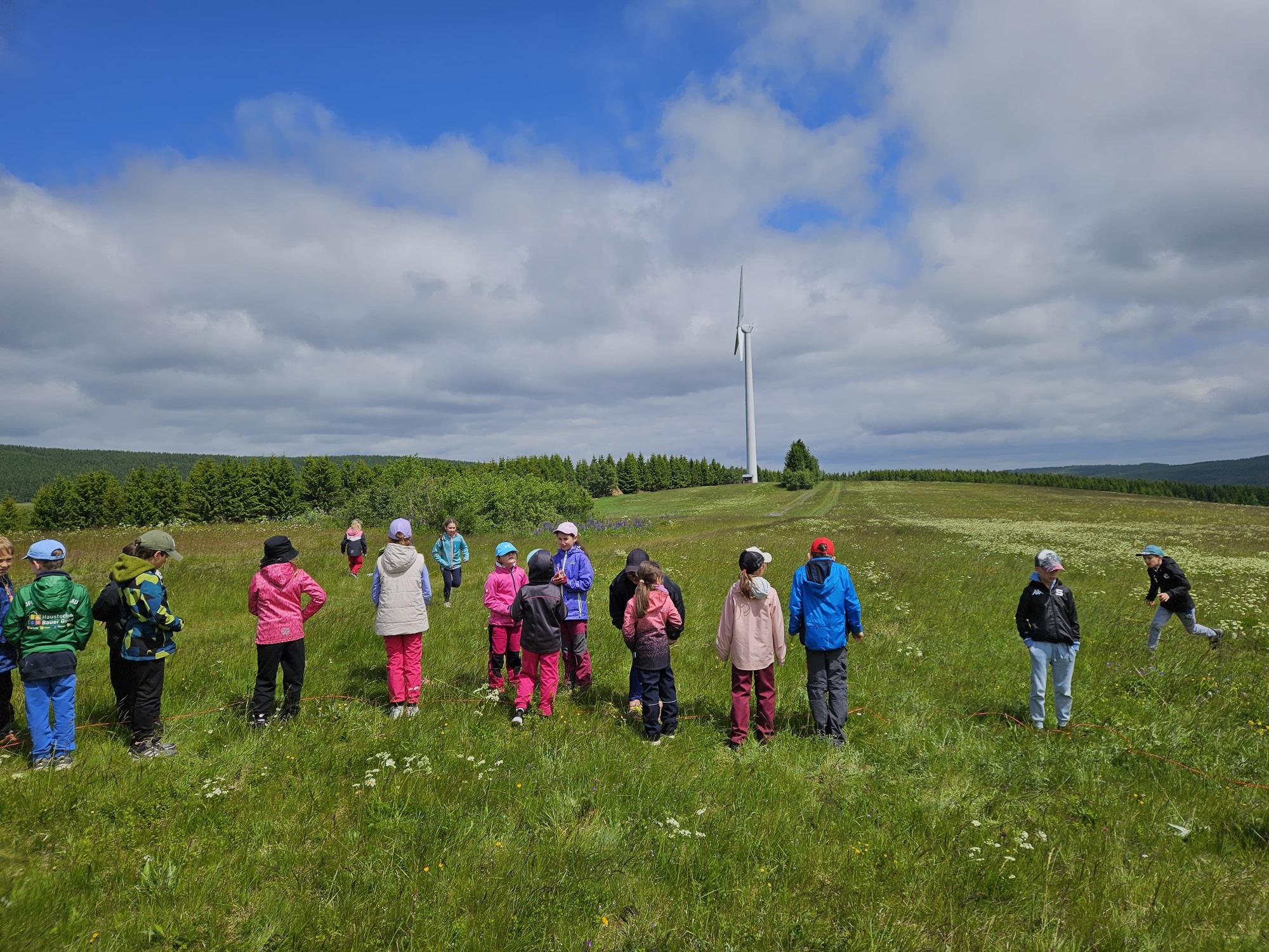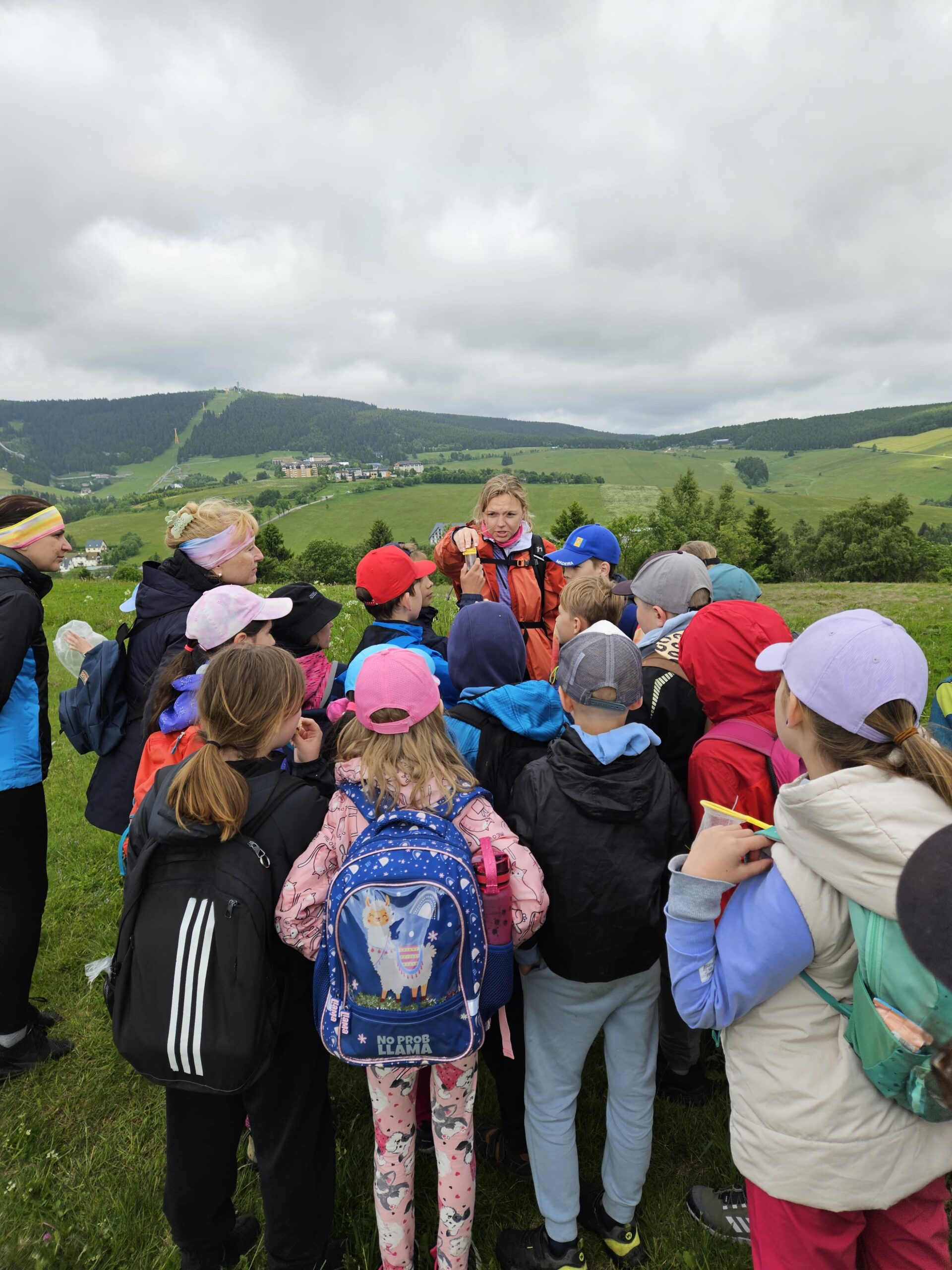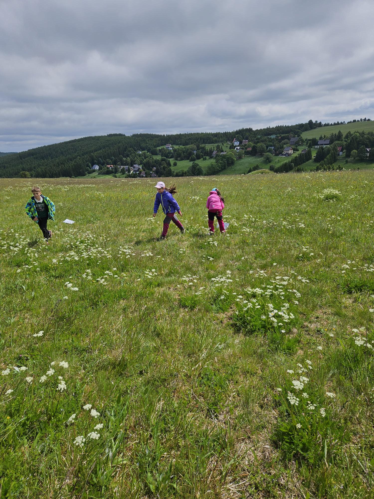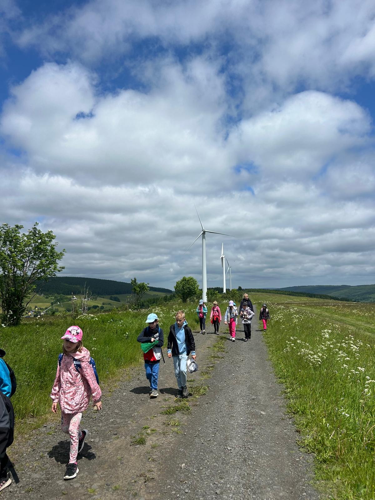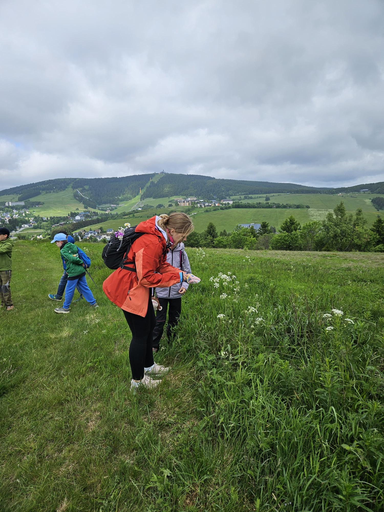 Zdravíme Vás všechny z krásného prostředí Krušných hor. Všichni jsme v pořádku a spokojení. Dnešní den jsme měli tedy přeplněný zážitky. Ráno jsme se učili, protože jsme čekali, až ofouknou zdejší louky, v noci totiž spadlo pár kapek a my jsme se chystali po nich běhat. Ještě dopoledne jsme ale vyrazili k třem větrným elektrárnám, které se jmenují Kašpar, Baltazar a Melichar. Cestou jsme tipovali obvod sloupu jedné větrné elektrárny. Děti ho potom změřili pomocí rozpažených rukou. Celkem bylo potřeba 12 dětí, což bylo pro děti překvapení. Zahráli jsme si hru limeriky a potom jsme už spěchali na dobrý řízek s bramborovou kaší. Po odpoledním klidu nás čekal další výlet. Tentokrát jsme se vydali do zaniklé osady Königsmühle. Byl to krásný výlet a skoro tajemný :-). V lese u osady jsme postavili domečky pro zvířátka a vrátili se na večeři. Počasí nám dnes přálo a výlety se nám moc vydařily.