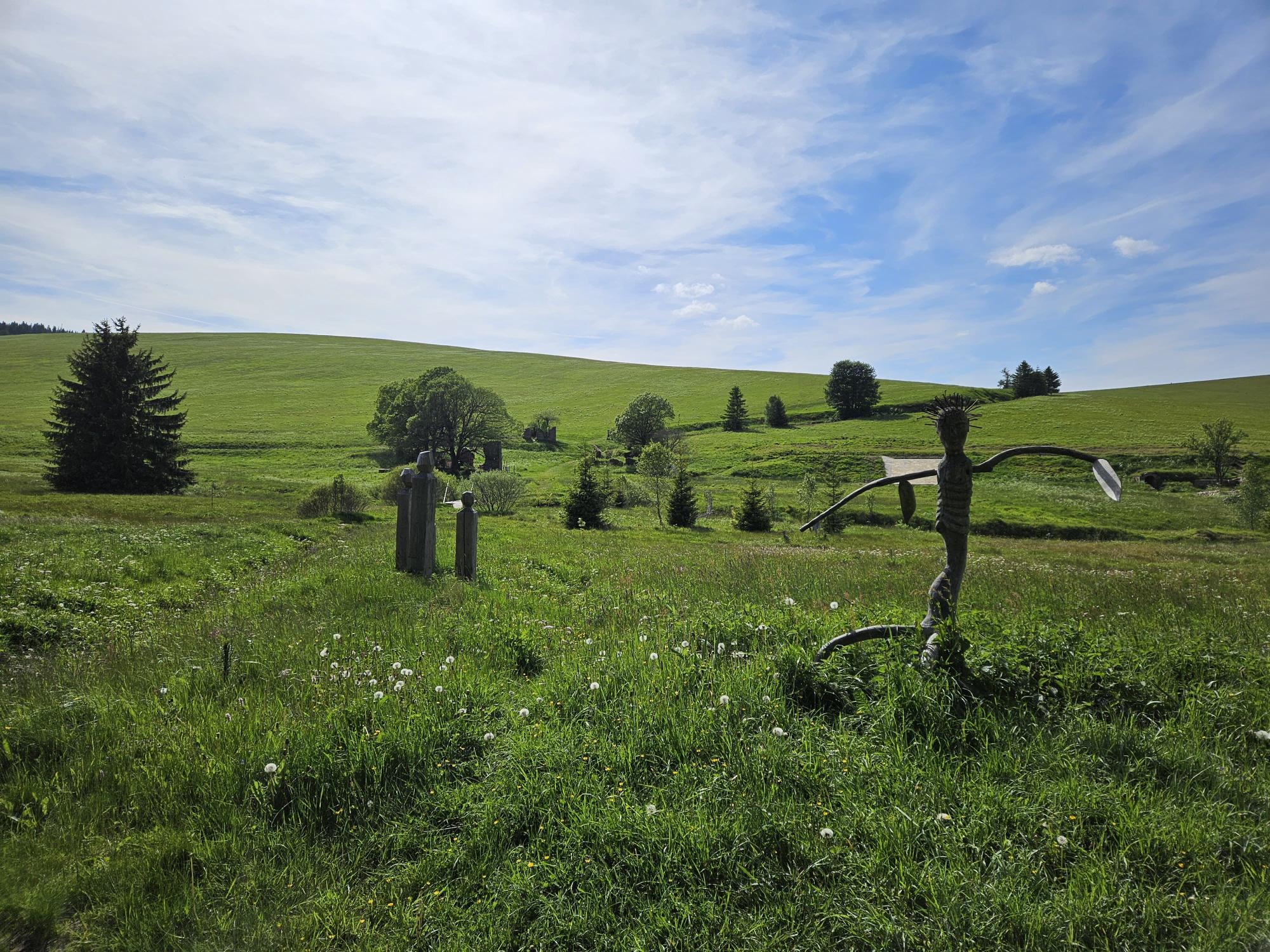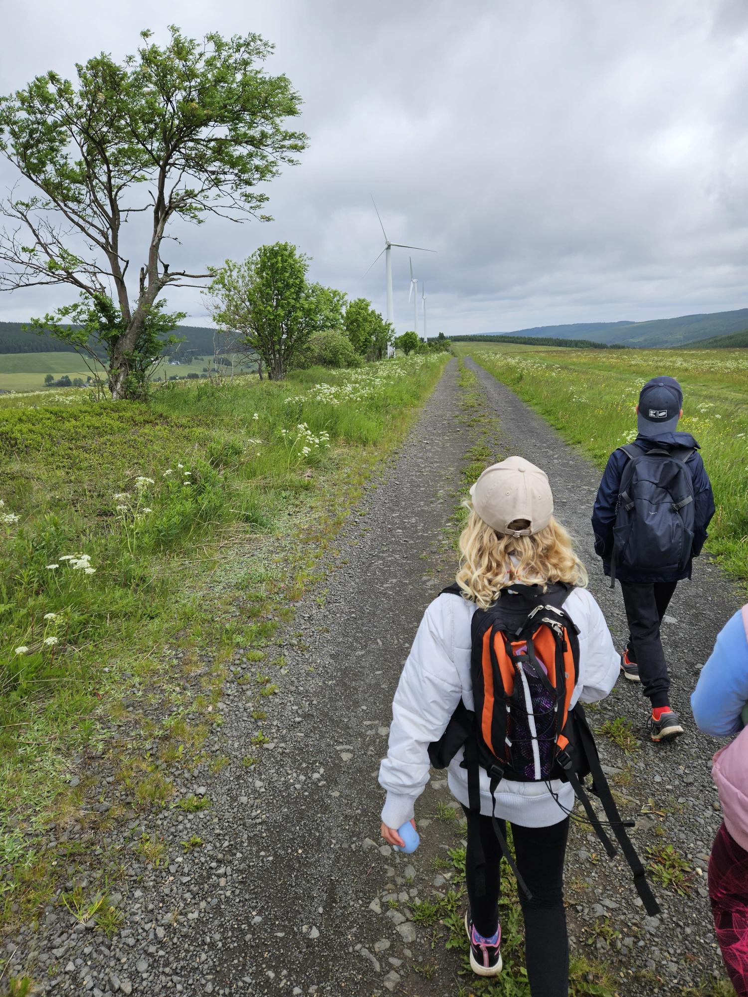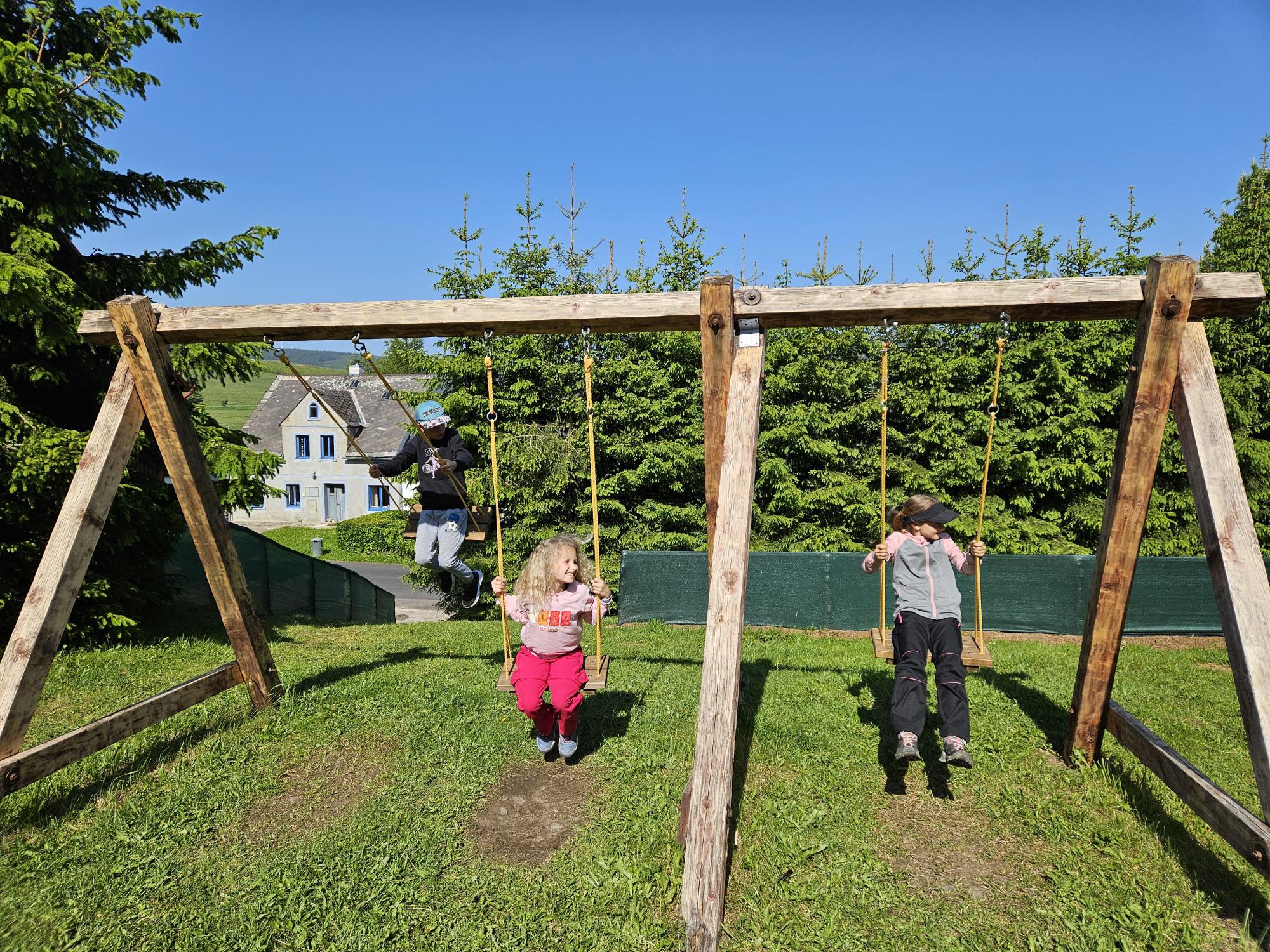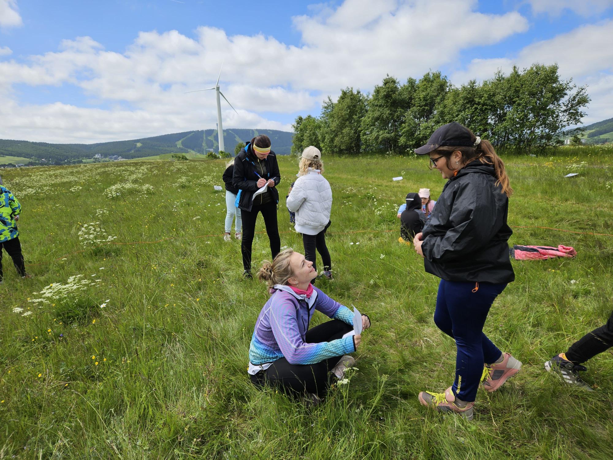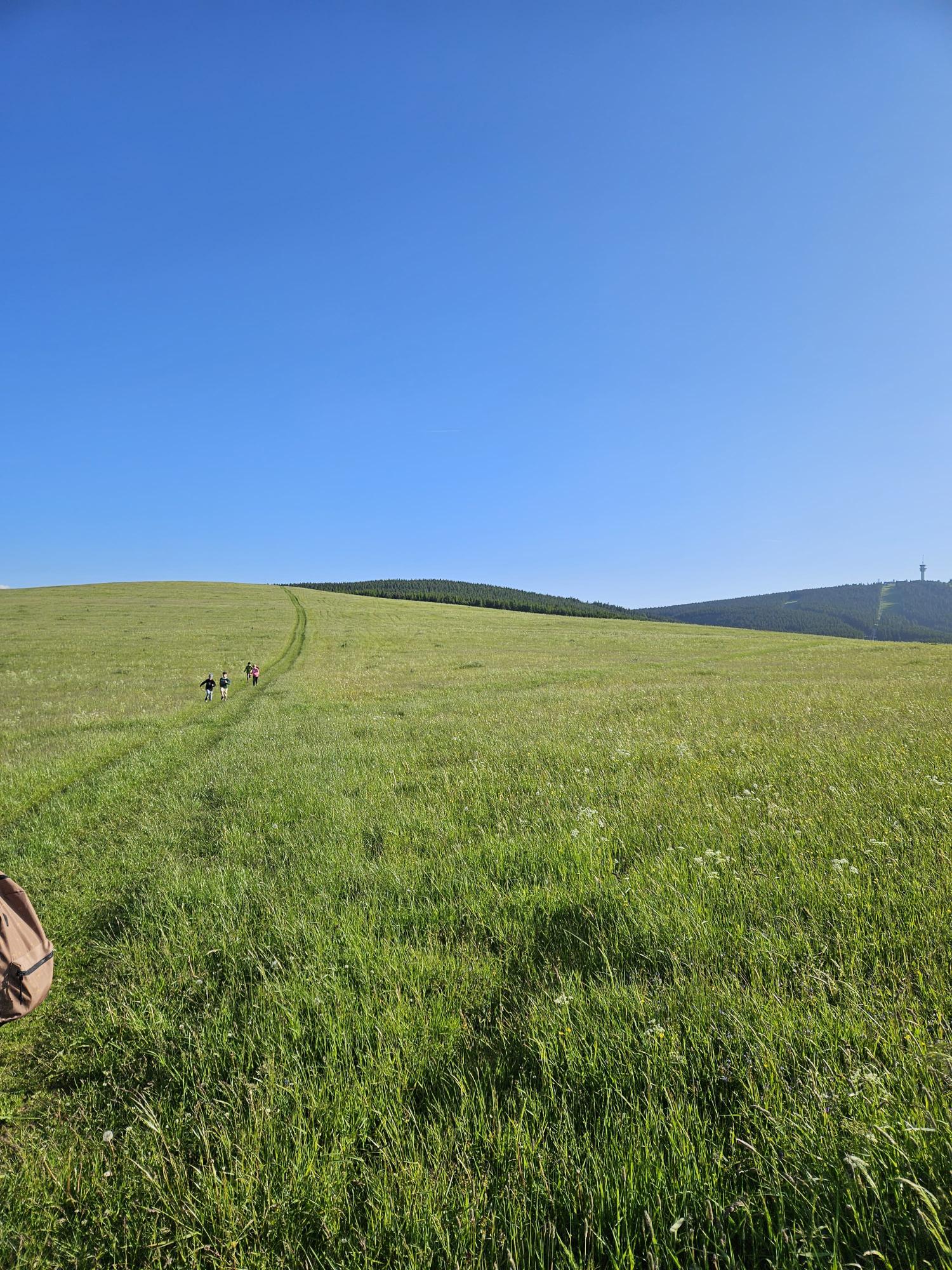 Zdravíme Vás všechny z krásného prostředí Krušných hor. Všichni jsme v pořádku a spokojení. Dnešní den jsme měli tedy přeplněný zážitky. Ráno jsme se učili, protože jsme čekali, až ofouknou zdejší louky, v noci totiž spadlo pár kapek a my jsme se chystali po nich běhat. Ještě dopoledne jsme ale vyrazili k třem větrným elektrárnám, které se jmenují Kašpar, Baltazar a Melichar. Cestou jsme tipovali obvod sloupu jedné větrné elektrárny. Děti ho potom změřili pomocí rozpažených rukou. Celkem bylo potřeba 12 dětí, což bylo pro děti překvapení. Zahráli jsme si hru limeriky a potom jsme už spěchali na dobrý řízek s bramborovou kaší. Po odpoledním klidu nás čekal další výlet. Tentokrát jsme se vydali do zaniklé osady Königsmühle. Byl to krásný výlet a skoro tajemný :-). V lese u osady jsme postavili domečky pro zvířátka a vrátili se na večeři. Počasí nám dnes přálo a výlety se nám moc vydařily.