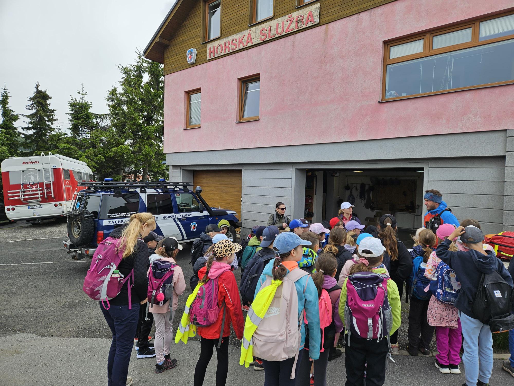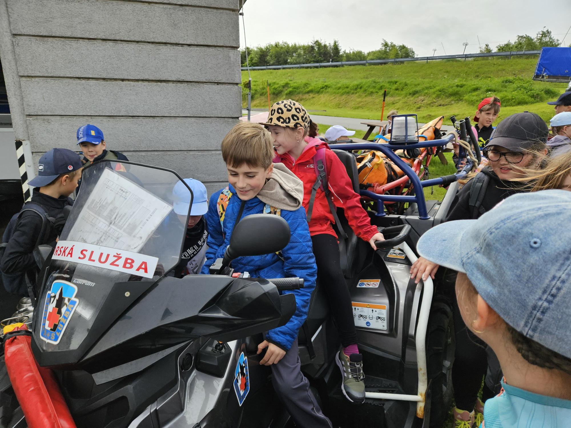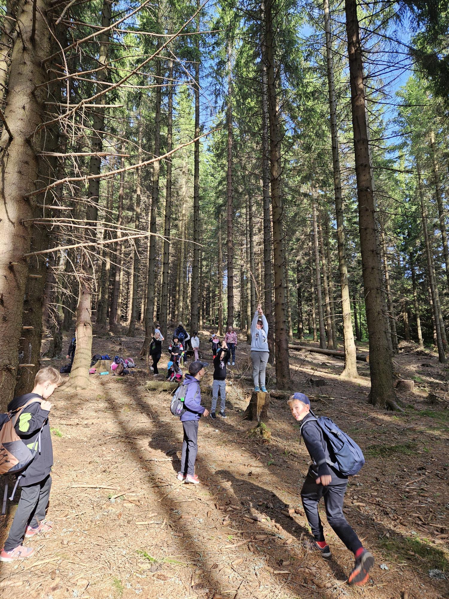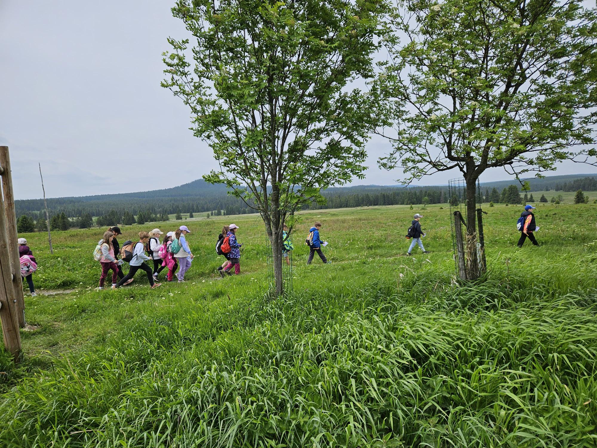 Dnes jsme se vydali autobusem na Boží Dar. Nejprve jsme navštívili Horskou službu, kde nám pán pověděl spoustu zajímavostí a také nám předvedl cvičeného psa Šuplíka. Vyzkoušeli jsme si skútr a čtyřkolku. Potom jsme šli na Ježíškovu cestu. Prošli jsme celý malý okruh a plnili úkoly v domečcích. Cestou jsme chytali broučky, housenky, mnohonožky, žáby a spoustu dalších živočichů. To nás opravdu dost bavilo. Chytili jsme páteříčka, nosatce, kovaříka, lišejníkovce a střevlíka. Celý den jsme běhali po lese a užívali jsme si čerstvého vzduchu. Teď máme červené tváře a chystáme se na večeři.