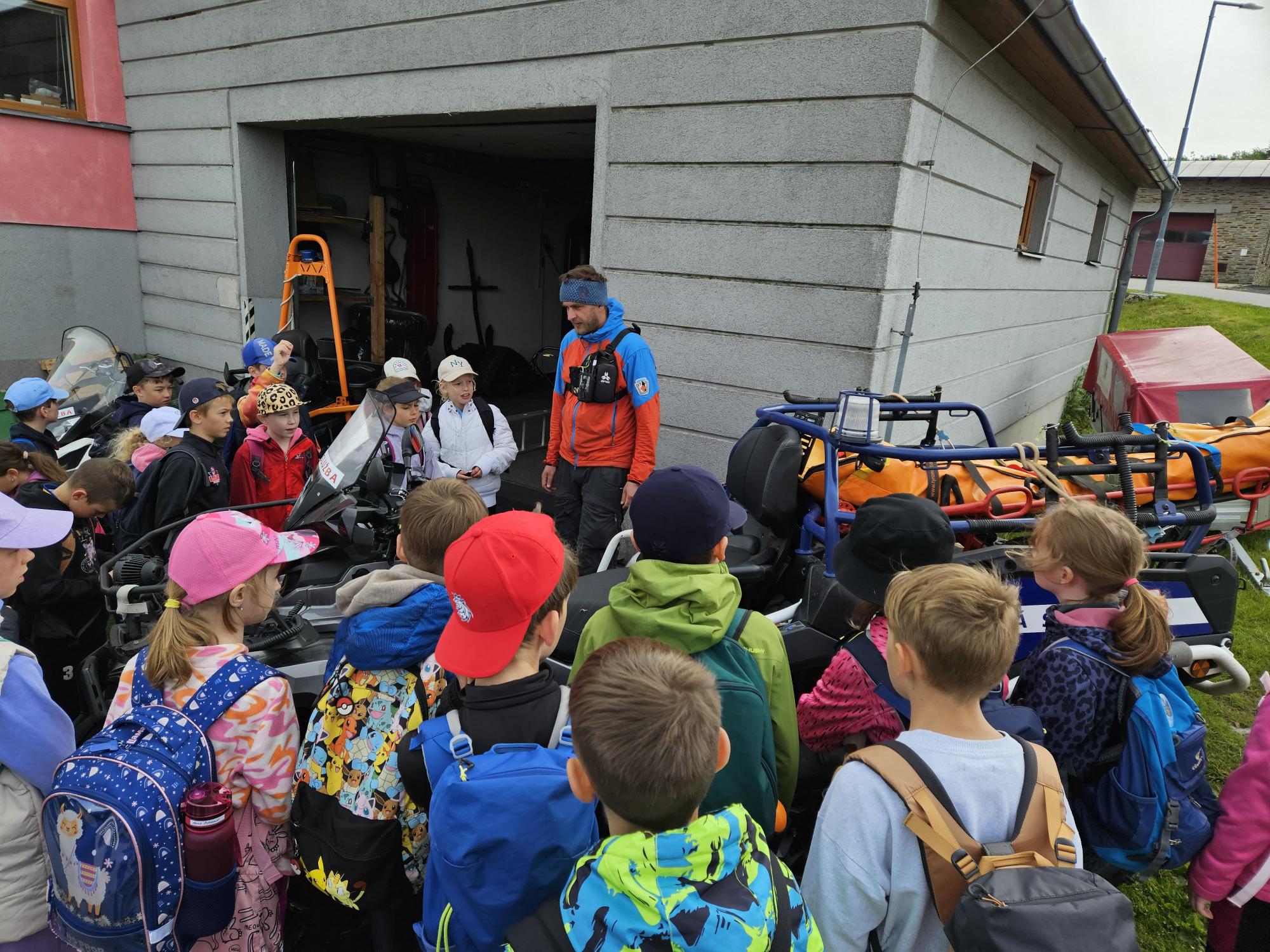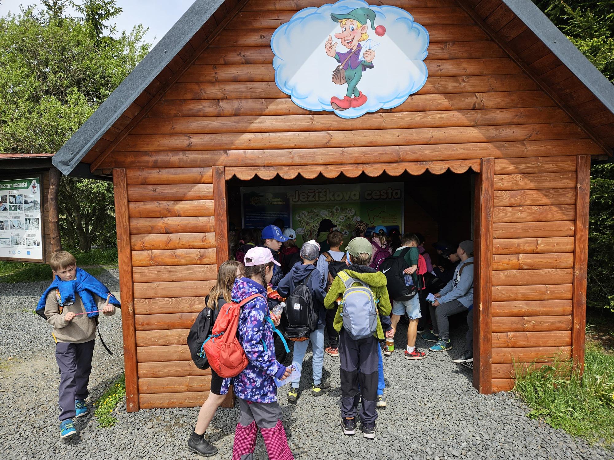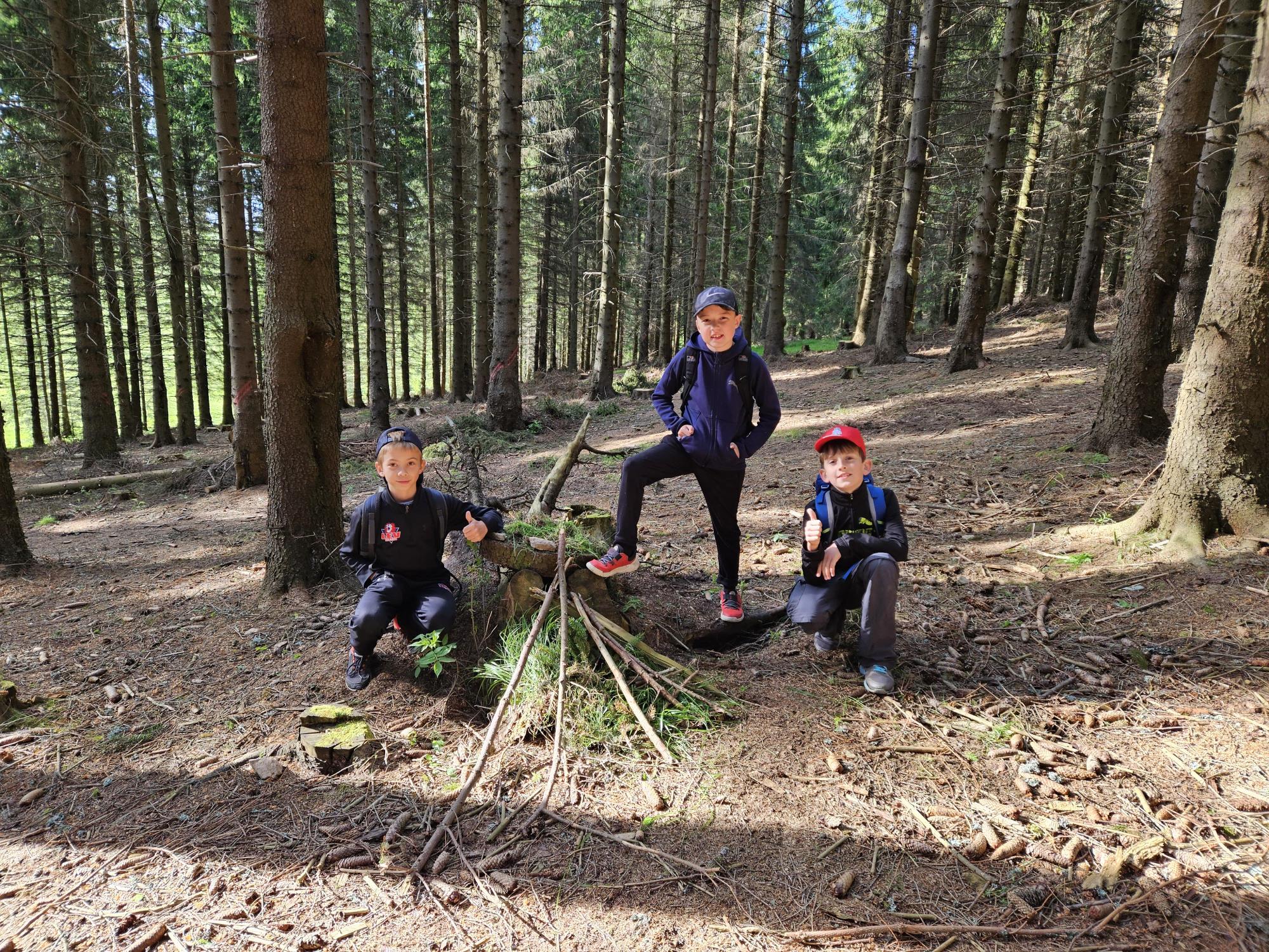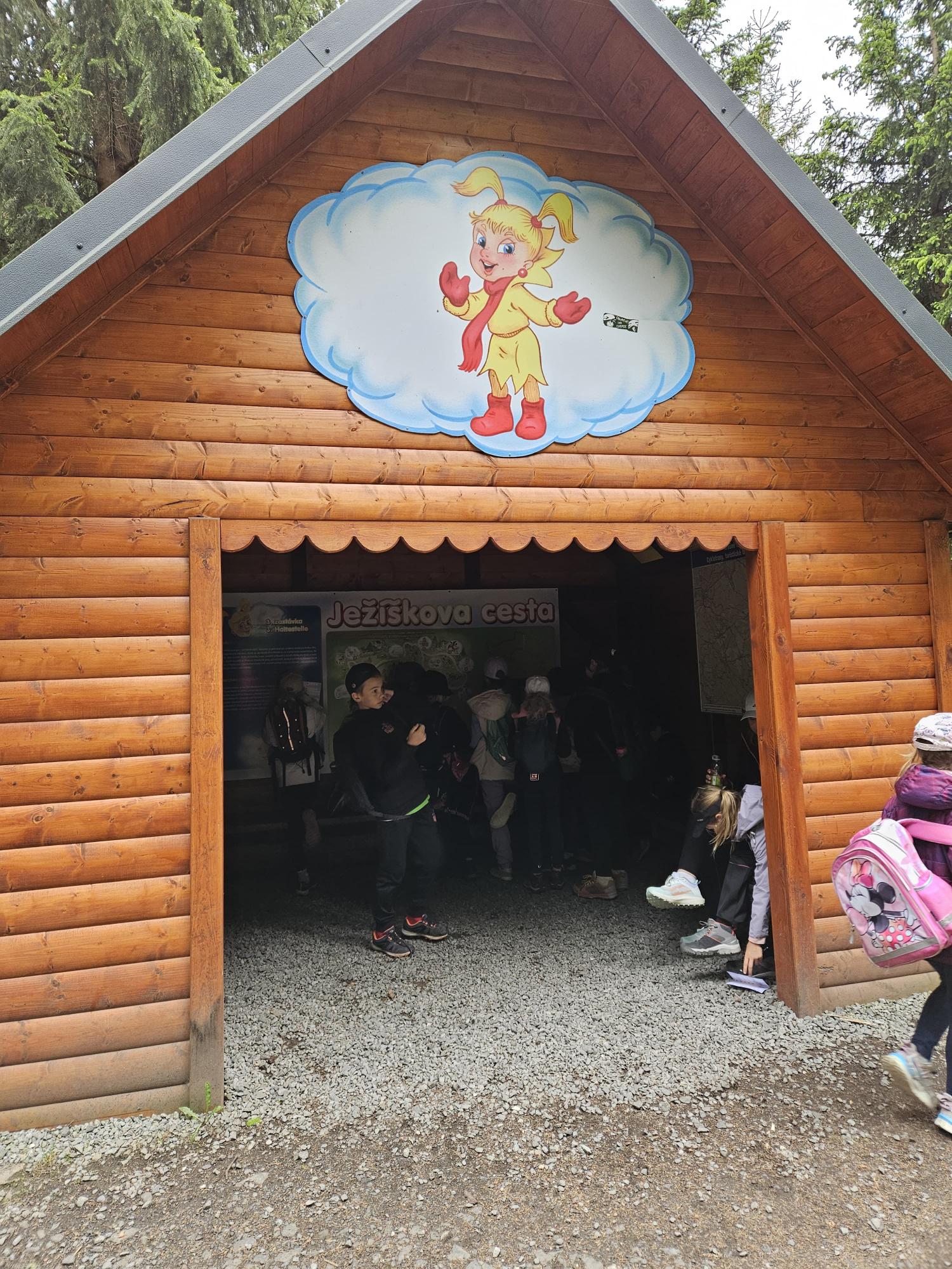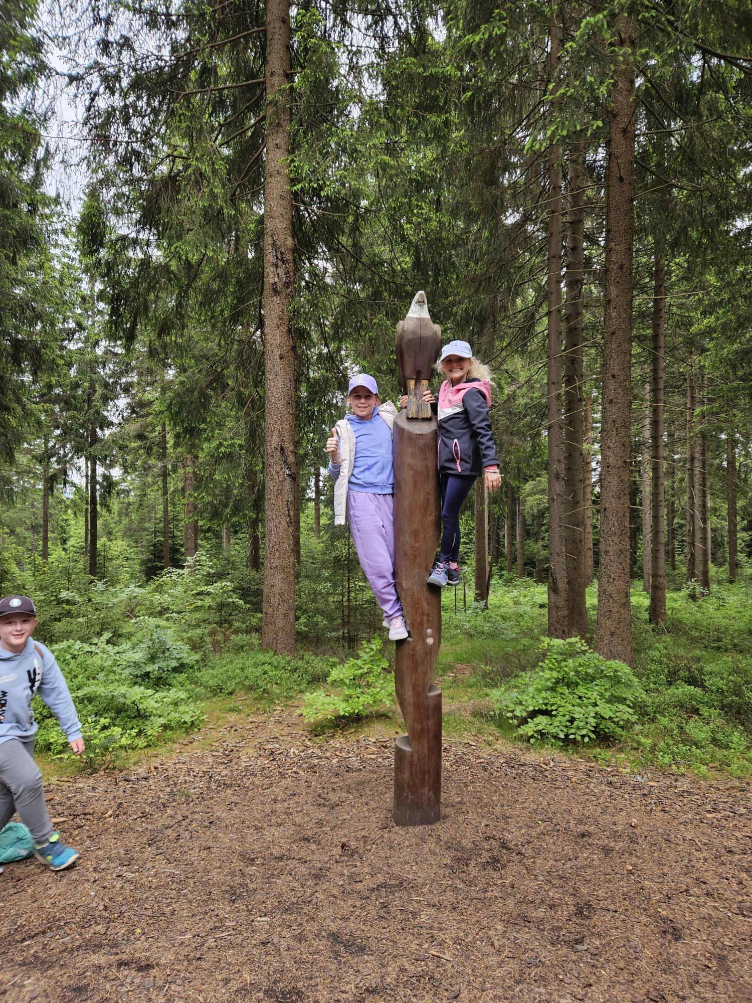 Dnes jsme se vydali autobusem na Boží Dar. Nejprve jsme navštívili Horskou službu, kde nám pán pověděl spoustu zajímavostí a také nám předvedl cvičeného psa Šuplíka. Vyzkoušeli jsme si skútr a čtyřkolku. Potom jsme šli na Ježíškovu cestu. Prošli jsme celý malý okruh a plnili úkoly v domečcích. Cestou jsme chytali broučky, housenky, mnohonožky, žáby a spoustu dalších živočichů. To nás opravdu dost bavilo. Chytili jsme páteříčka, nosatce, kovaříka, lišejníkovce a střevlíka. Celý den jsme běhali po lese a užívali jsme si čerstvého vzduchu. Teď máme červené tváře a chystáme se na večeři.