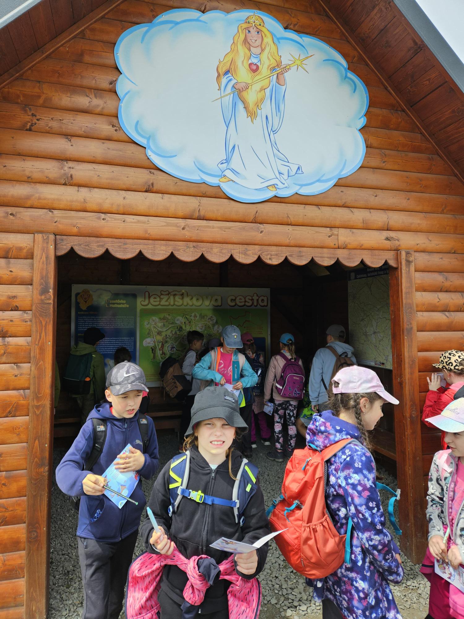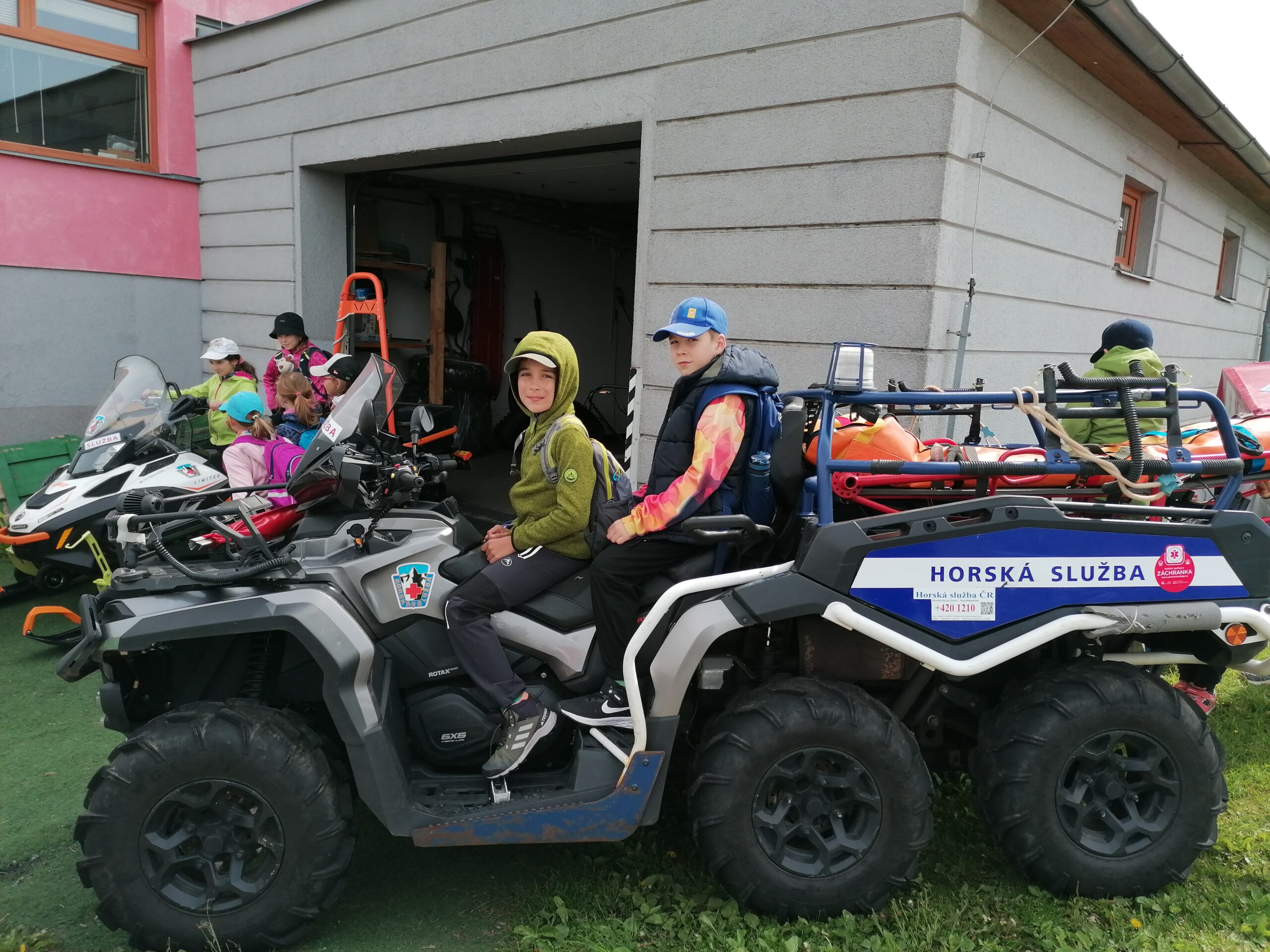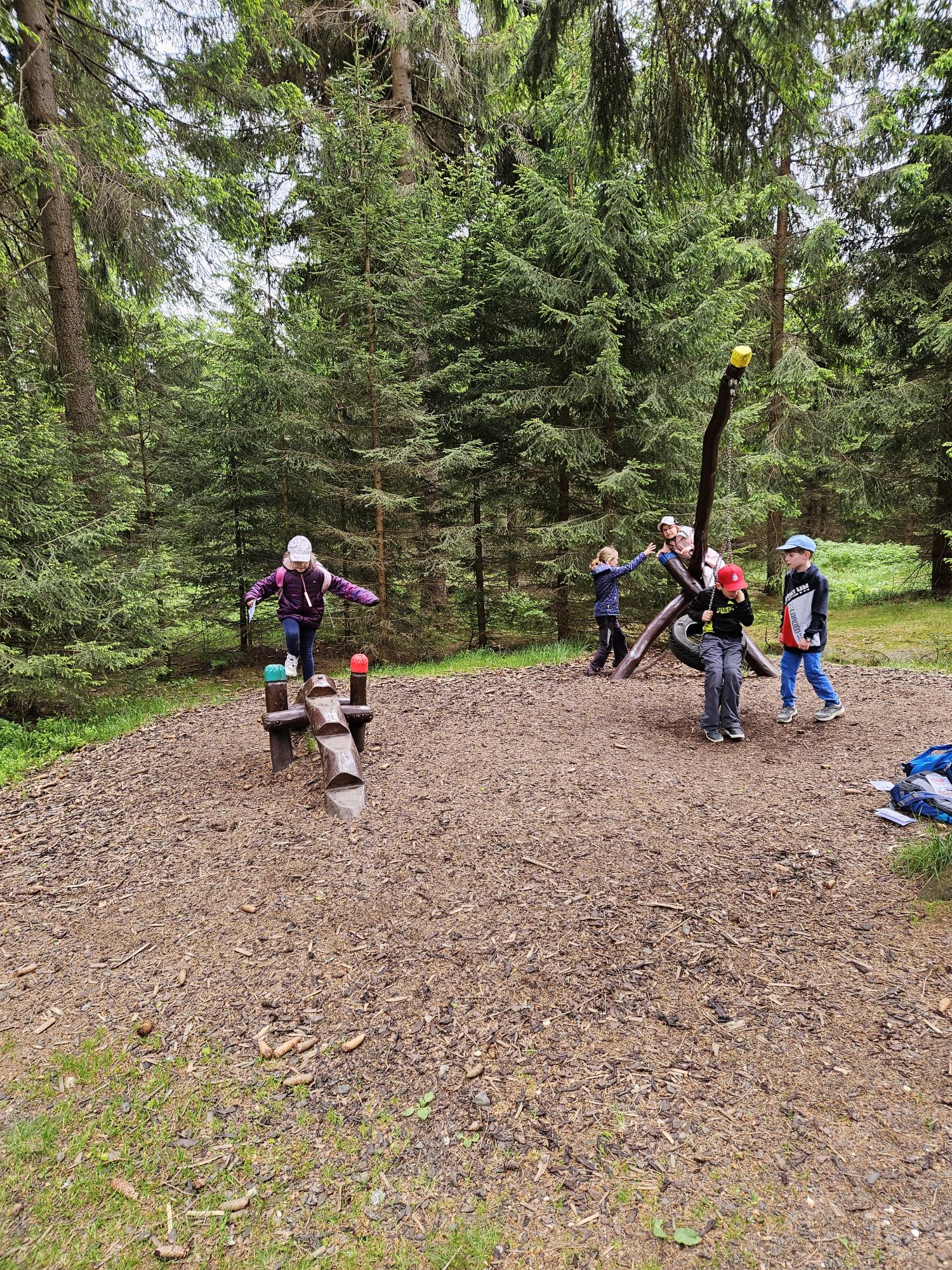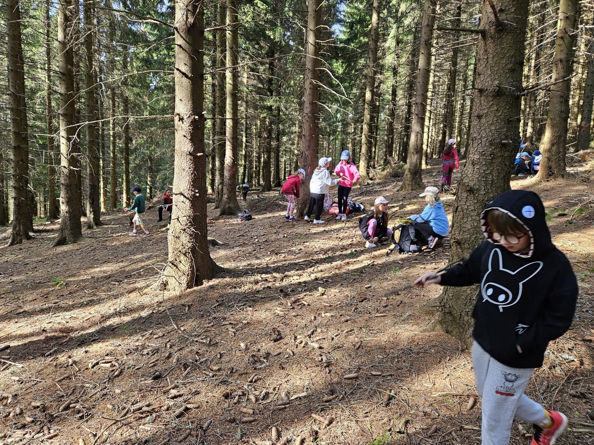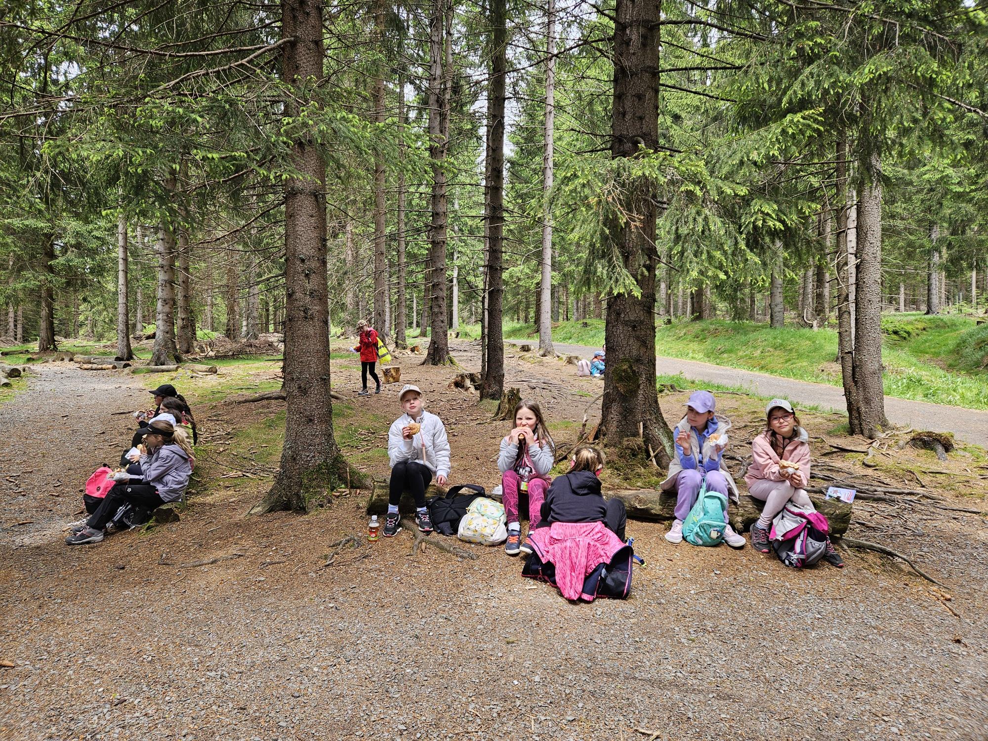 Dnes jsme se vydali autobusem na Boží Dar. Nejprve jsme navštívili Horskou službu, kde nám pán pověděl spoustu zajímavostí a také nám předvedl cvičeného psa Šuplíka. Vyzkoušeli jsme si skútr a čtyřkolku. Potom jsme šli na Ježíškovu cestu. Prošli jsme celý malý okruh a plnili úkoly v domečcích. Cestou jsme chytali broučky, housenky, mnohonožky, žáby a spoustu dalších živočichů. To nás opravdu dost bavilo. Chytili jsme páteříčka, nosatce, kovaříka, lišejníkovce a střevlíka. Celý den jsme běhali po lese a užívali jsme si čerstvého vzduchu. Teď máme červené tváře a chystáme se na večeři.
