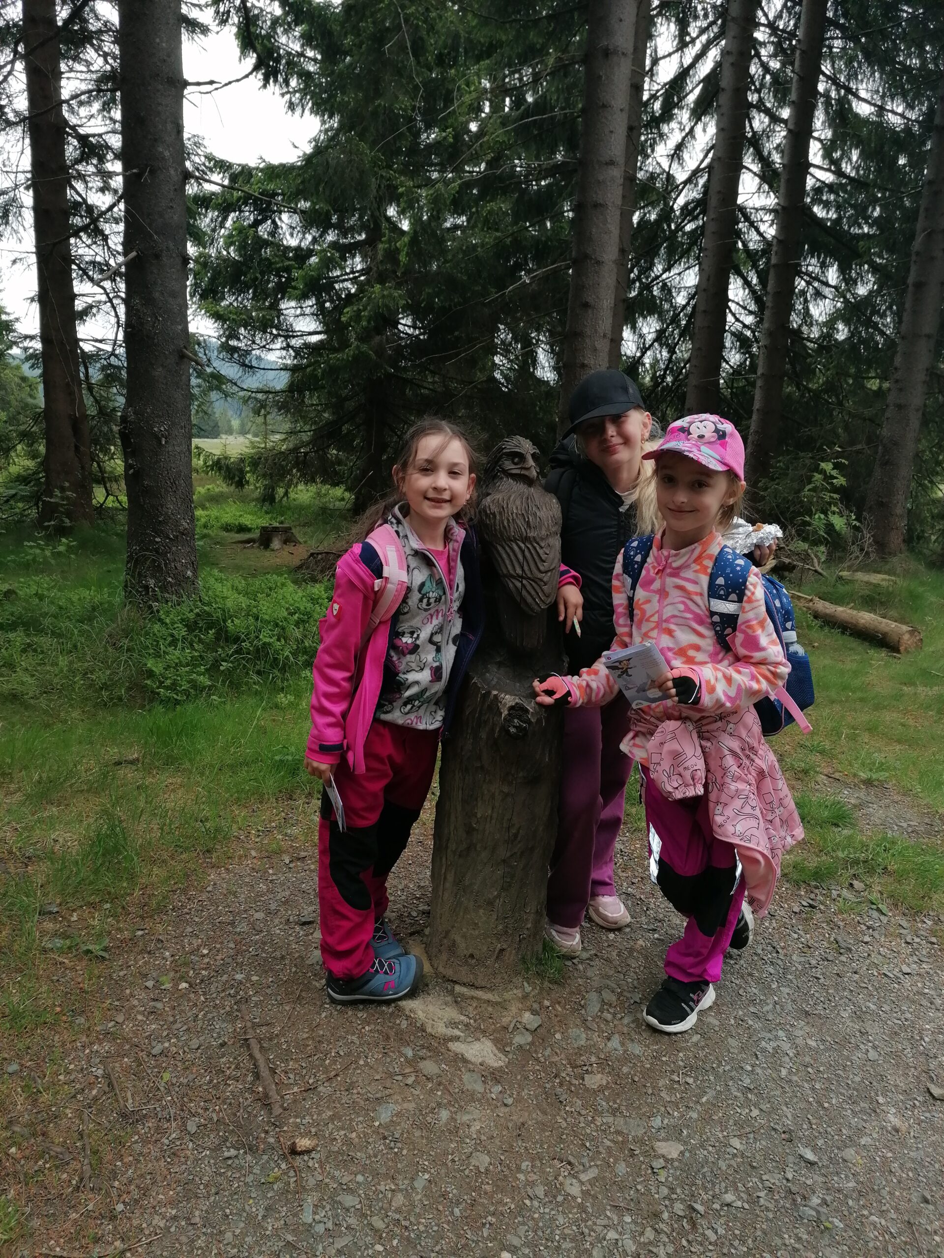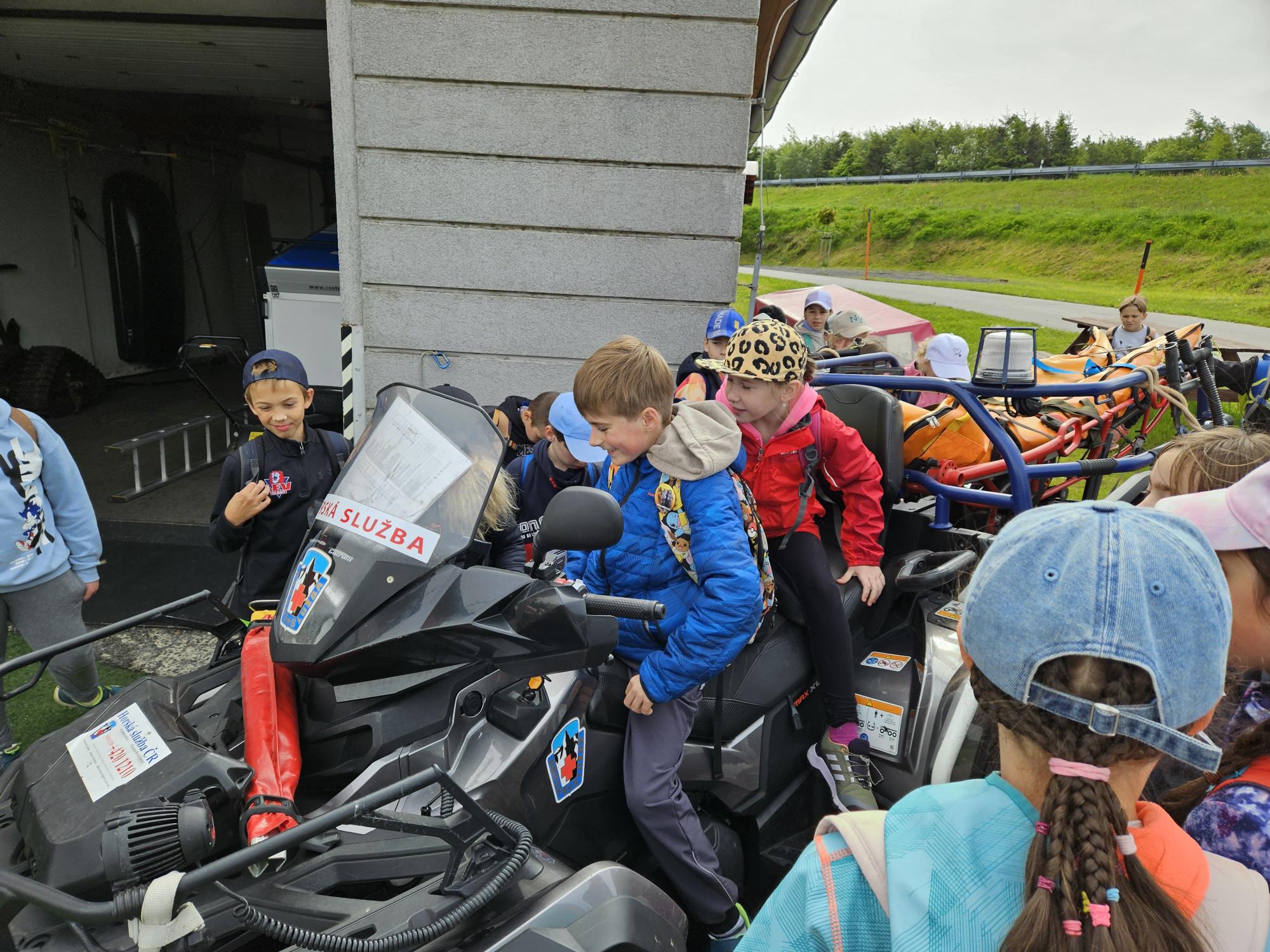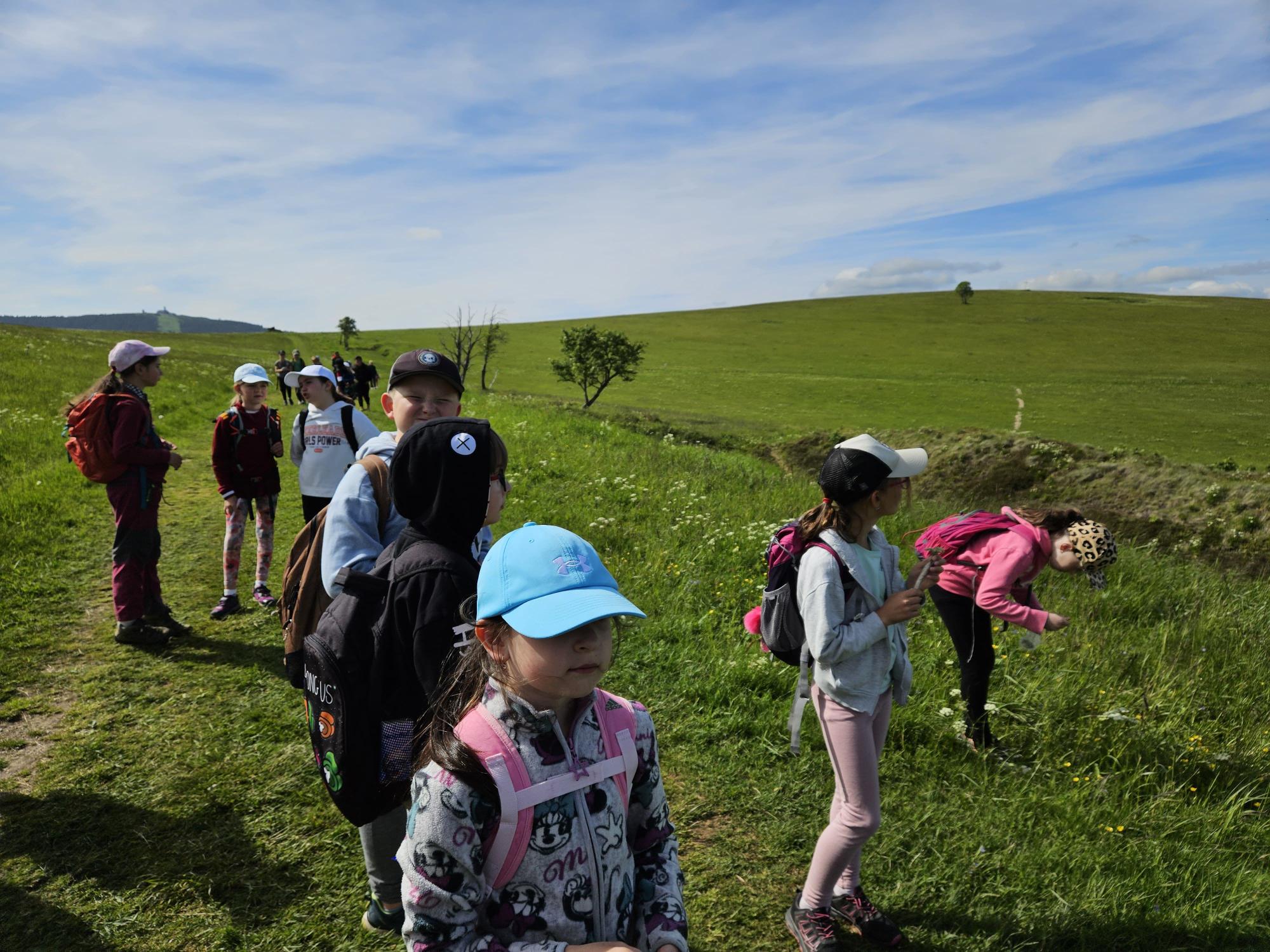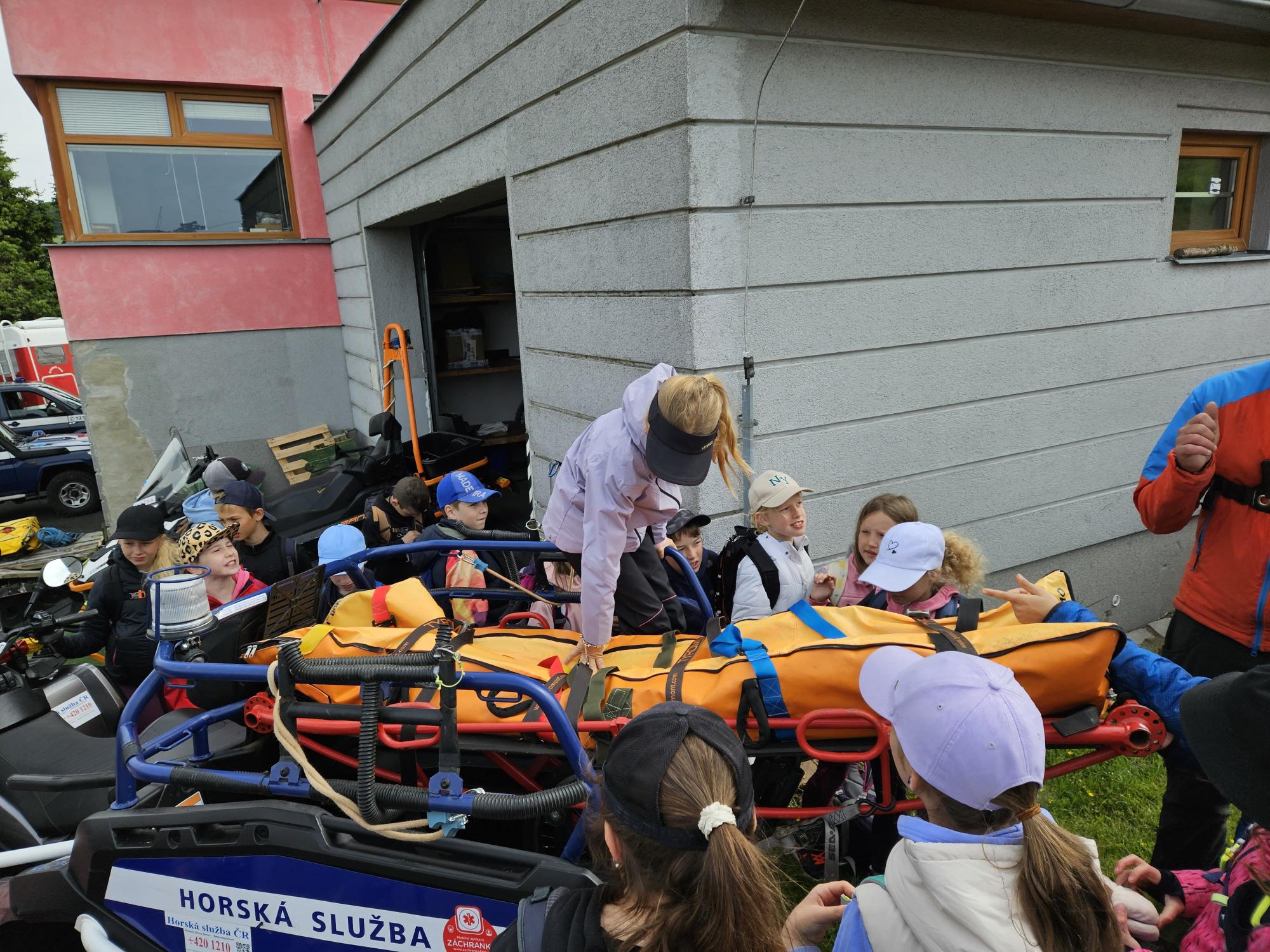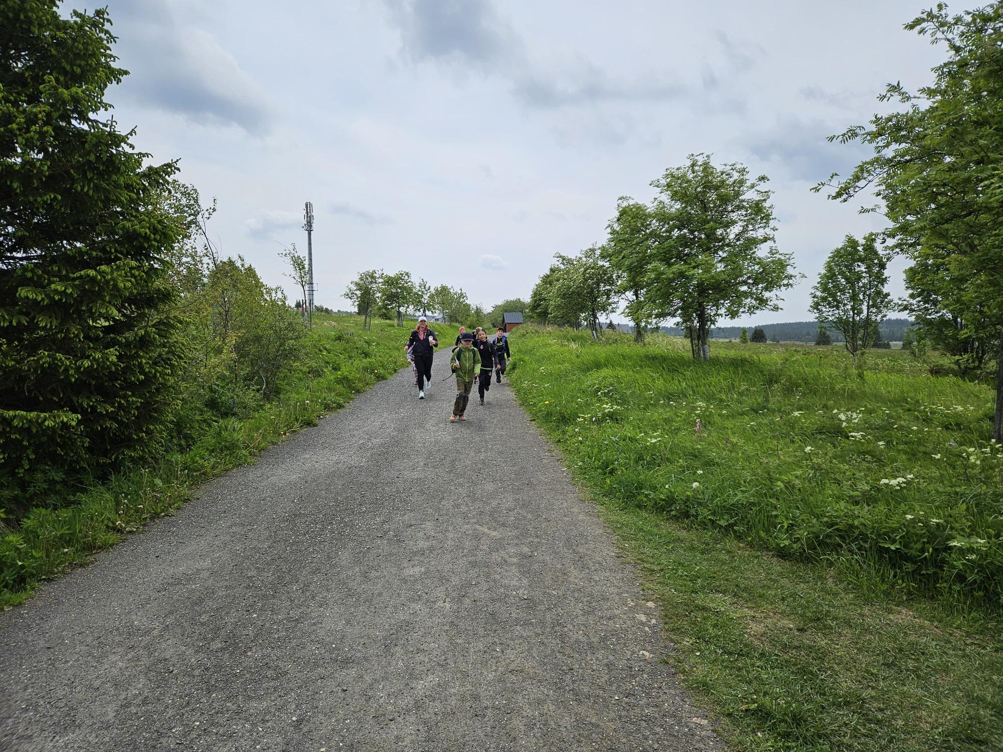 Dnes jsme se vydali autobusem na Boží Dar. Nejprve jsme navštívili Horskou službu, kde nám pán pověděl spoustu zajímavostí a také nám předvedl cvičeného psa Šuplíka. Vyzkoušeli jsme si skútr a čtyřkolku. Potom jsme šli na Ježíškovu cestu. Prošli jsme celý malý okruh a plnili úkoly v domečcích. Cestou jsme chytali broučky, housenky, mnohonožky, žáby a spoustu dalších živočichů. To nás opravdu dost bavilo. Chytili jsme páteříčka, nosatce, kovaříka, lišejníkovce a střevlíka. Celý den jsme běhali po lese a užívali jsme si čerstvého vzduchu. Teď máme červené tváře a chystáme se na večeři.