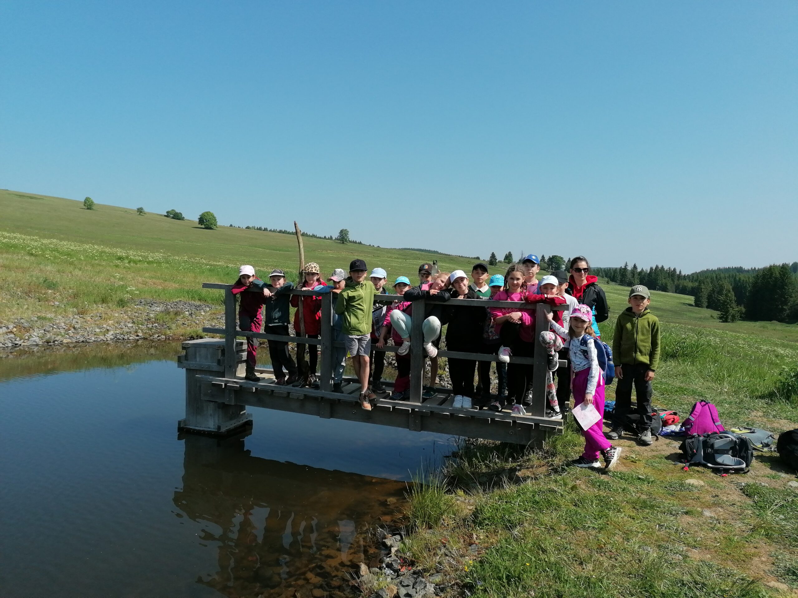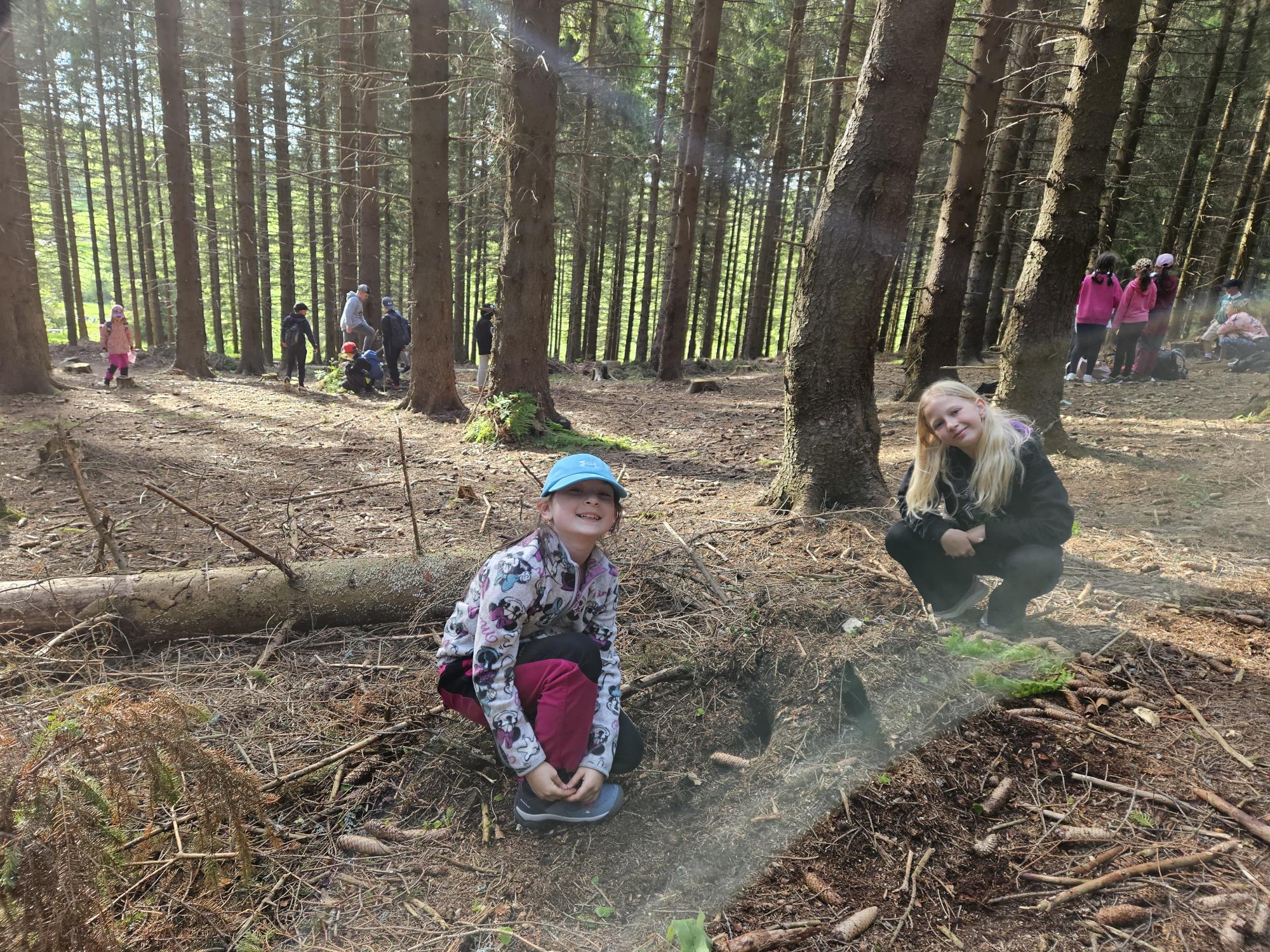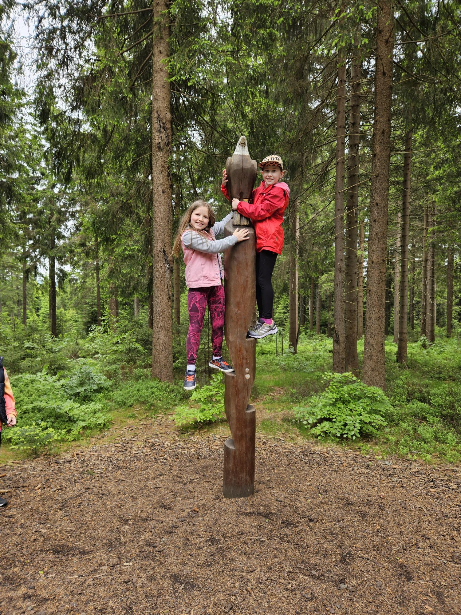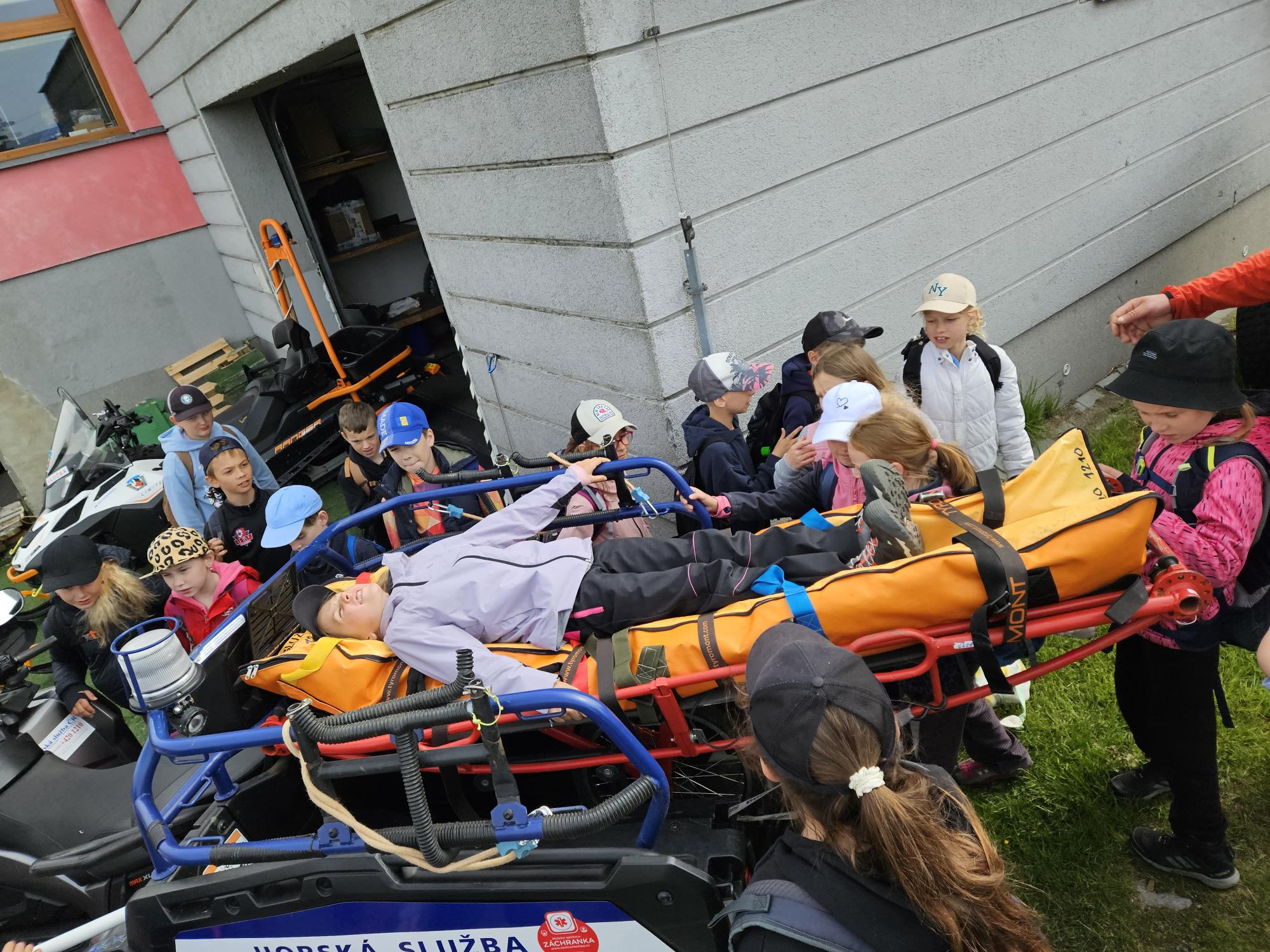 Dnes jsme se vydali autobusem na Boží Dar. Nejprve jsme navštívili Horskou službu, kde nám pán pověděl spoustu zajímavostí a také nám předvedl cvičeného psa Šuplíka. Vyzkoušeli jsme si skútr a čtyřkolku. Potom jsme šli na Ježíškovu cestu. Prošli jsme celý malý okruh a plnili úkoly v domečcích. Cestou jsme chytali broučky, housenky, mnohonožky, žáby a spoustu dalších živočichů. To nás opravdu dost bavilo. Chytili jsme páteříčka, nosatce, kovaříka, lišejníkovce a střevlíka. Celý den jsme běhali po lese a užívali jsme si čerstvého vzduchu. Teď máme červené tváře a chystáme se na večeři.