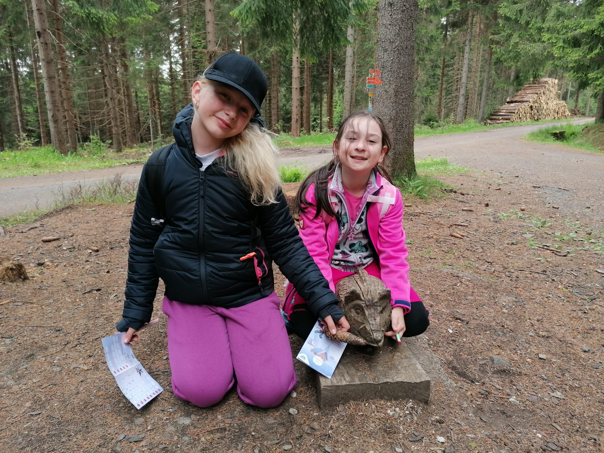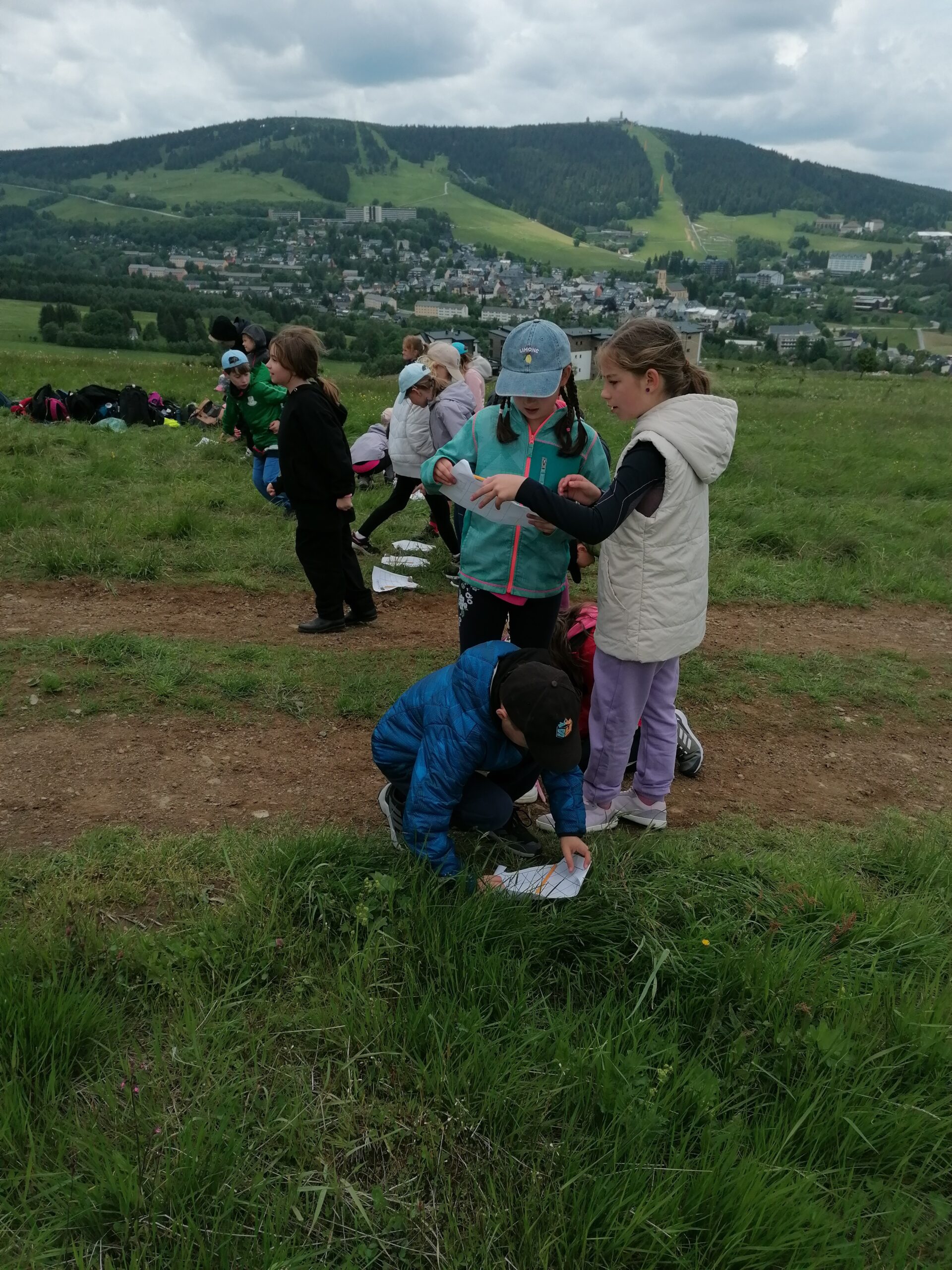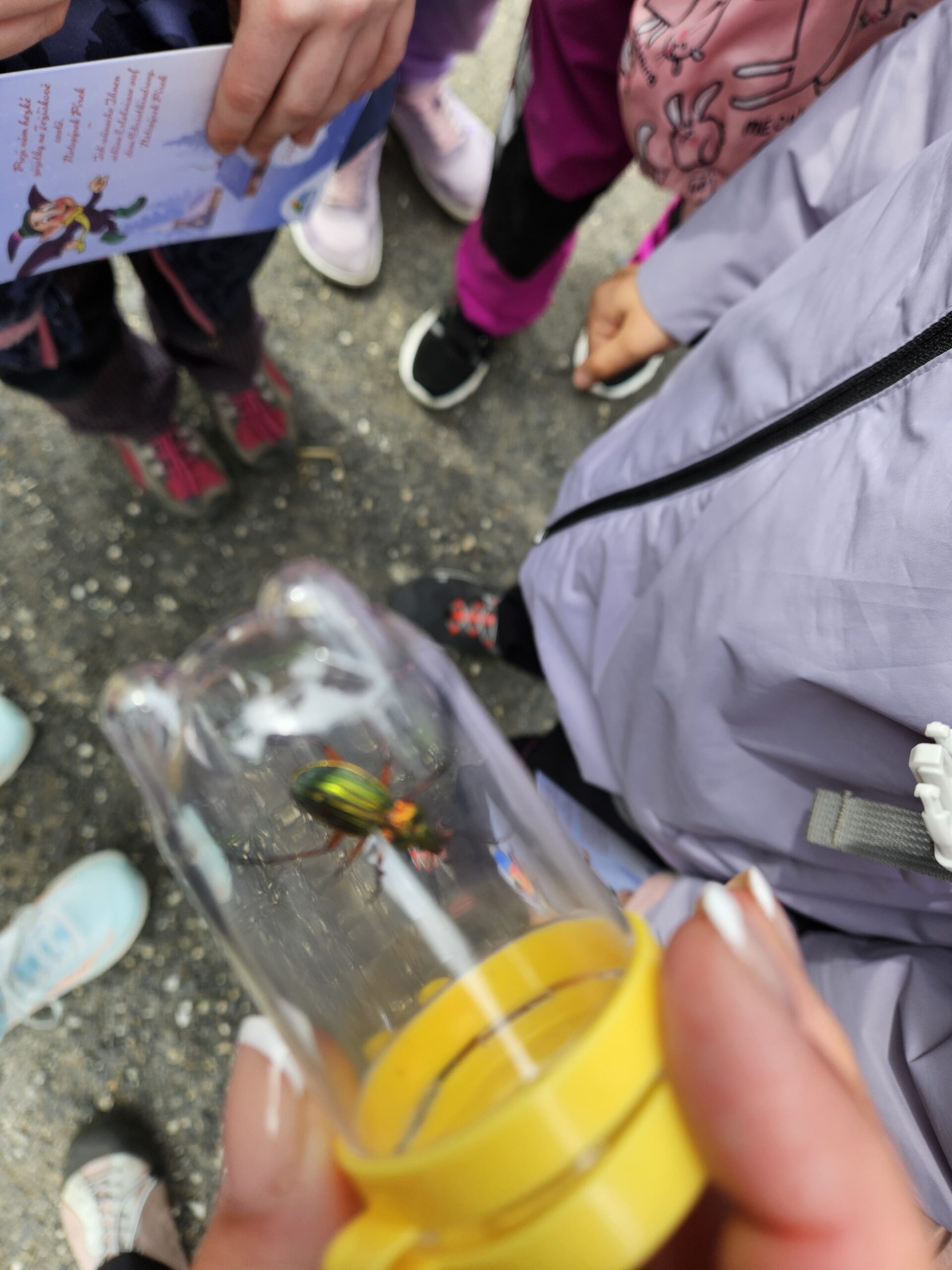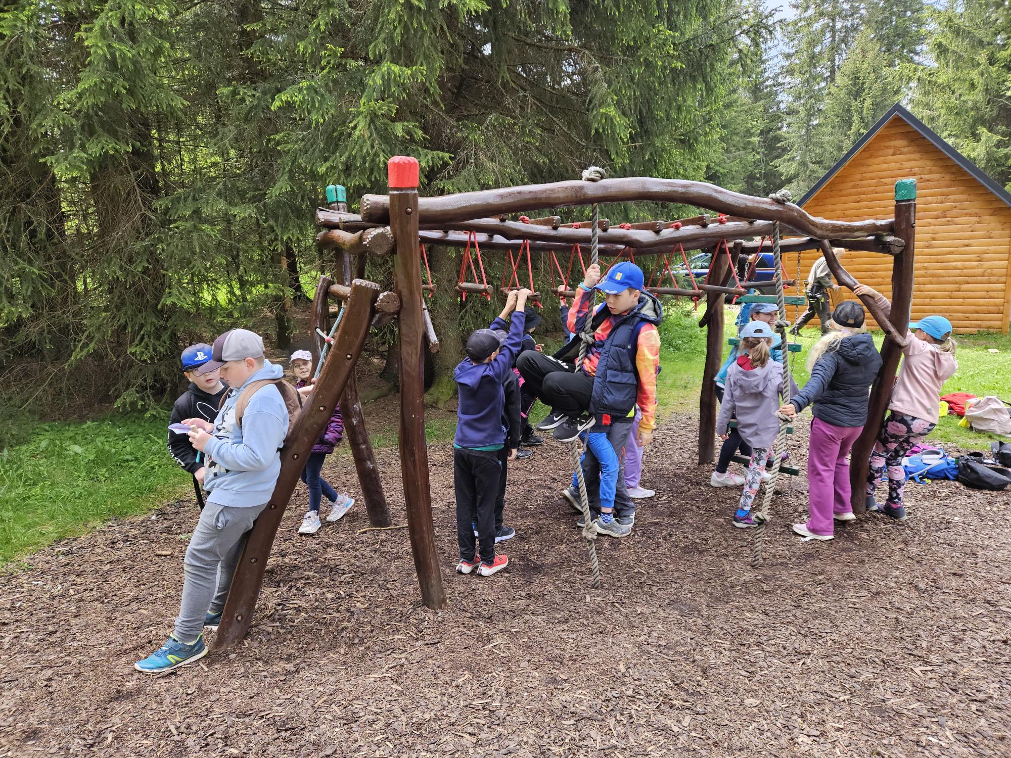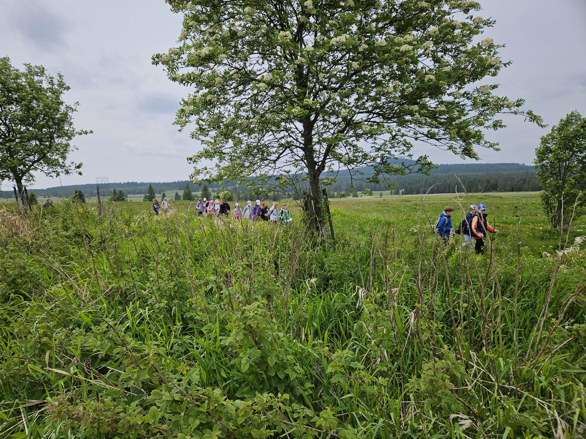 Dnes jsme se vydali autobusem na Boží Dar. Nejprve jsme navštívili Horskou službu, kde nám pán pověděl spoustu zajímavostí a také nám předvedl cvičeného psa Šuplíka. Vyzkoušeli jsme si skútr a čtyřkolku. Potom jsme šli na Ježíškovu cestu. Prošli jsme celý malý okruh a plnili úkoly v domečcích. Cestou jsme chytali broučky, housenky, mnohonožky, žáby a spoustu dalších živočichů. To nás opravdu dost bavilo. Chytili jsme páteříčka, nosatce, kovaříka, lišejníkovce a střevlíka. Celý den jsme běhali po lese a užívali jsme si čerstvého vzduchu. Teď máme červené tváře a chystáme se na večeři.