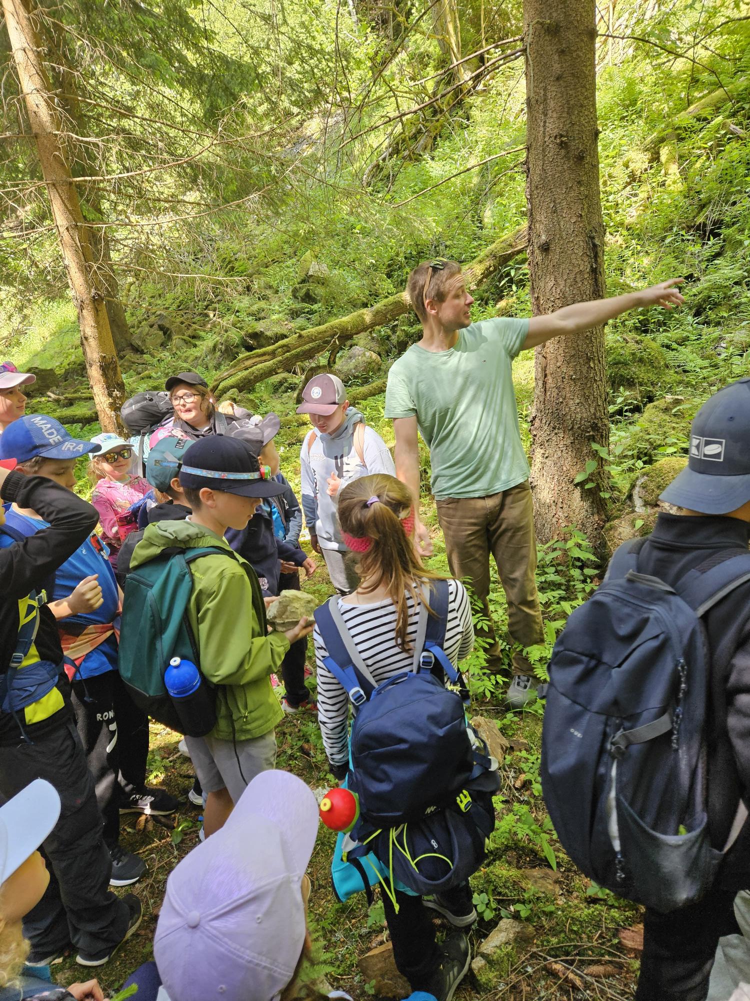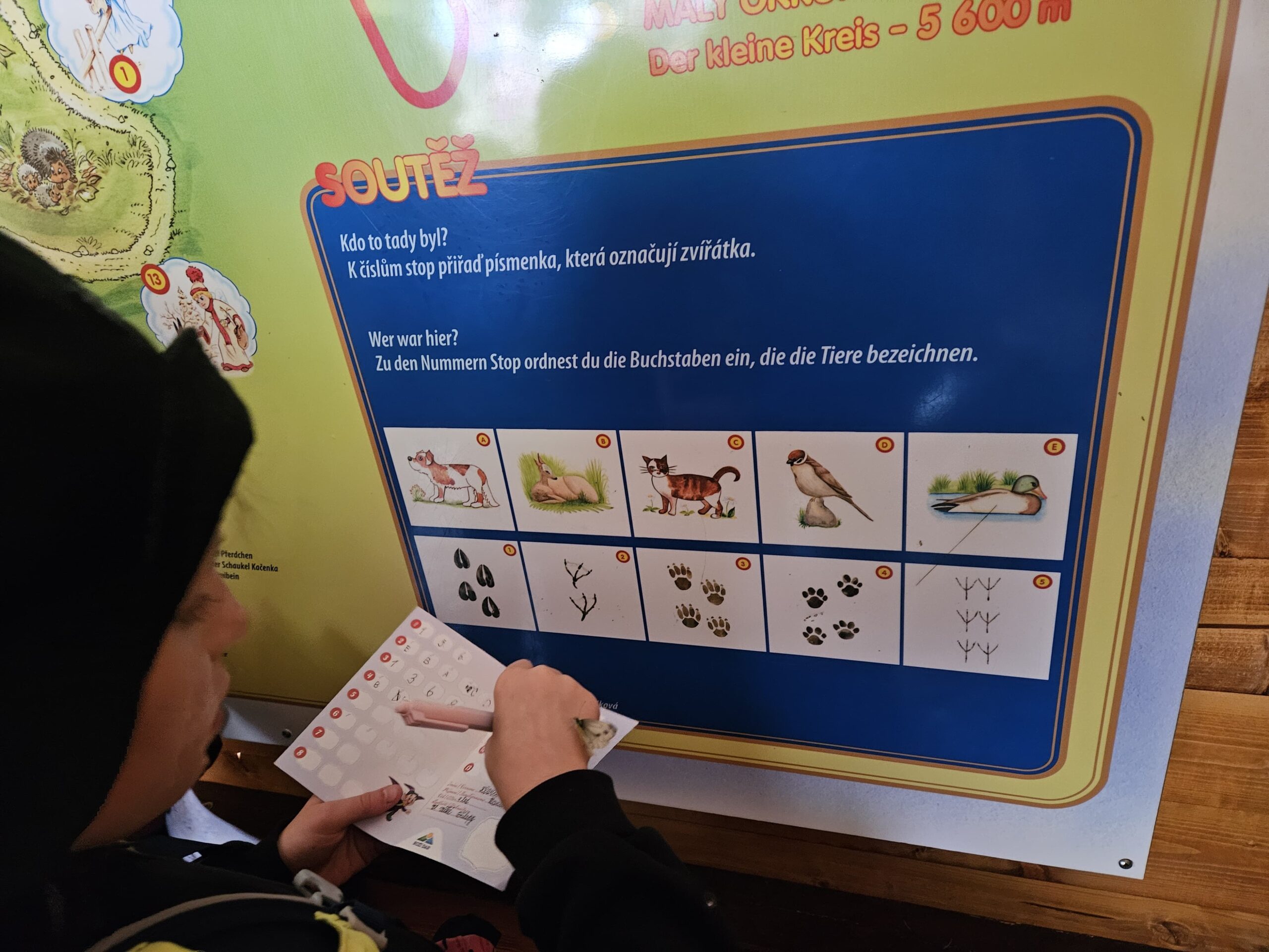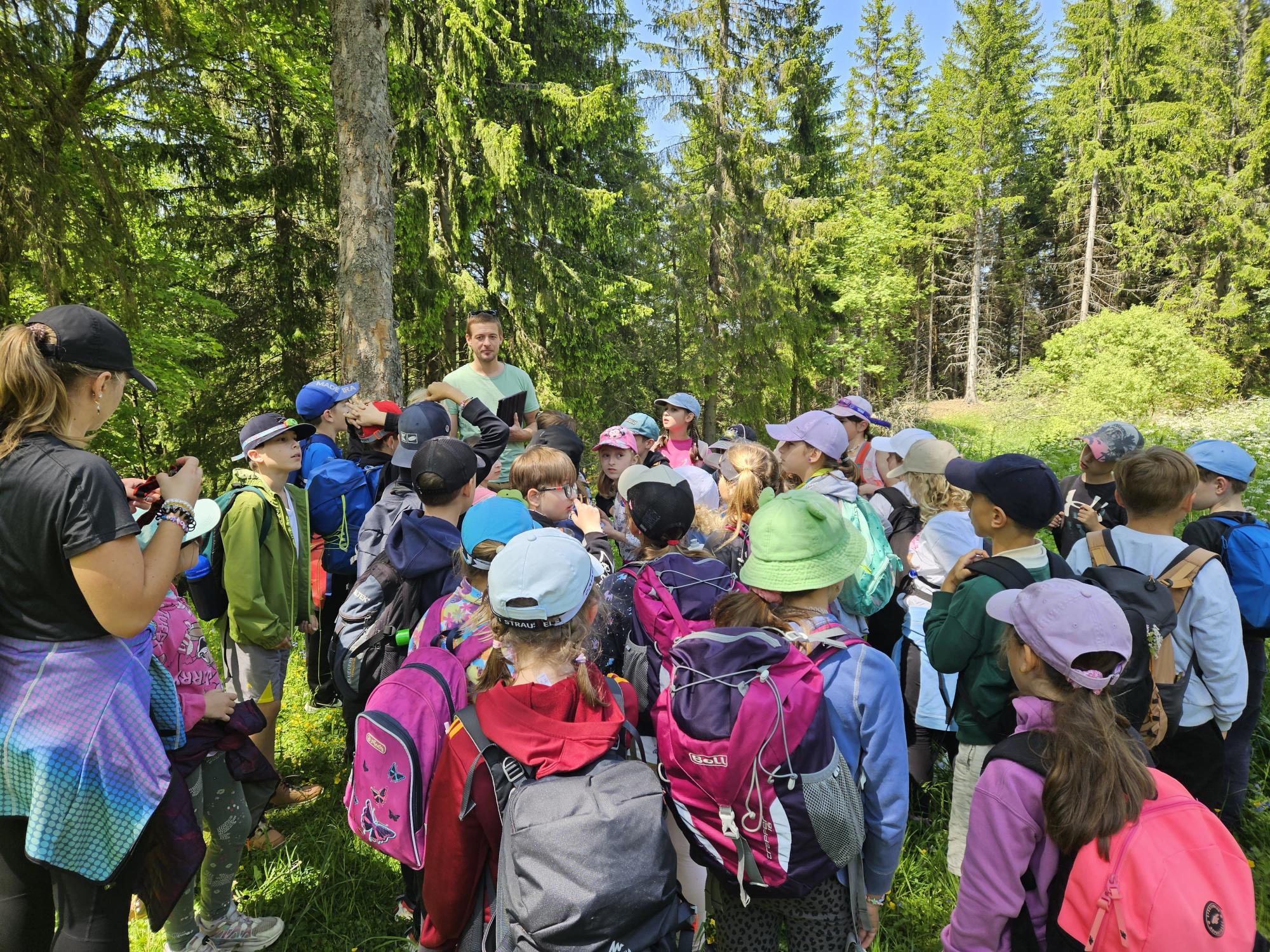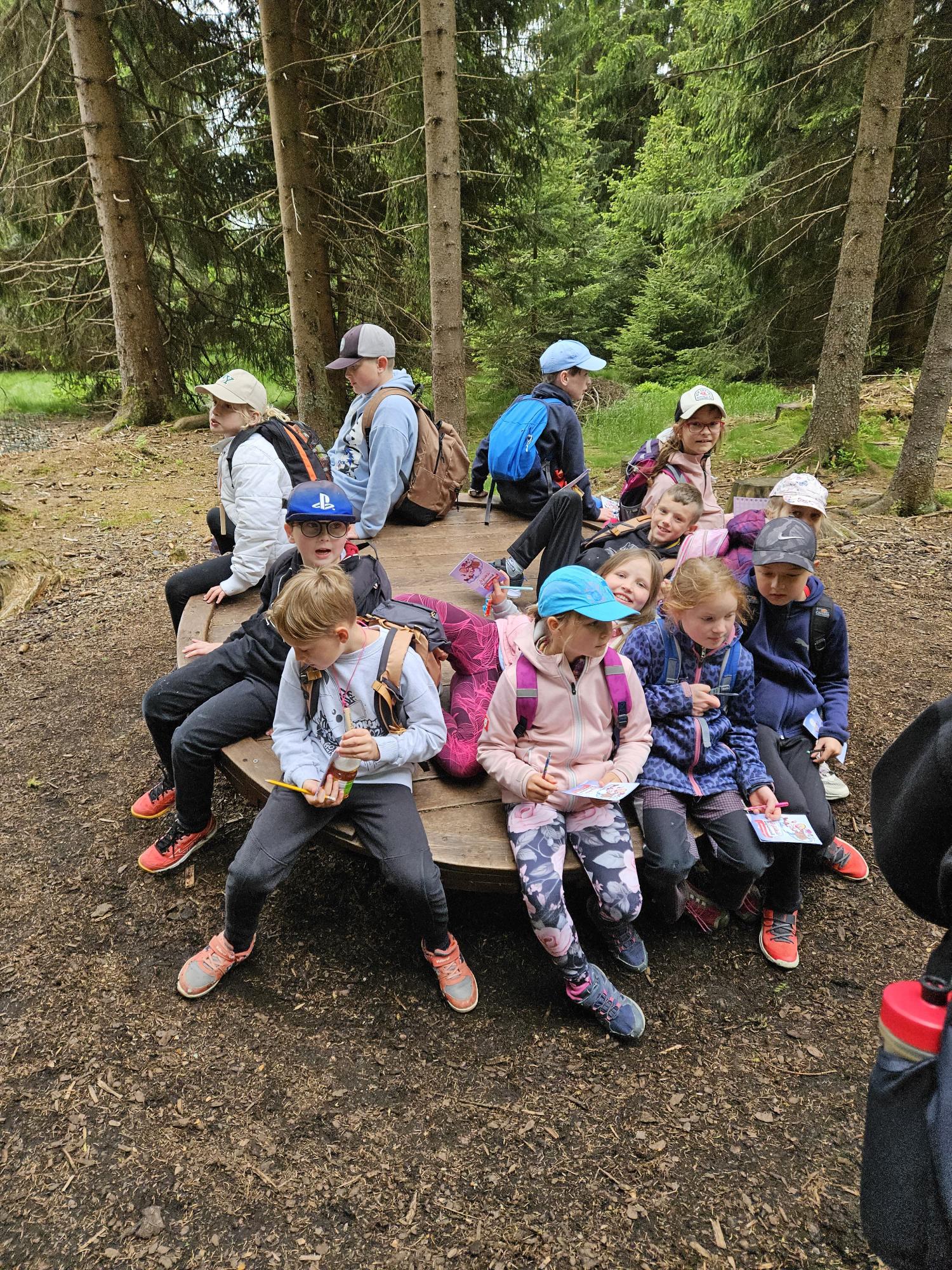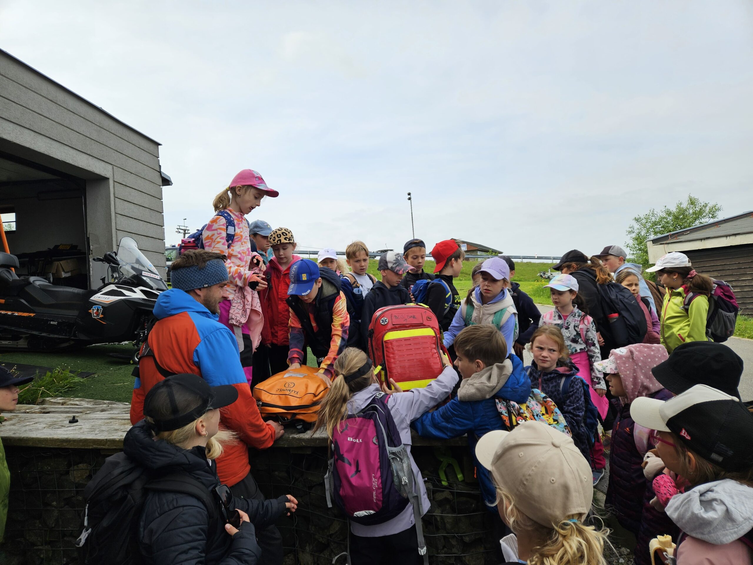 Dnes jsme se vydali autobusem na Boží Dar. Nejprve jsme navštívili Horskou službu, kde nám pán pověděl spoustu zajímavostí a také nám předvedl cvičeného psa Šuplíka. Vyzkoušeli jsme si skútr a čtyřkolku. Potom jsme šli na Ježíškovu cestu. Prošli jsme celý malý okruh a plnili úkoly v domečcích. Cestou jsme chytali broučky, housenky, mnohonožky, žáby a spoustu dalších živočichů. To nás opravdu dost bavilo. Chytili jsme páteříčka, nosatce, kovaříka, lišejníkovce a střevlíka. Celý den jsme běhali po lese a užívali jsme si čerstvého vzduchu. Teď máme červené tváře a chystáme se na večeři.