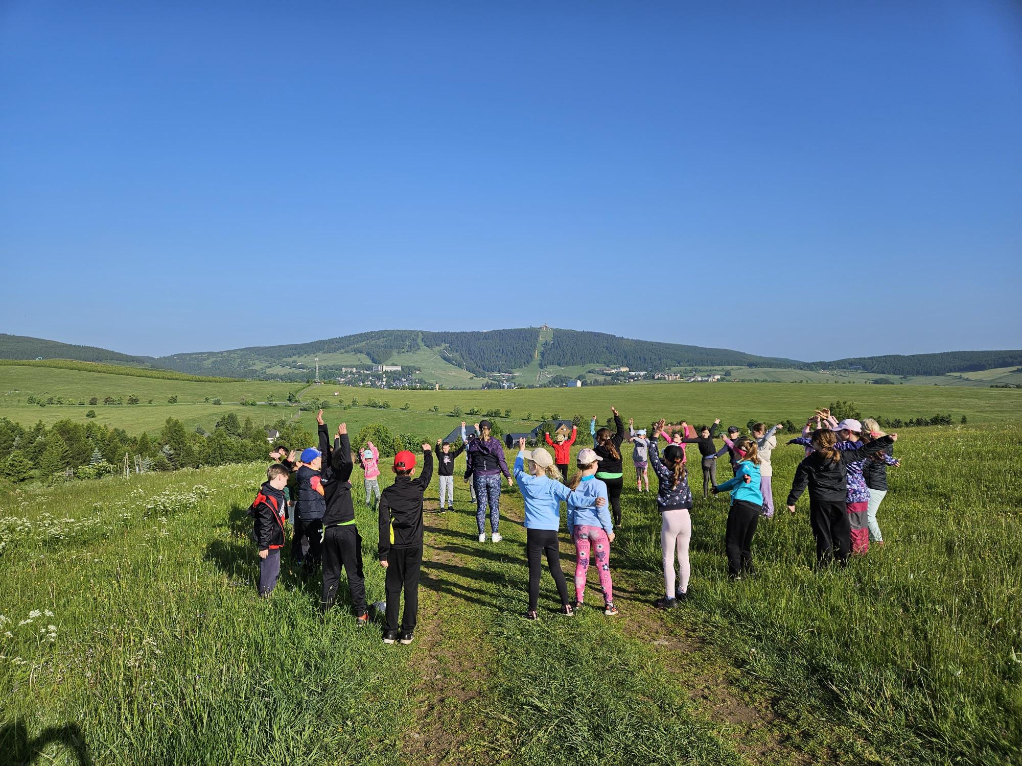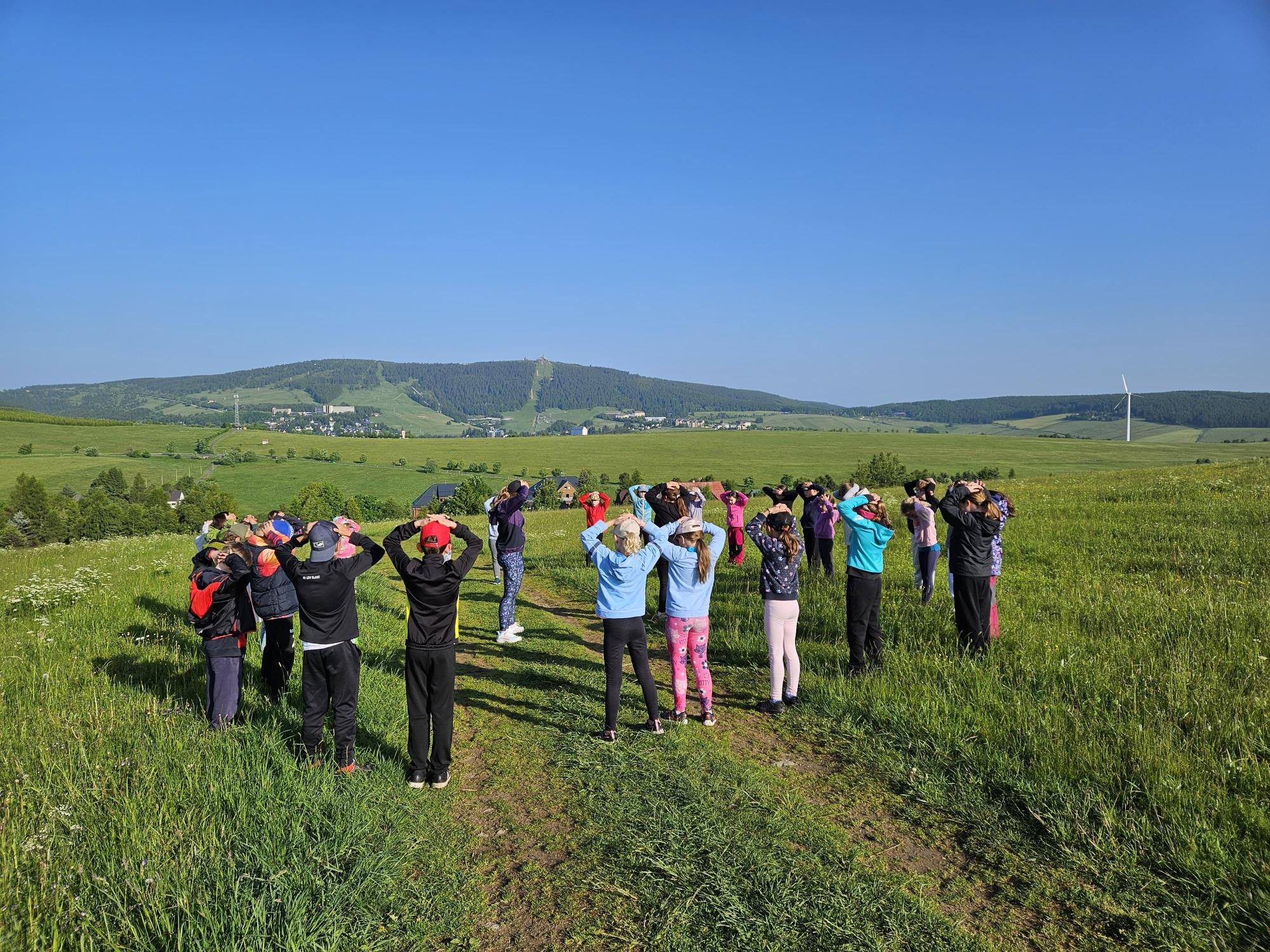 Jako každý den jsme začali rozcvičkou. Hned v půl osmé jsme vyběhli na kopec.