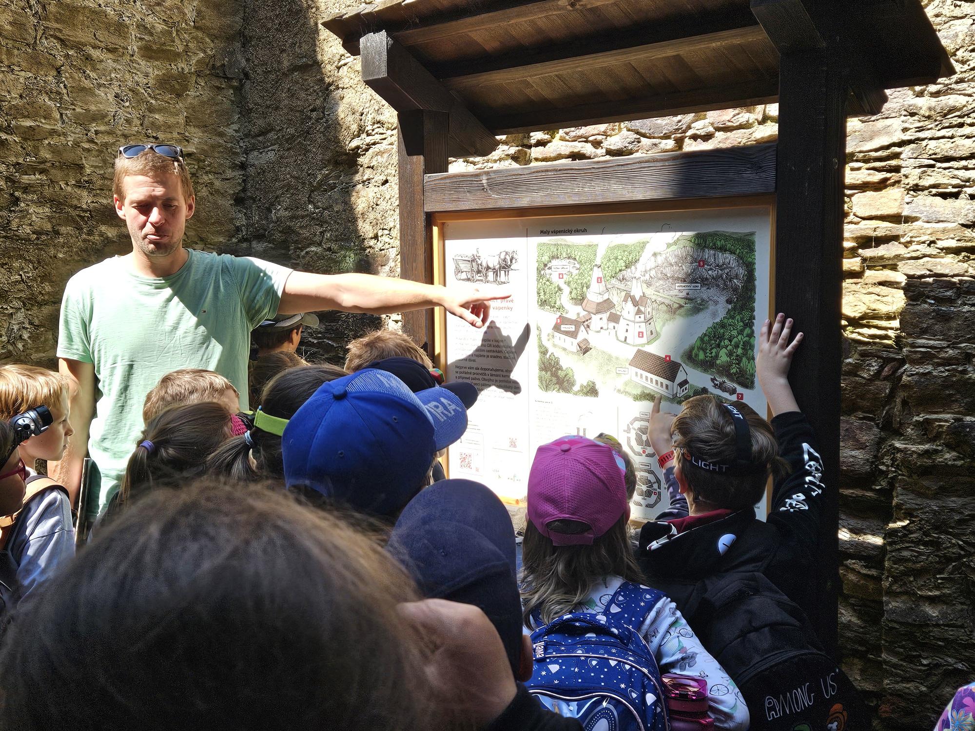 Po dobrém obědě jsme se vydali cestou ke staré vápence. S průvodcem jsme získali povědomí o těžbě vápence, výrobě vápna a další zajímavosti o tomto památném místě.