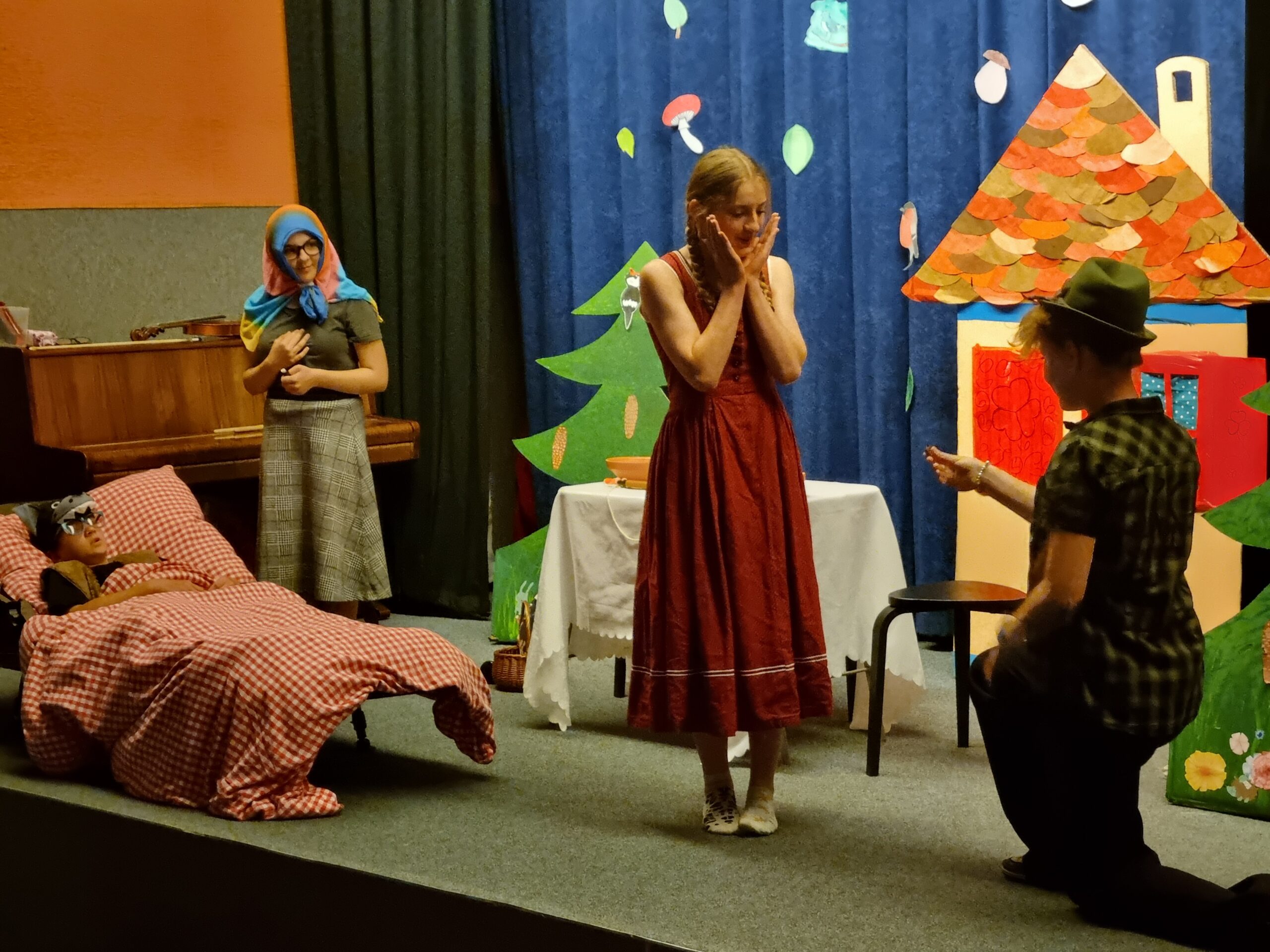Dopoledne 12. 6. se neslo ve znamení pohádkových postav, zpěvu a radosti. Děti z hudebního kroužku spolu se spolužáky, kteří se chtěli do vystoupení také zapojit a podpořili ho sborovým zpěvem, představily dvě krásné zpívané pohádky – Červenou Karkulku a O Budulínkovi. Představení bylo určeno našim nejmenším – dětem z mateřské školy a žákům 1. a 2. tříd.