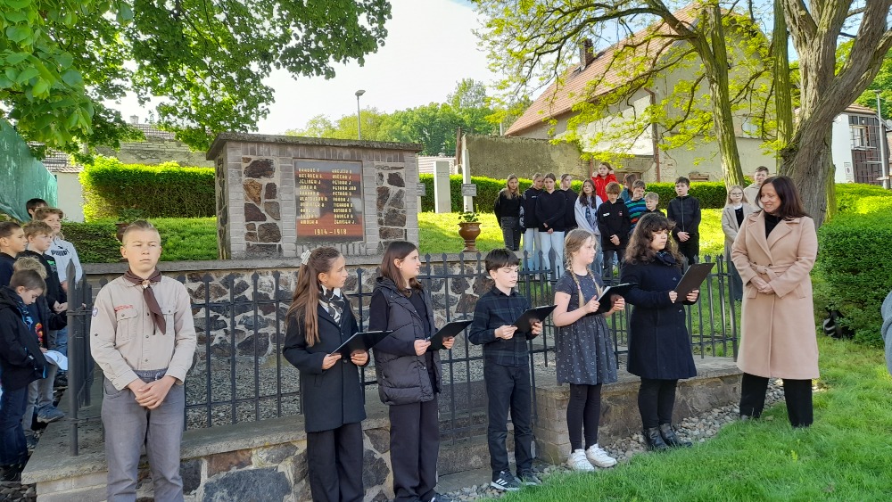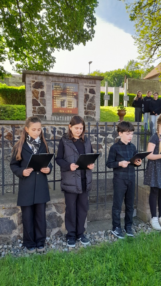 Žáci V. A se k tomuto aktu postavili důstojně, dokonce sami navrhli, že přijdou oblečeni v černo-bílém svátečním oděvu. Pět z nic se ujalo slavnostního projevu, který nám poskytla obec, kde byl popsán průběh posledních válečných dnů zde, ve Velkých Přílepech. Což bylo pro žáky velmi přínosné a skvěle nám to doplnilo probíranou látku.