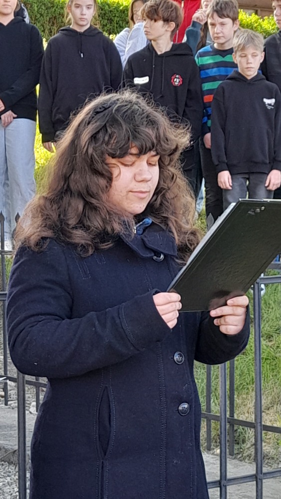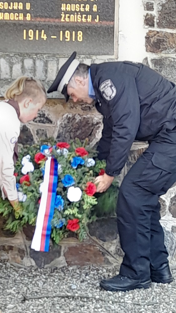 Jeden žák dokonce přišel ve skautském kroji, proto byl požádán, aby se ujal, spolu s příslušníky Obecní policie, kladení věnců.