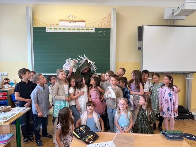 Ve středu 30. dubna se naše třída proměnila v místo plné tajemství a čar, když k nám zavítala neobyčejná návštěvnice – čarodějnice Bludimíra. S laskavým úsměvem se představila dětem, které s úžasem sledovaly její příchod.