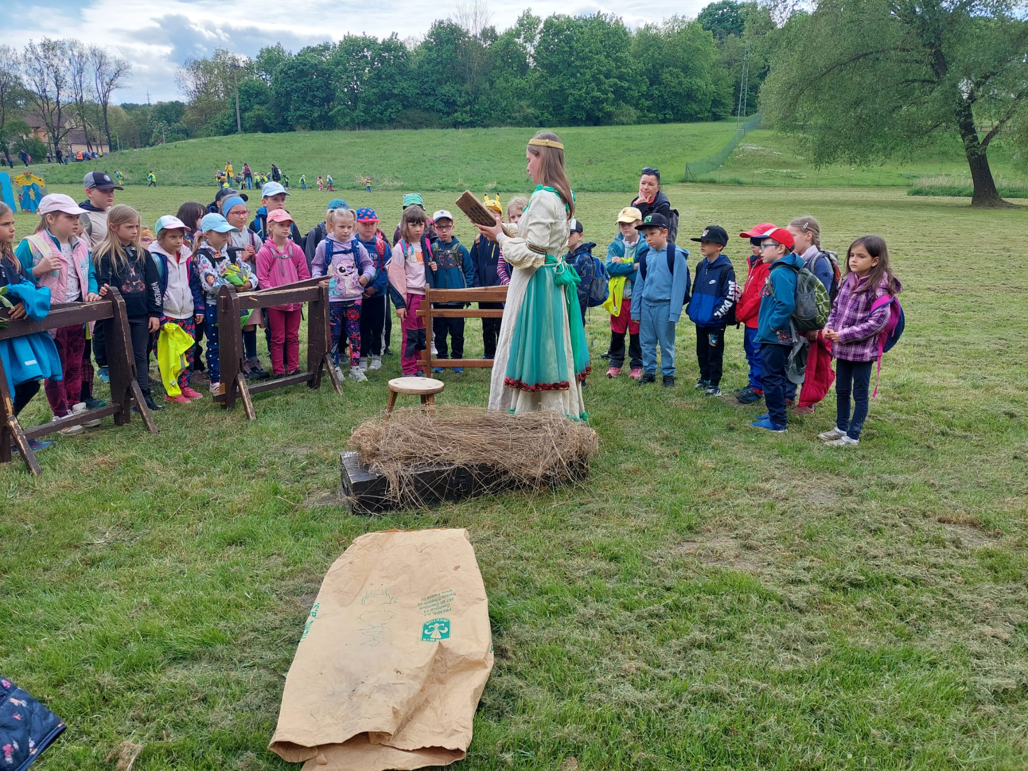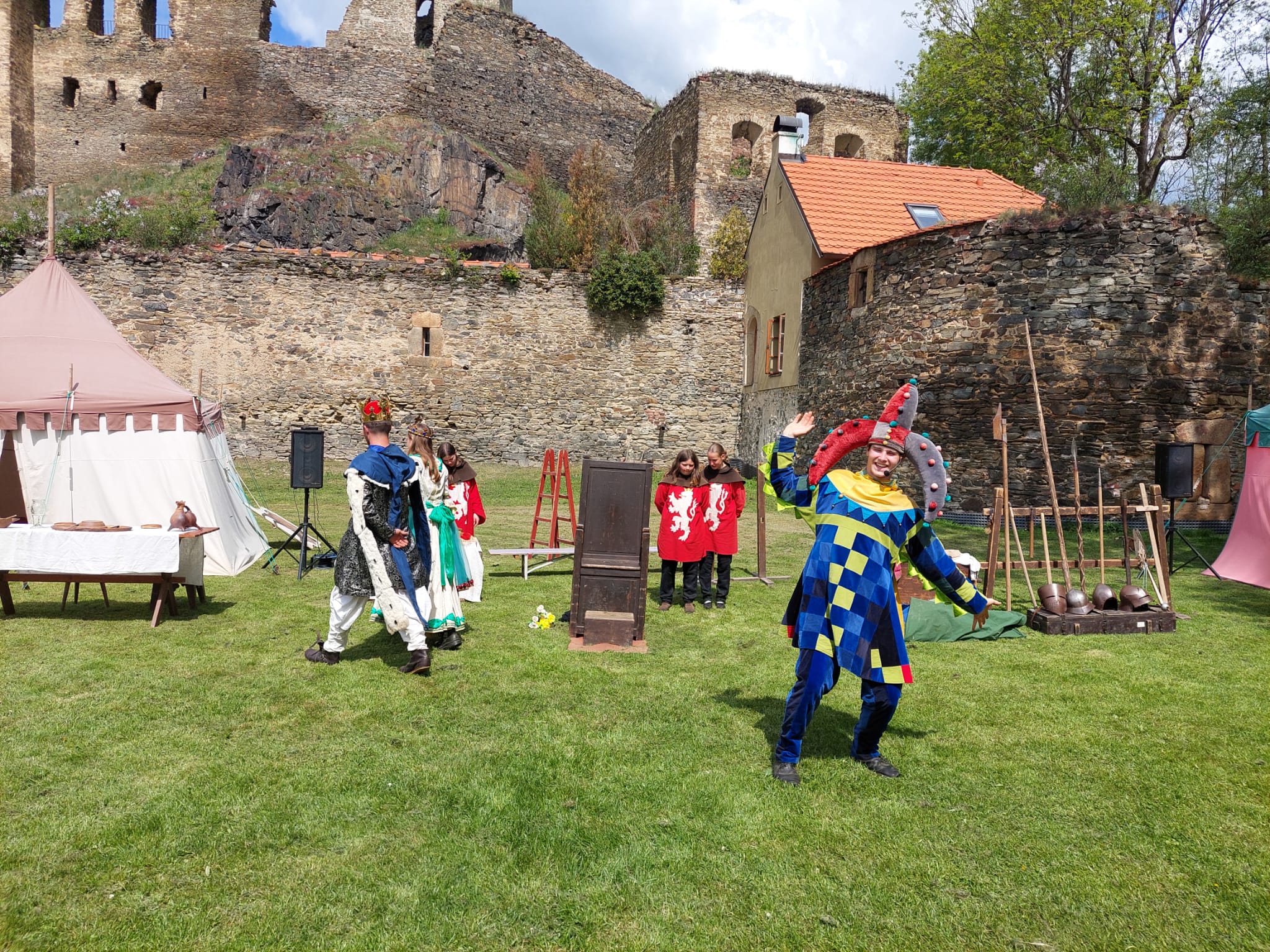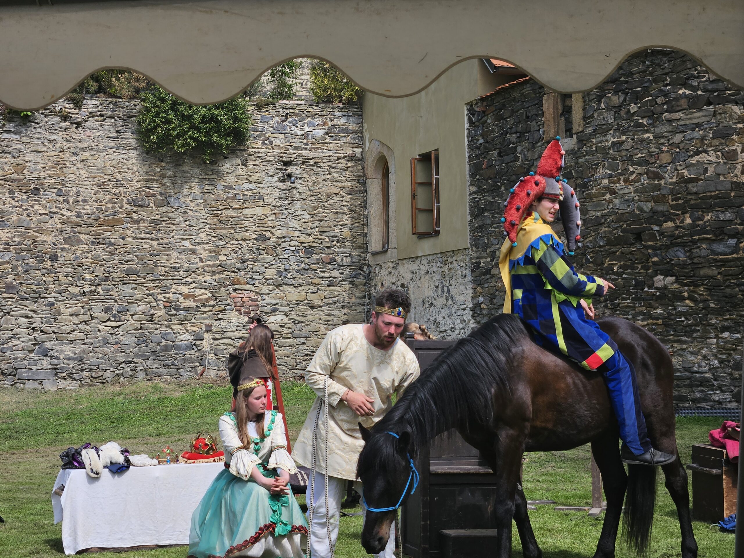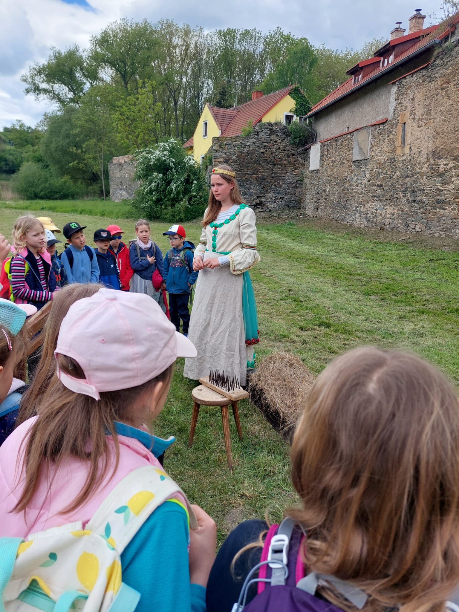Celou pohádkou nás hlavně provázel laskavý a vtipný šašek. Bajaja nám zase ukázal, jak se správně starat o svého koně. Princezna nás po pohádce naučila, jak se předl len a stráže nás seznámily se středověkými zbraněmi. Někteří z nás si vyzkoušeli helmy na svých hlavách. Dozvěděli jsme se také, jak lidé dříve mleli mouku i jak se hodovalo na královské hostině.