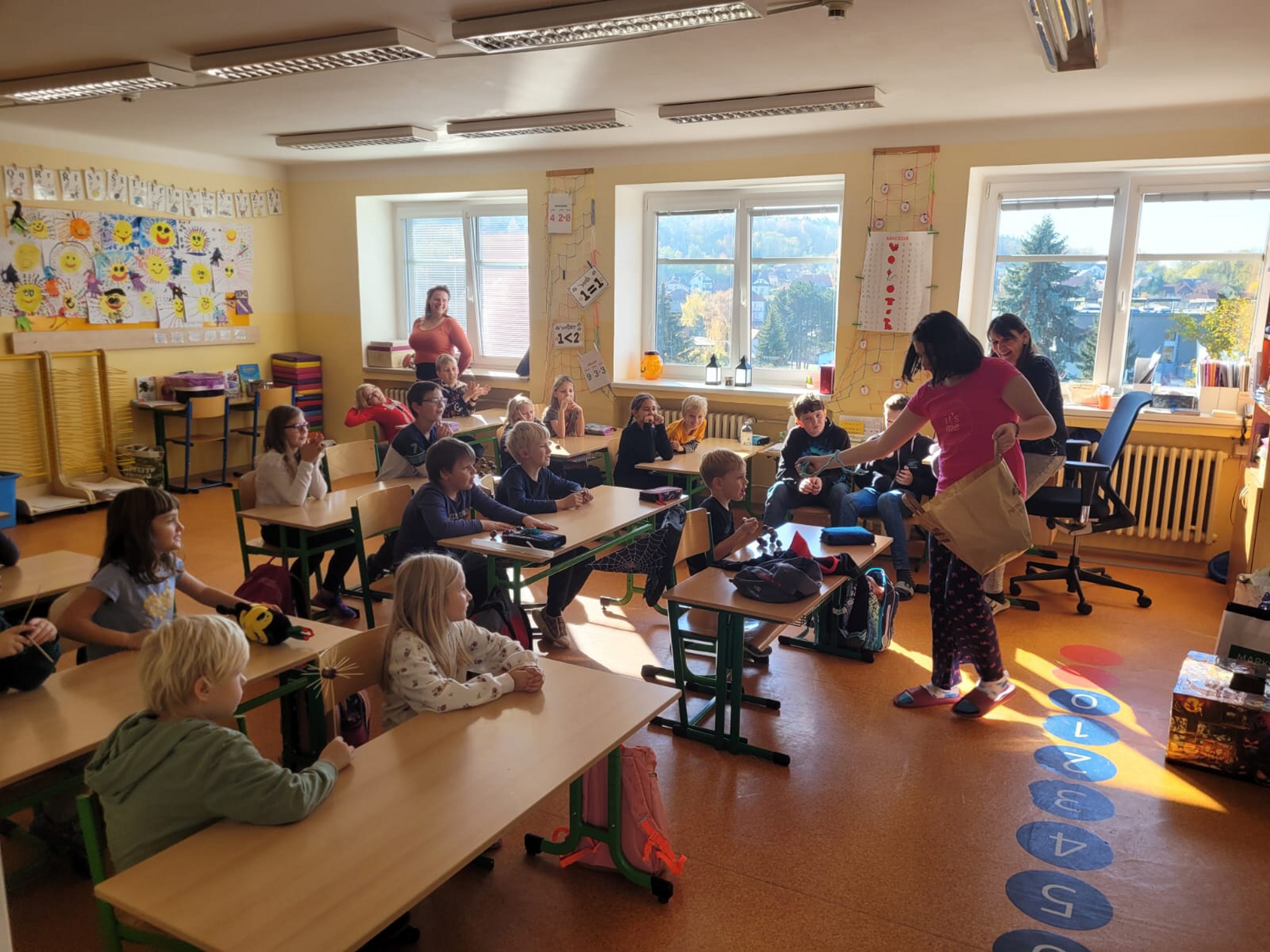 V pátek 18. 10. jsme se sedmáky a deváťáky vyrazili do CVA na přednášku. Cestovatel Tomáš Vejmola nás provedl svou dobrodružnou cestou tuktukem, který zakoupil v Jižní Africe a vydal se s ním po 7 zemích této oblasti. 111 dní a 9 000 km dobrodružství, poznal země, lidi, mizející etnika, slyšel neskutečně jazyků, viděl zvířata, ochutnal africká jídla, zakusil nepřízeň horkého a suchého počasí, poznal hladké i náročné cesty ve štěrku a písku a přivezl si malárii. Ale nadšení pro cestování z něj jen sršelo, děti se hodně ptaly a myslím, že jeho autenticita nadchla.