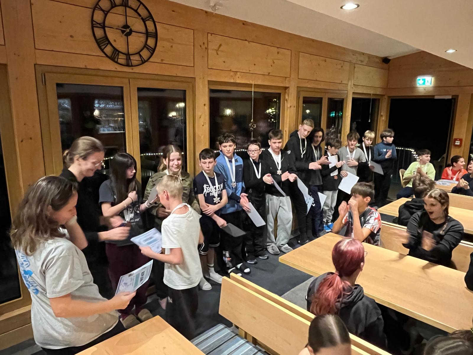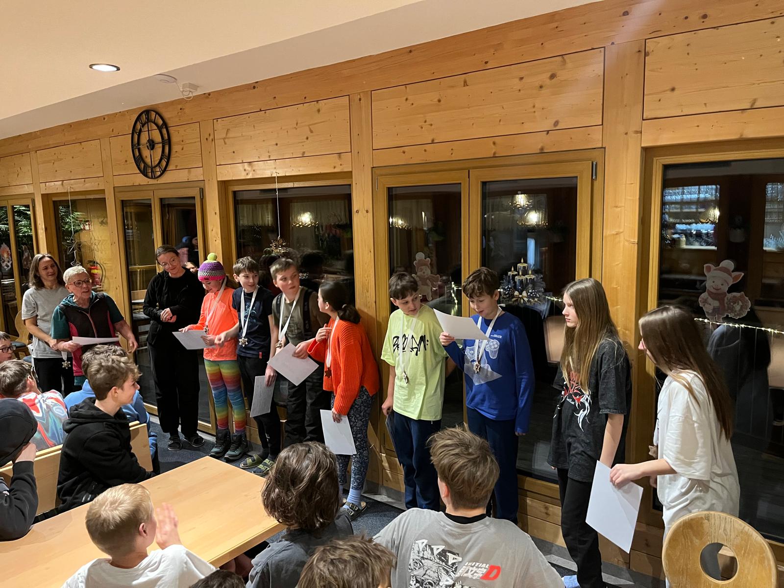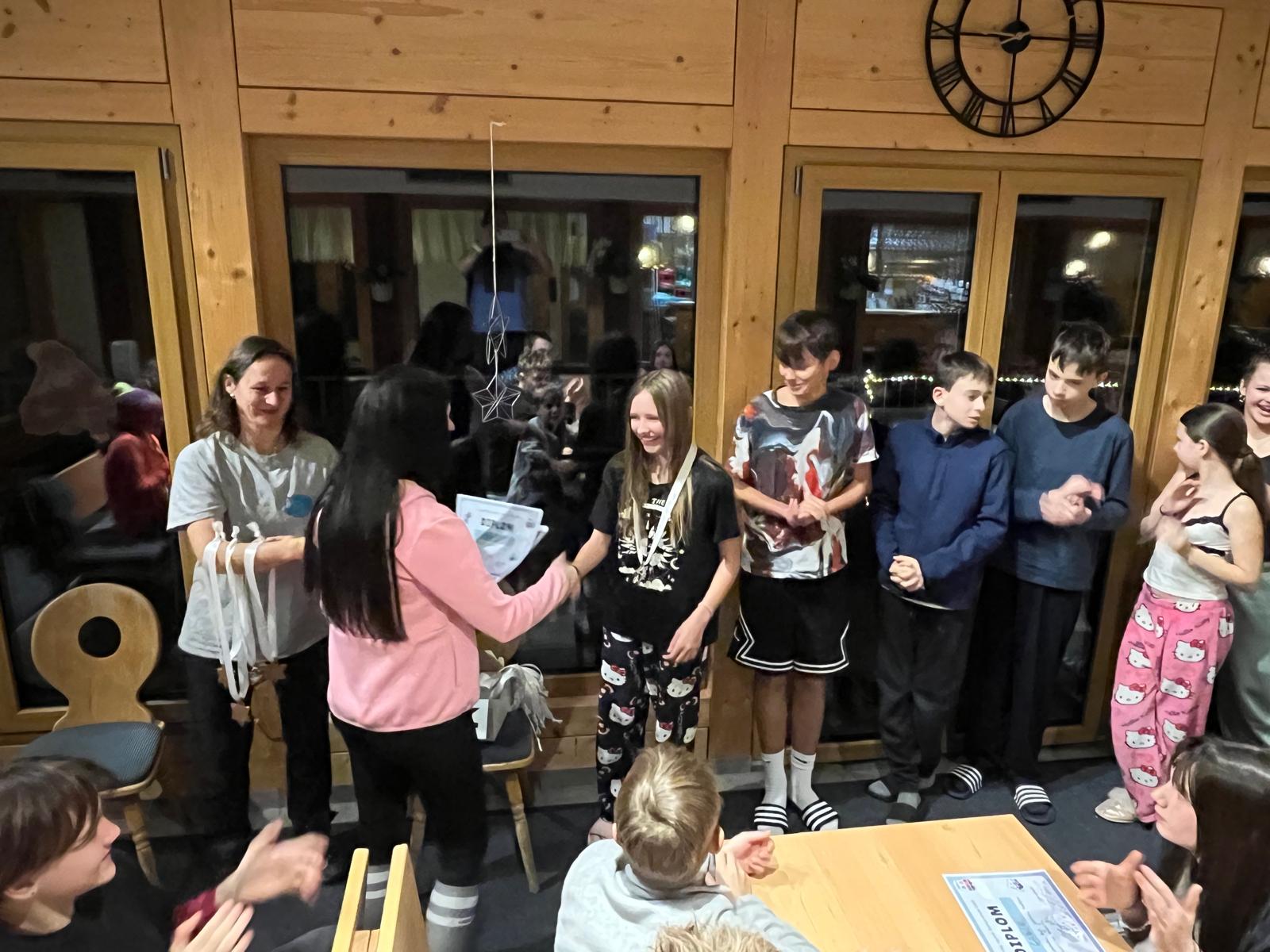 Dnešní den byl výjimečný také tím, že nás čeká poslední večer na horách. Ten bude patřit nejen předávání diplomů a medailí za celotýdenní snažení, ale také slavnostnímu rozloučení s lyžařským výcvikem. Navíc společně oslavíme narozeniny paní učitelky Muškové, což dodá večeru ještě příjemnější a slavnostnější atmosféru.