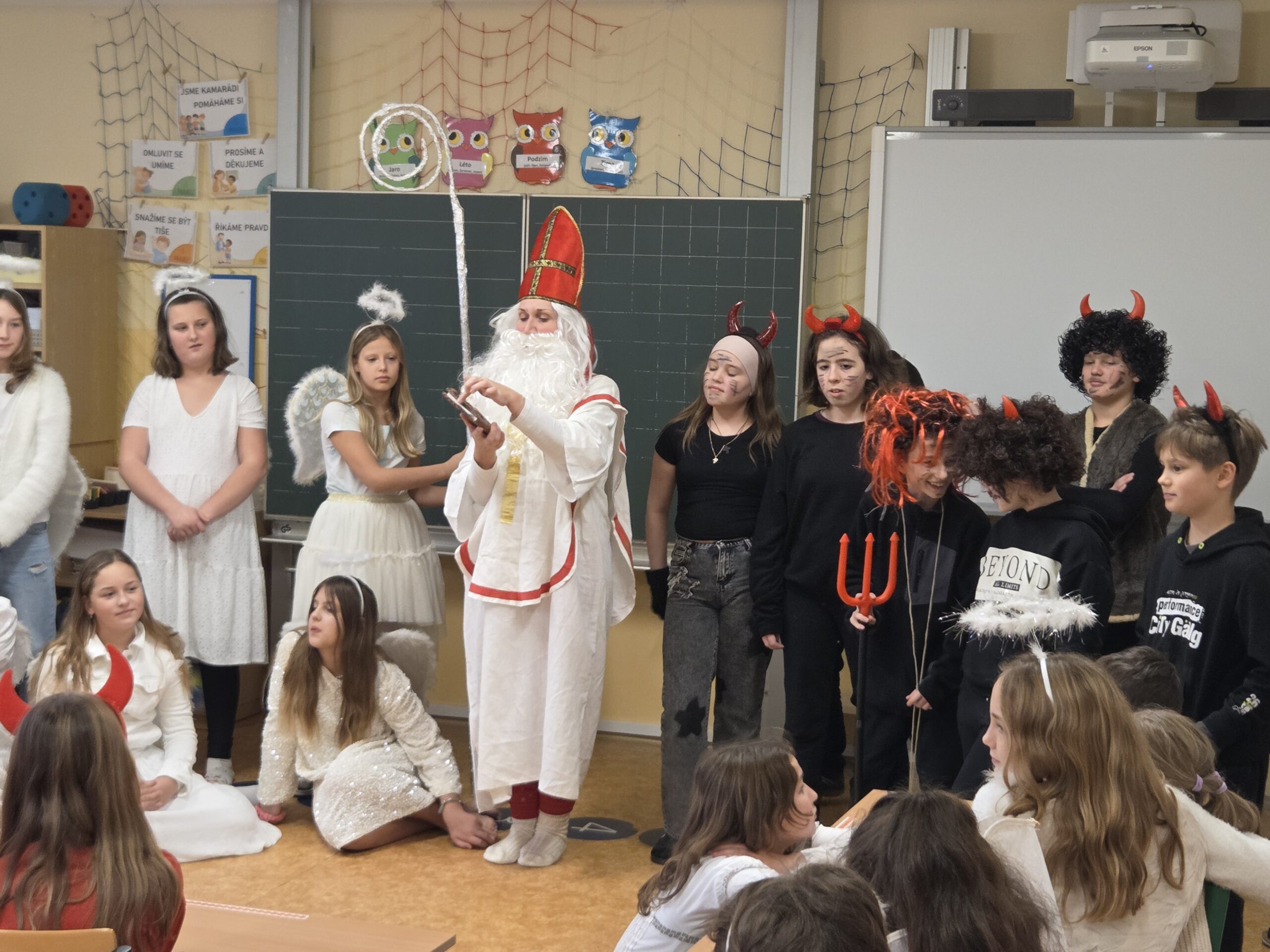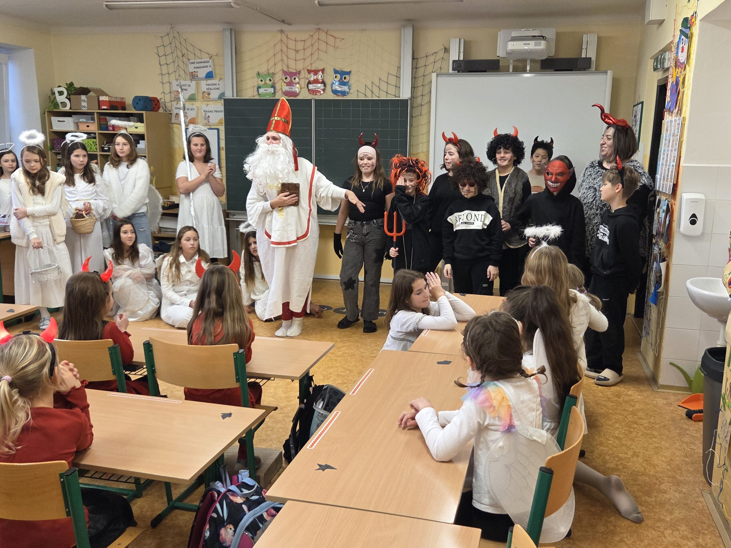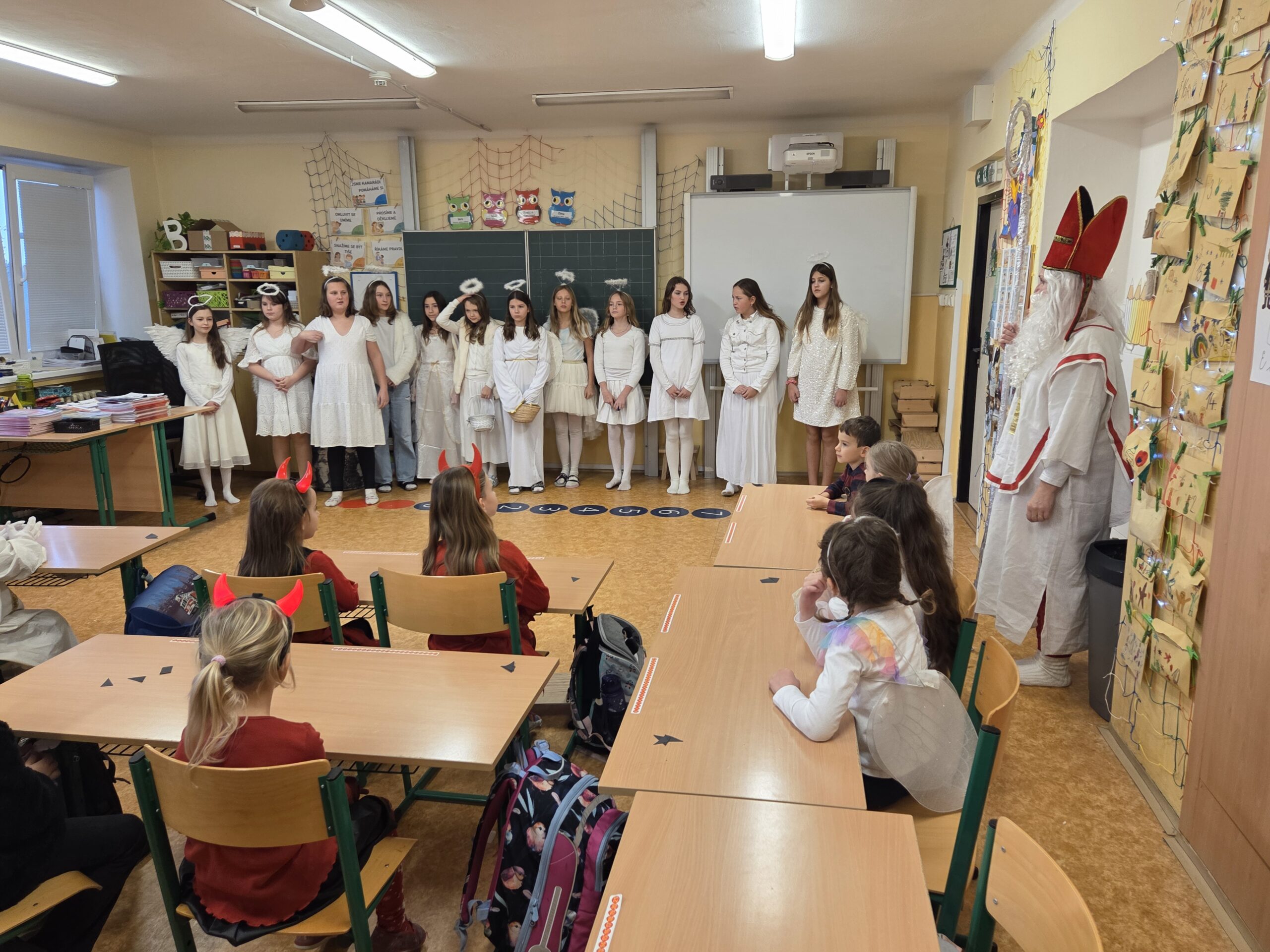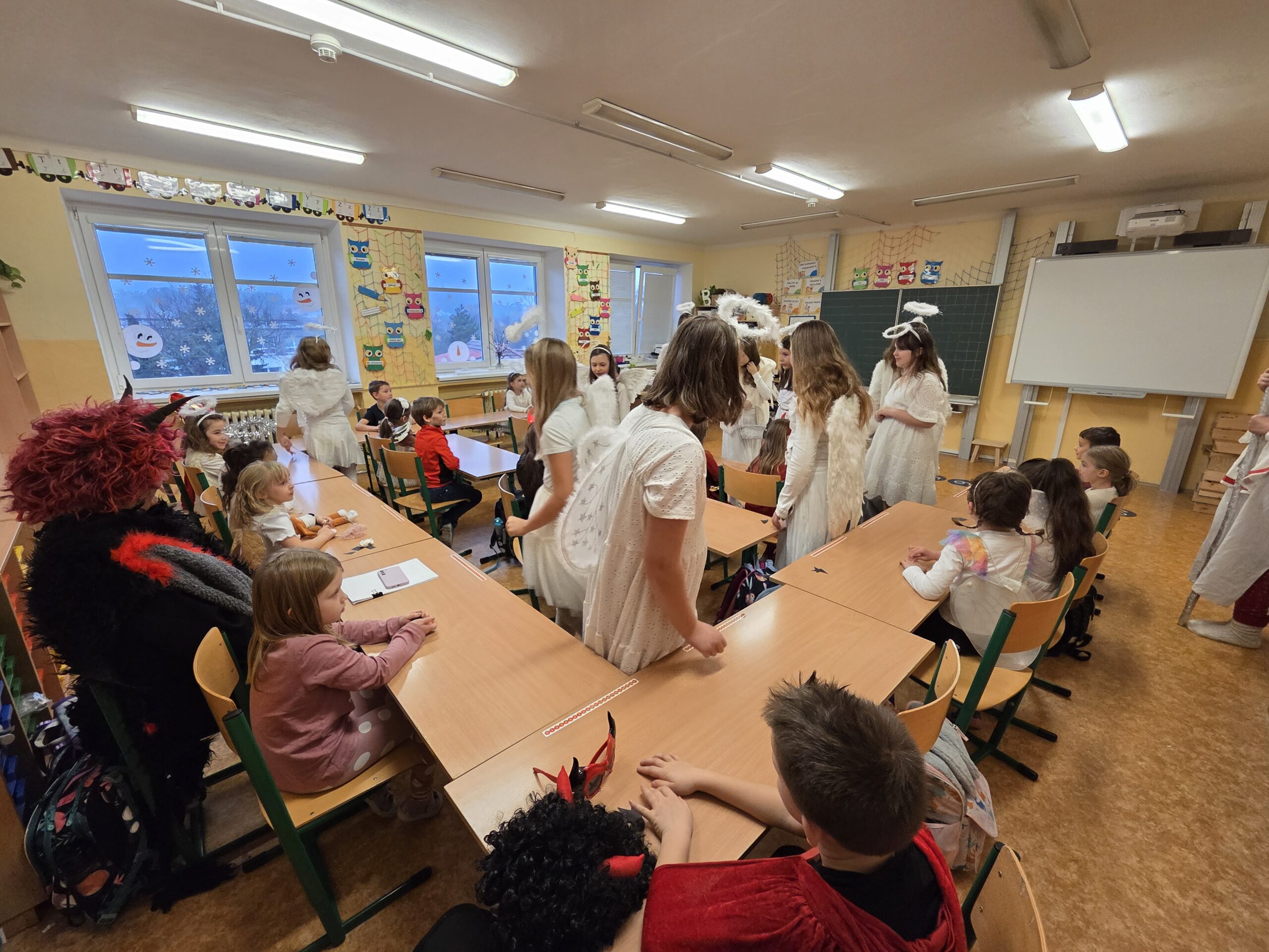 Návštěva byla milá, důstojná a vlídná. Přece jen ještě není daleko doba, kdy měli i páťáci z andělů, čertíků a Mikuláše ještě velký respekt.