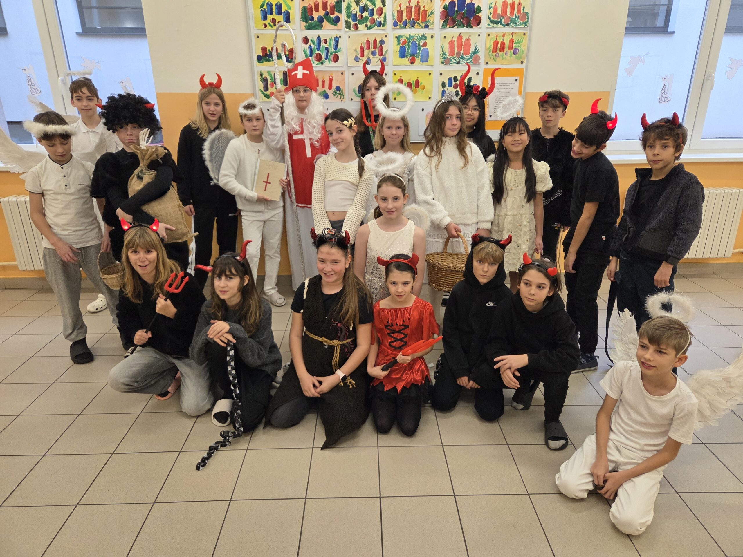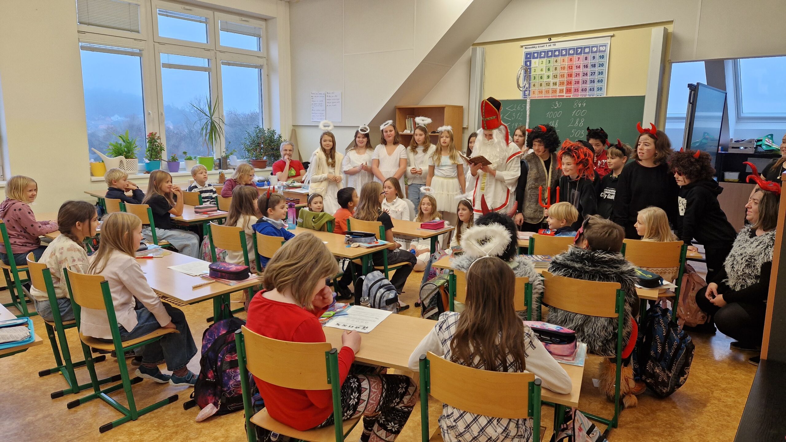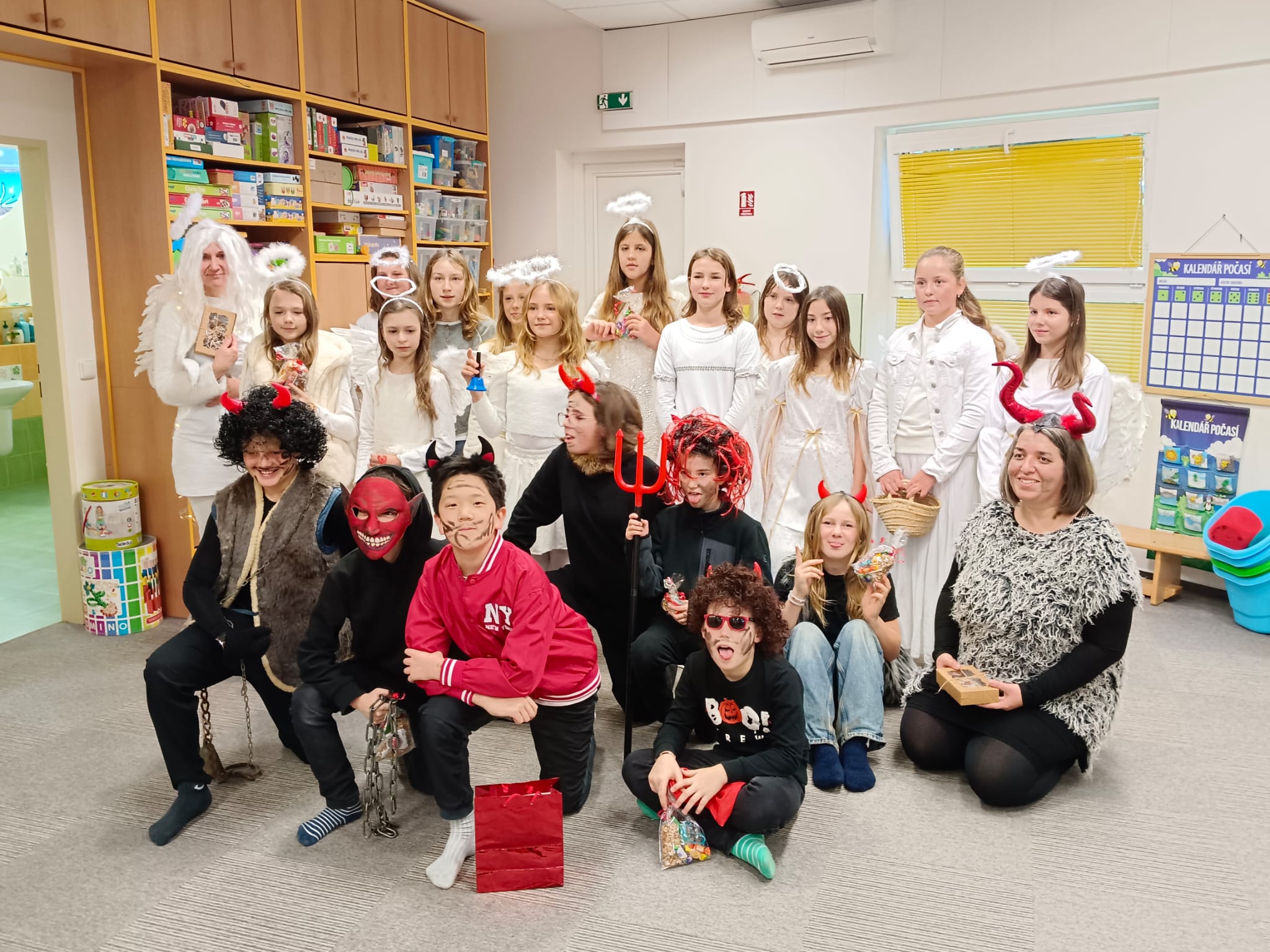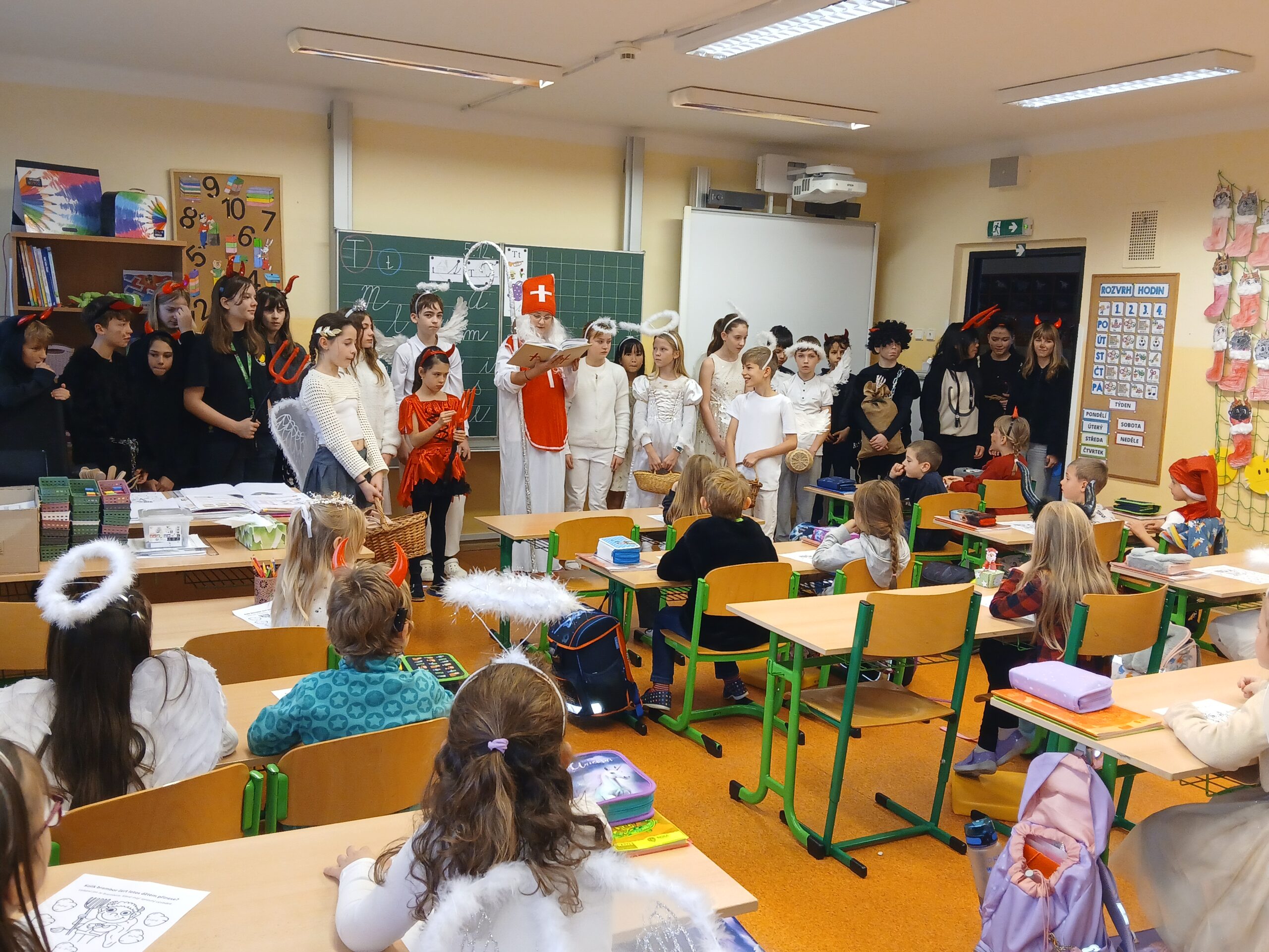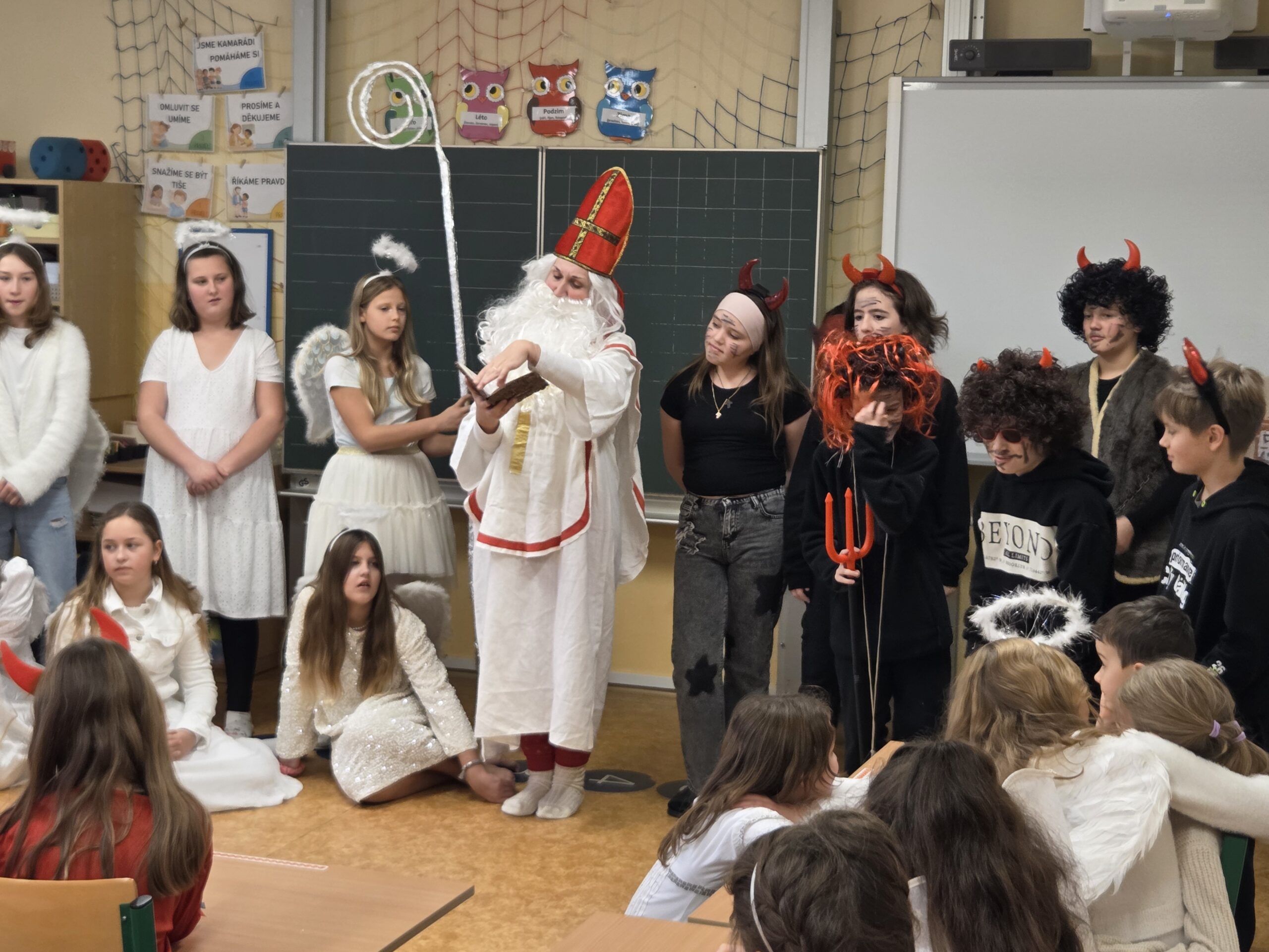 Návštěva byla milá, důstojná a vlídná. Přece jen ještě není daleko doba, kdy měli i páťáci z andělů, čertíků a Mikuláše ještě velký respekt.