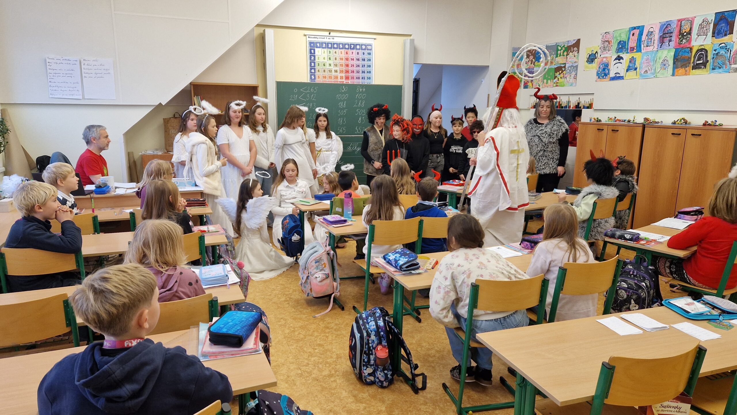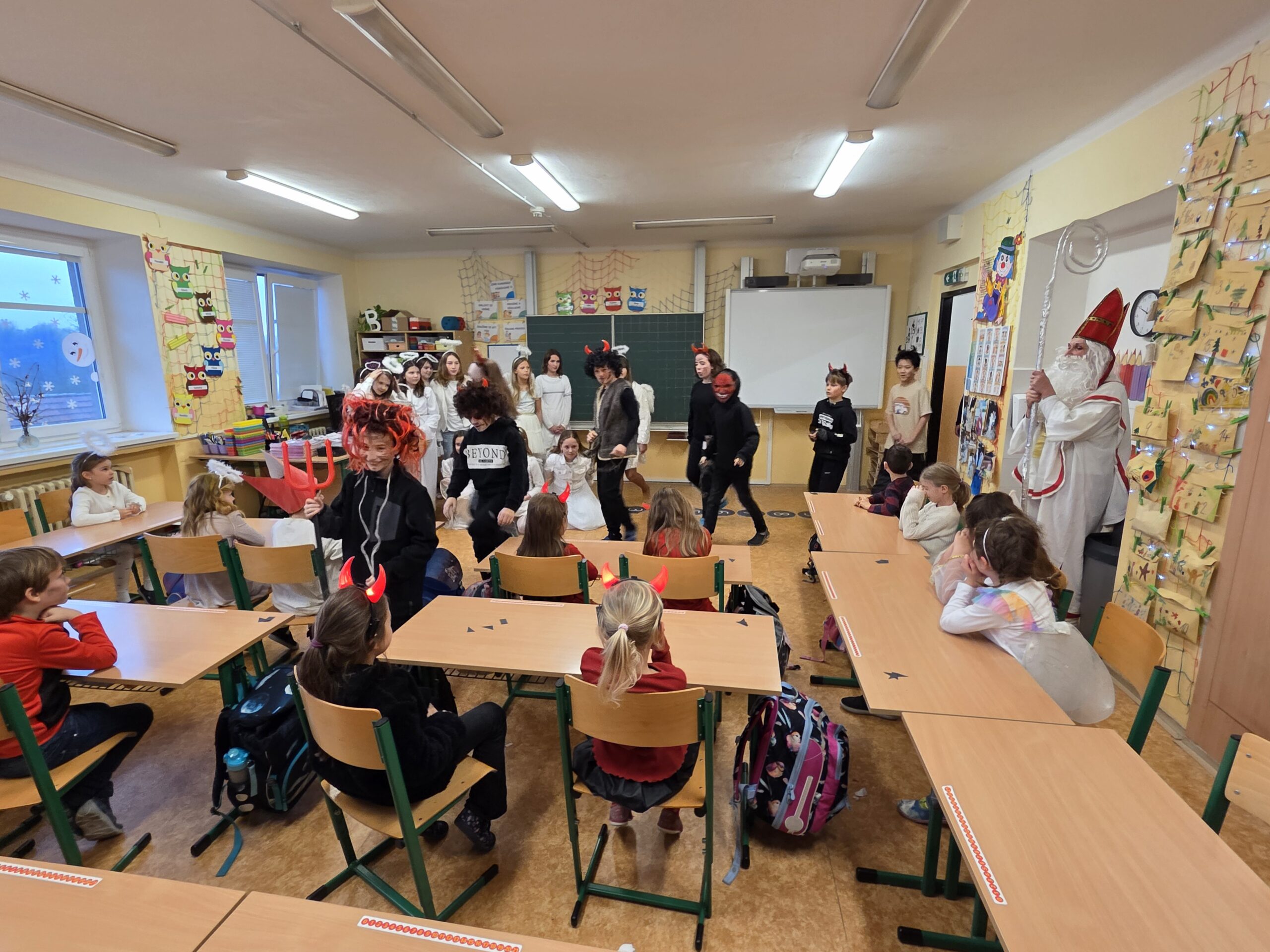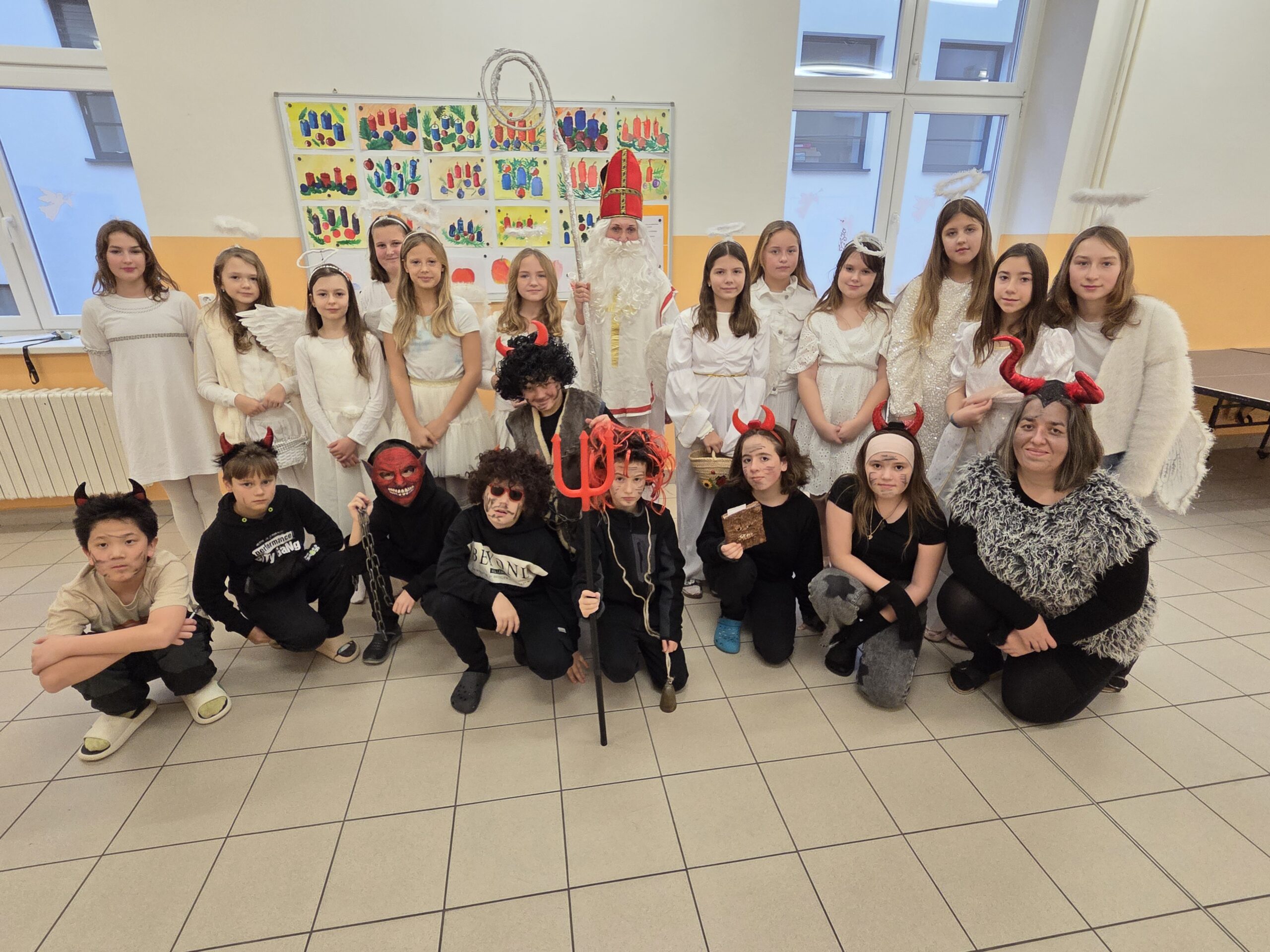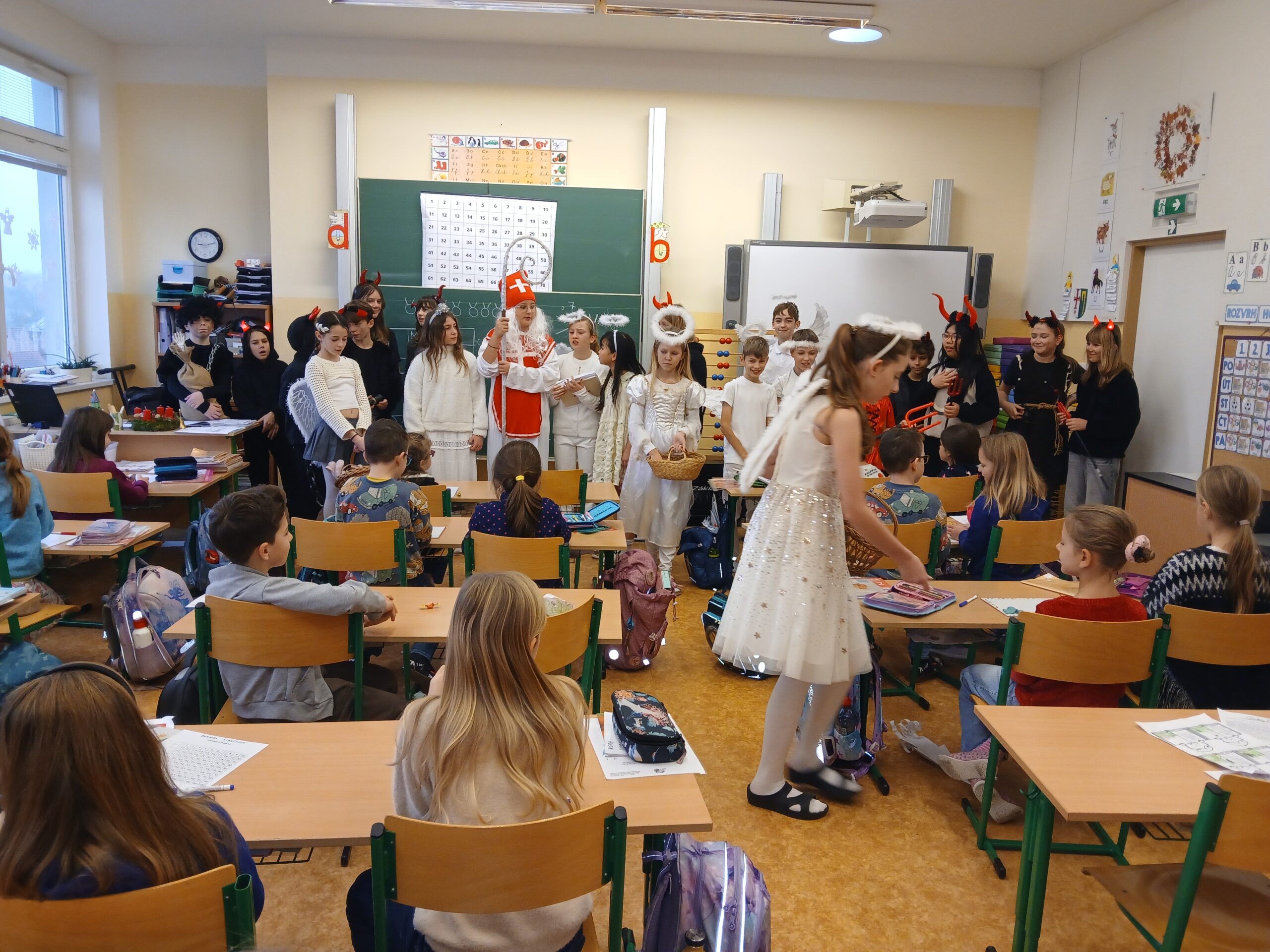 Návštěva byla milá, důstojná a vlídná. Přece jen ještě není daleko doba, kdy měli i páťáci z andělů, čertíků a Mikuláše ještě velký respekt.