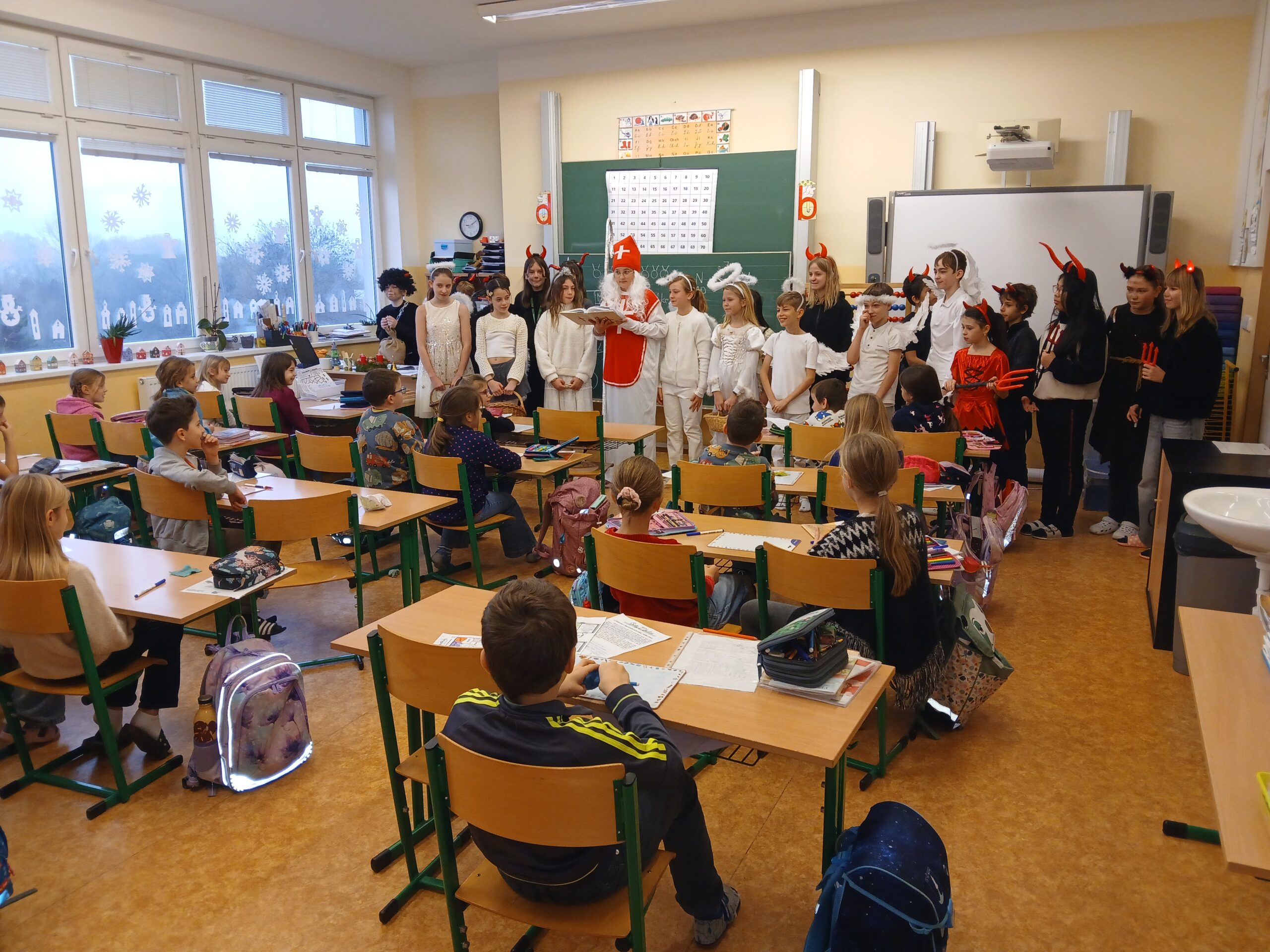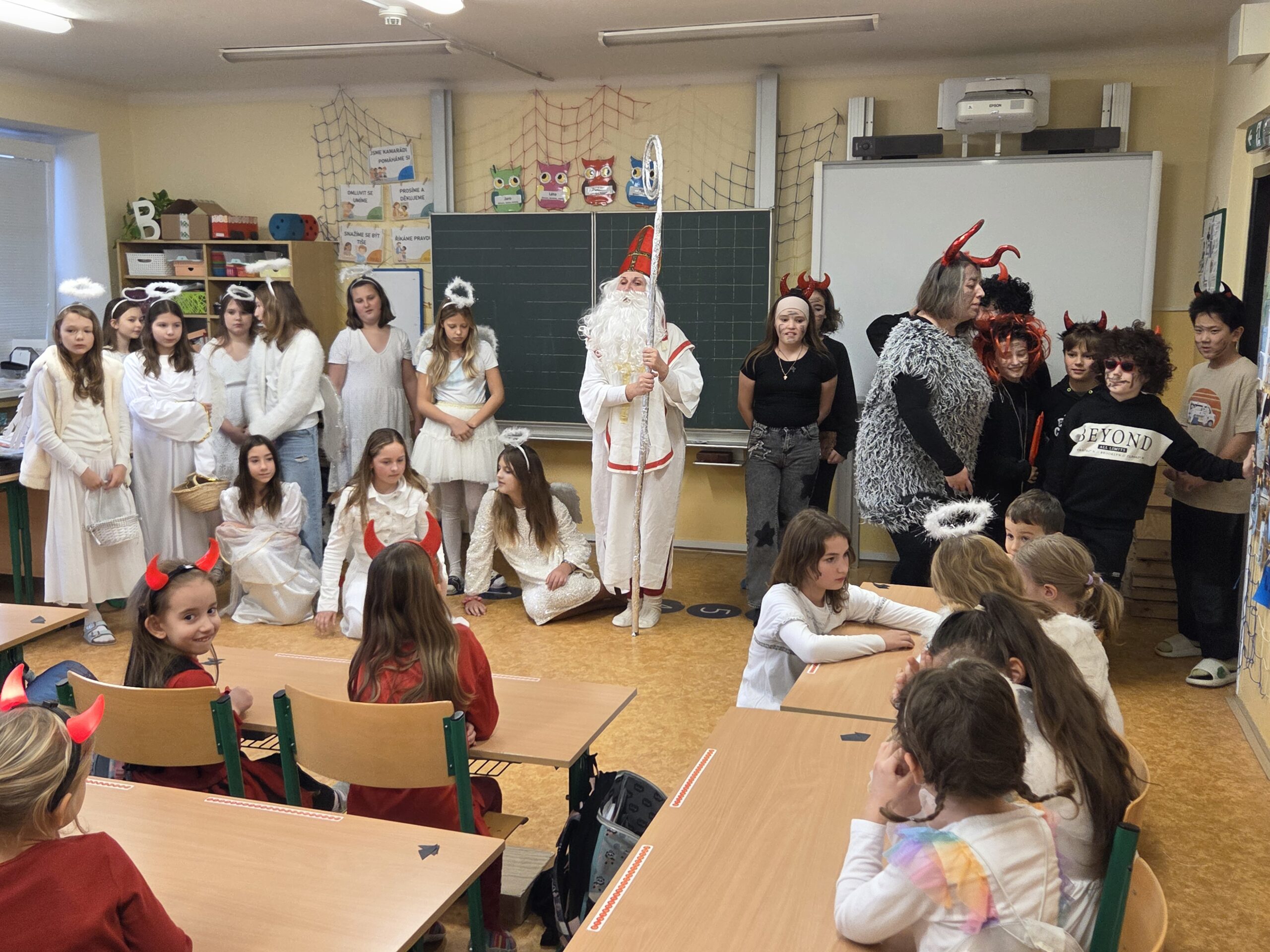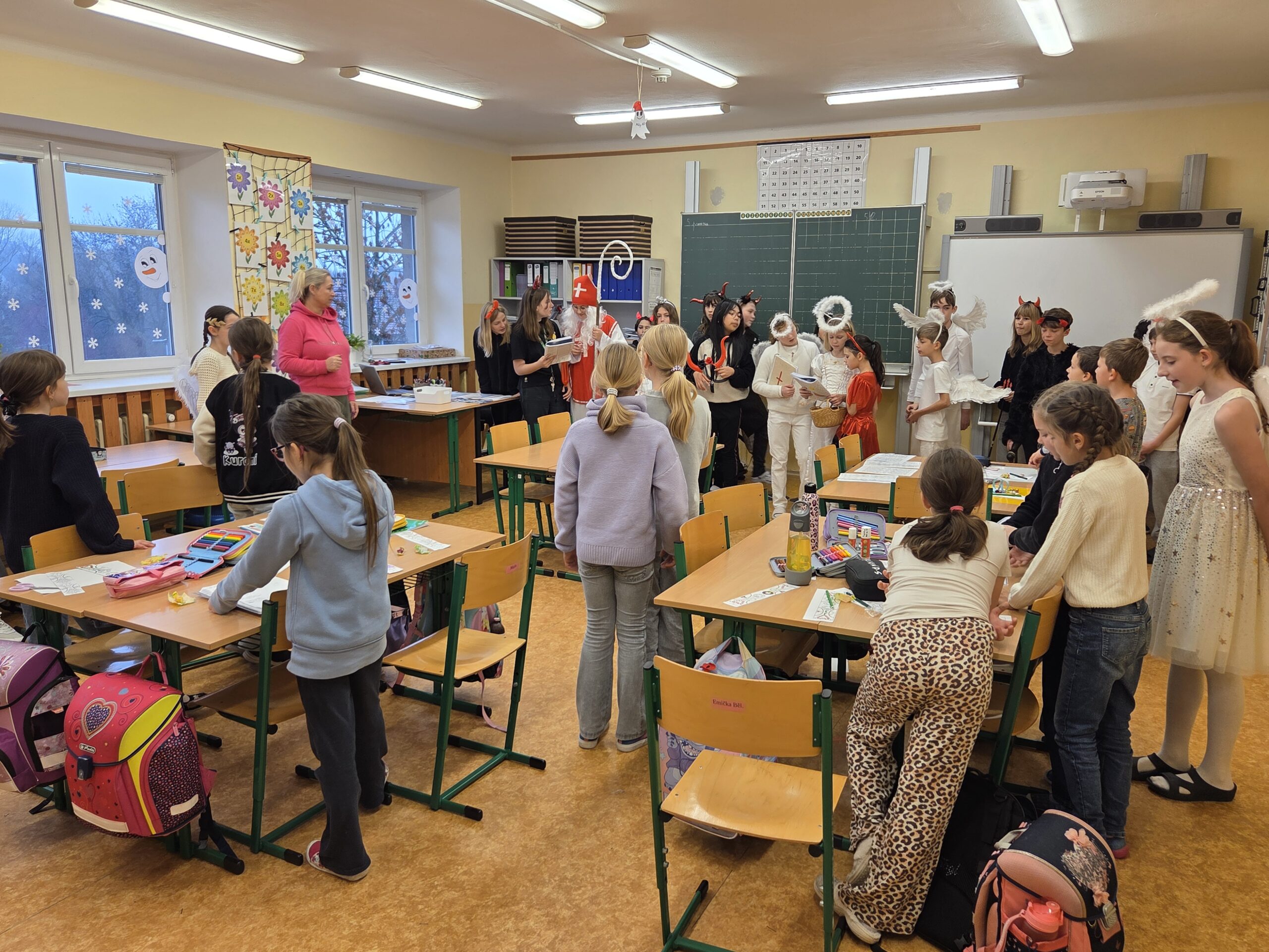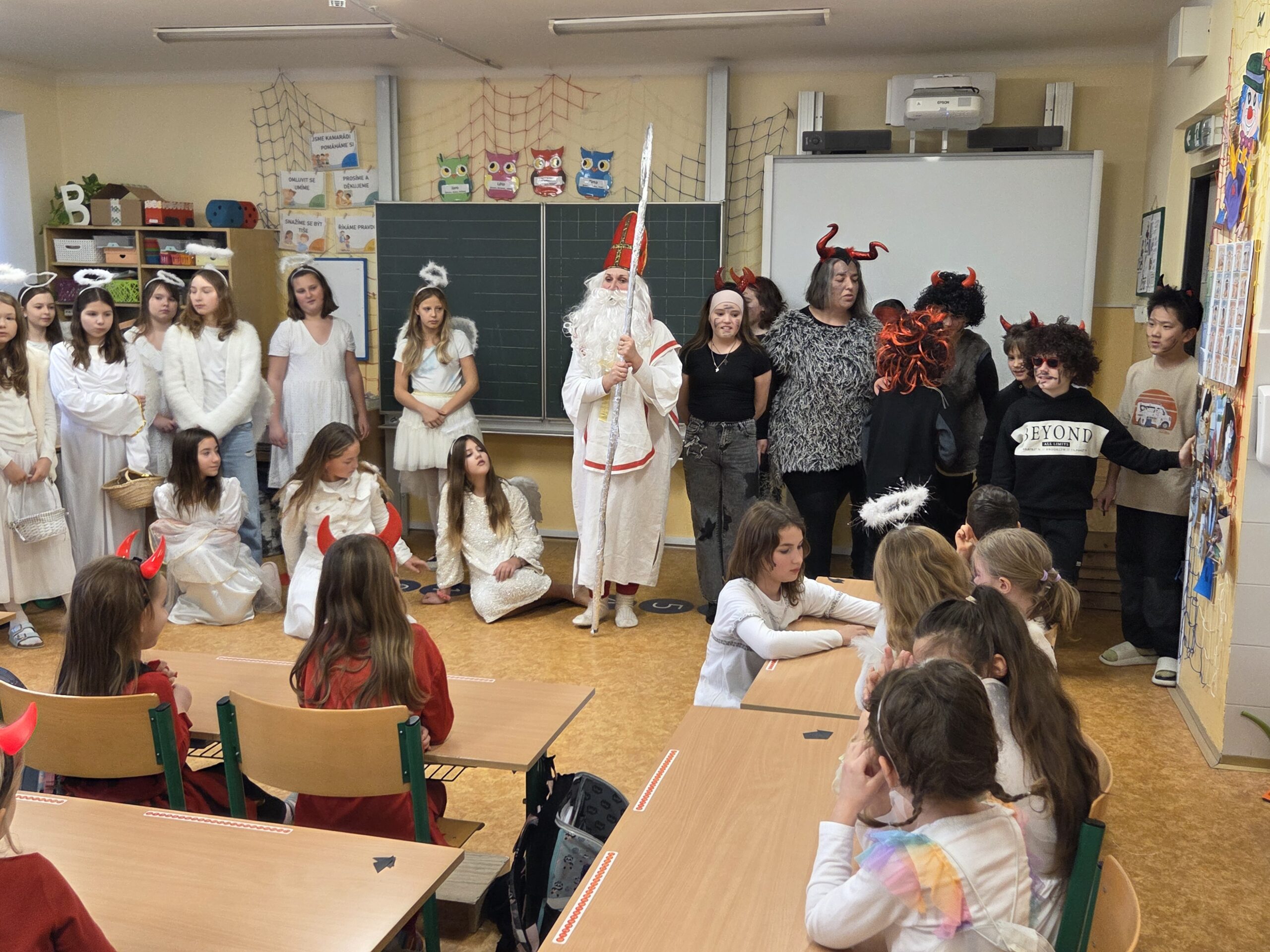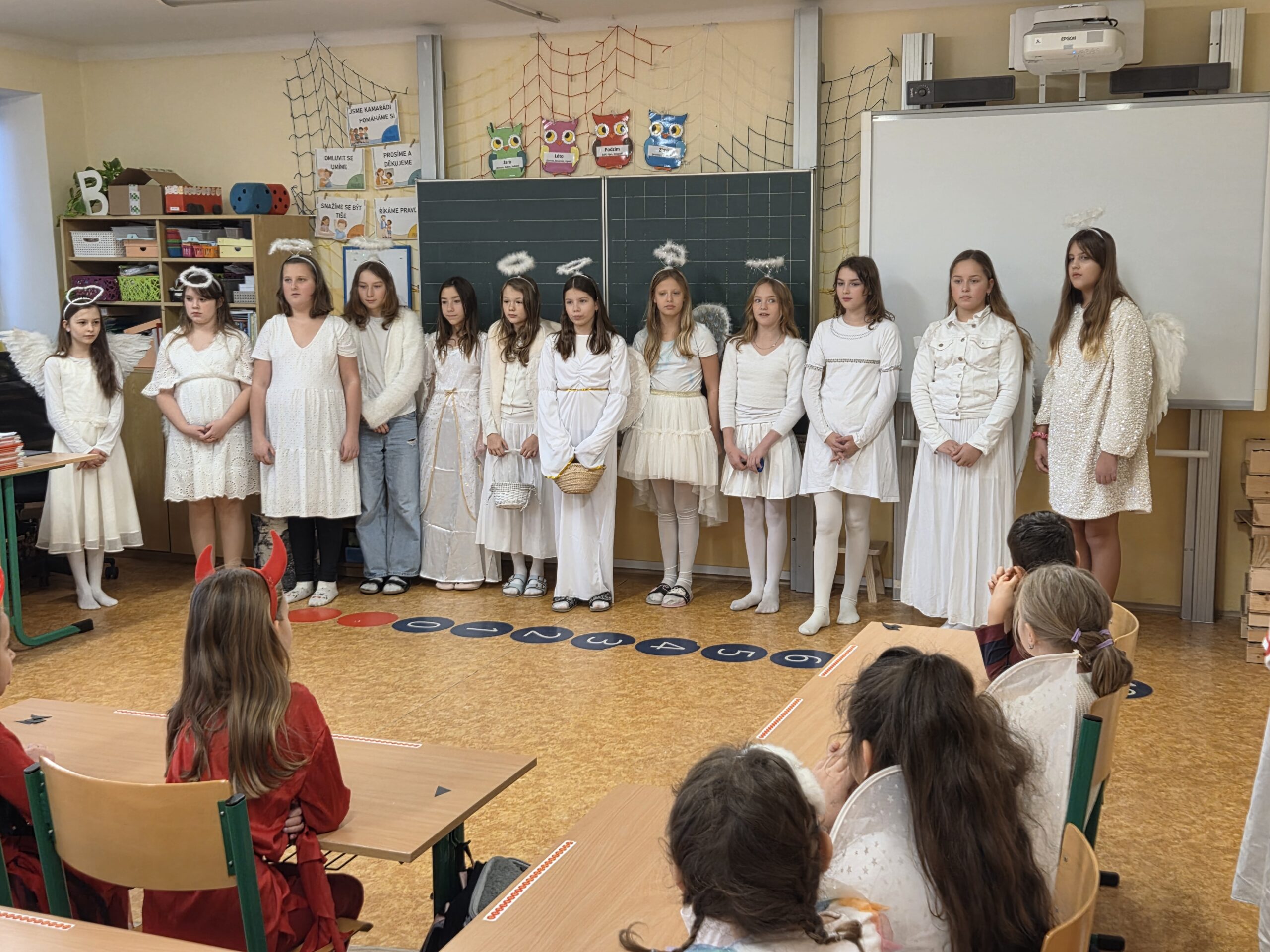 Návštěva byla milá, důstojná a vlídná. Přece jen ještě není daleko doba, kdy měli i páťáci z andělů, čertíků a Mikuláše ještě velký respekt.