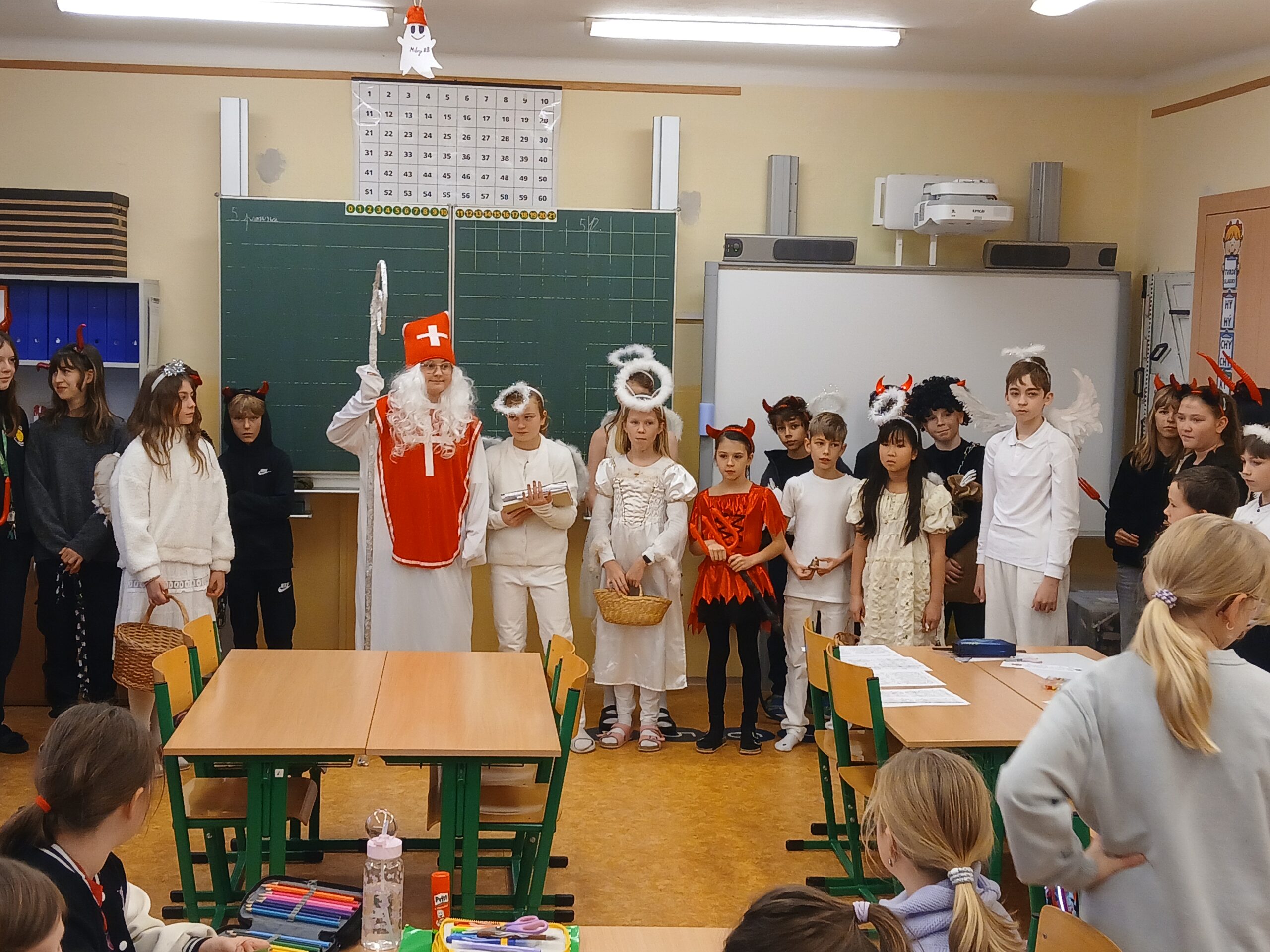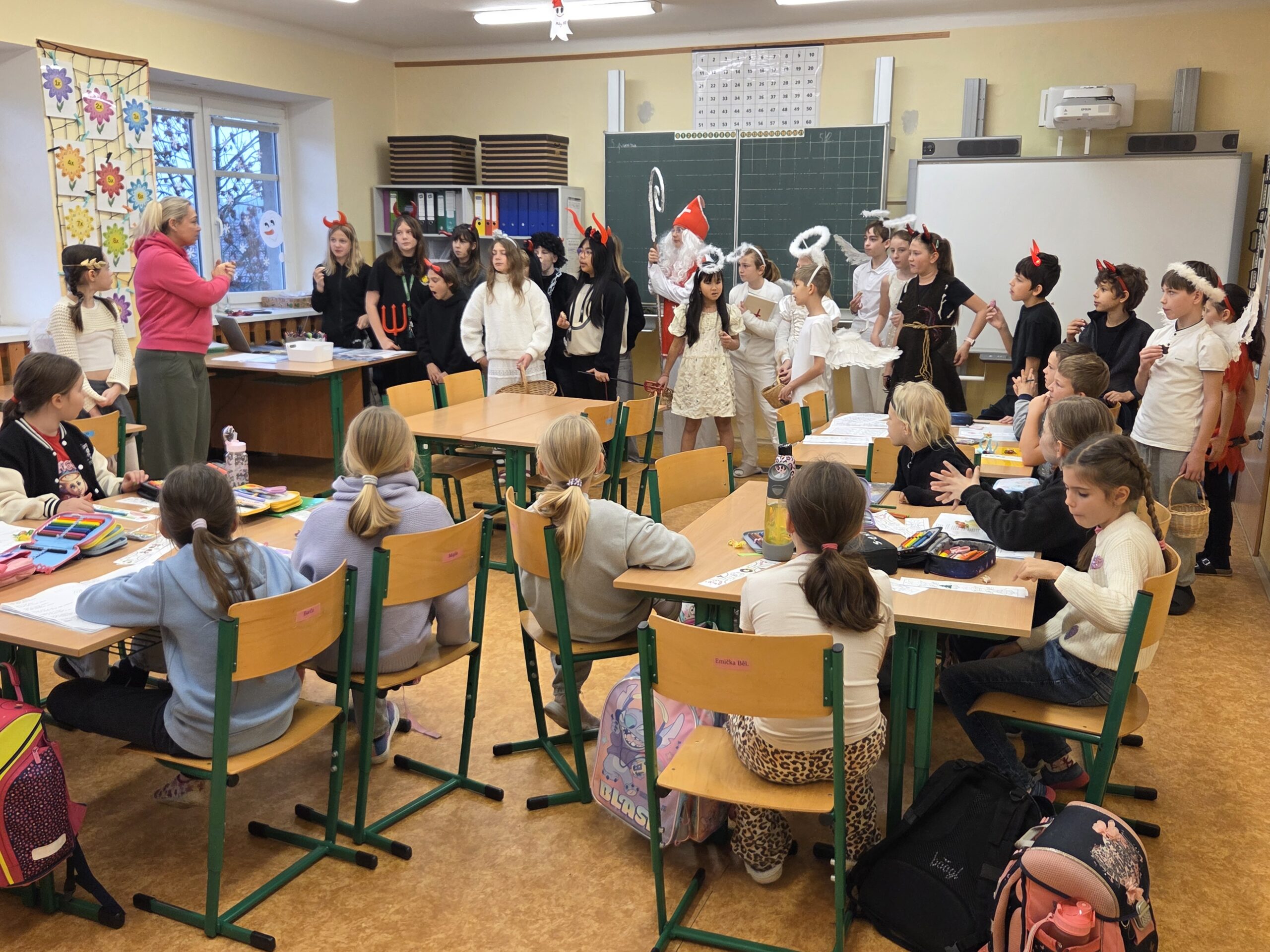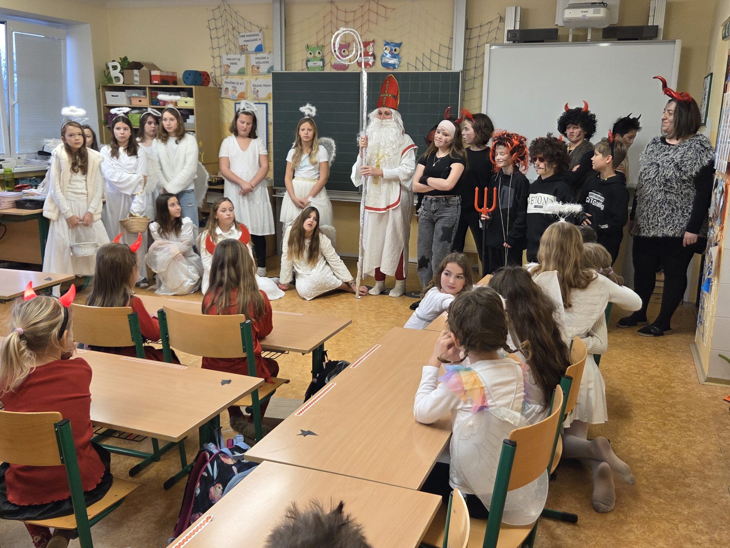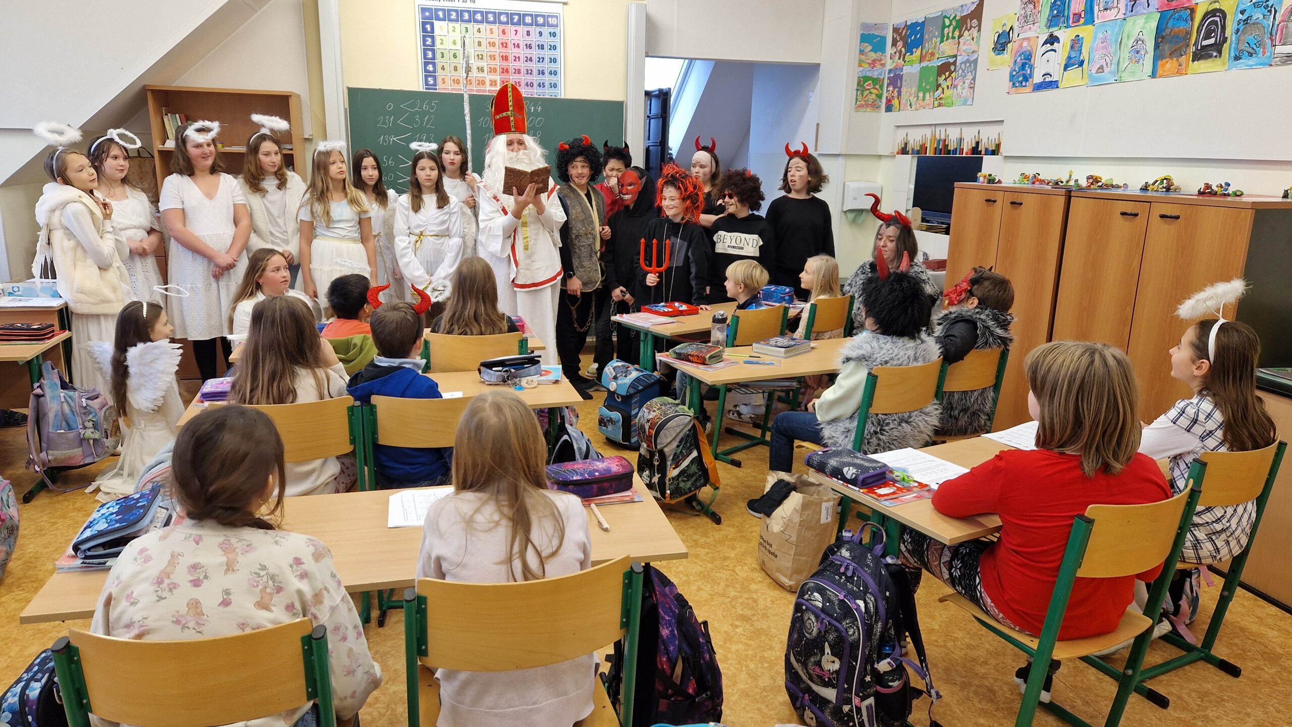 Návštěva byla milá, důstojná a vlídná. Přece jen ještě není daleko doba, kdy měli i páťáci z andělů, čertíků a Mikuláše ještě velký respekt.