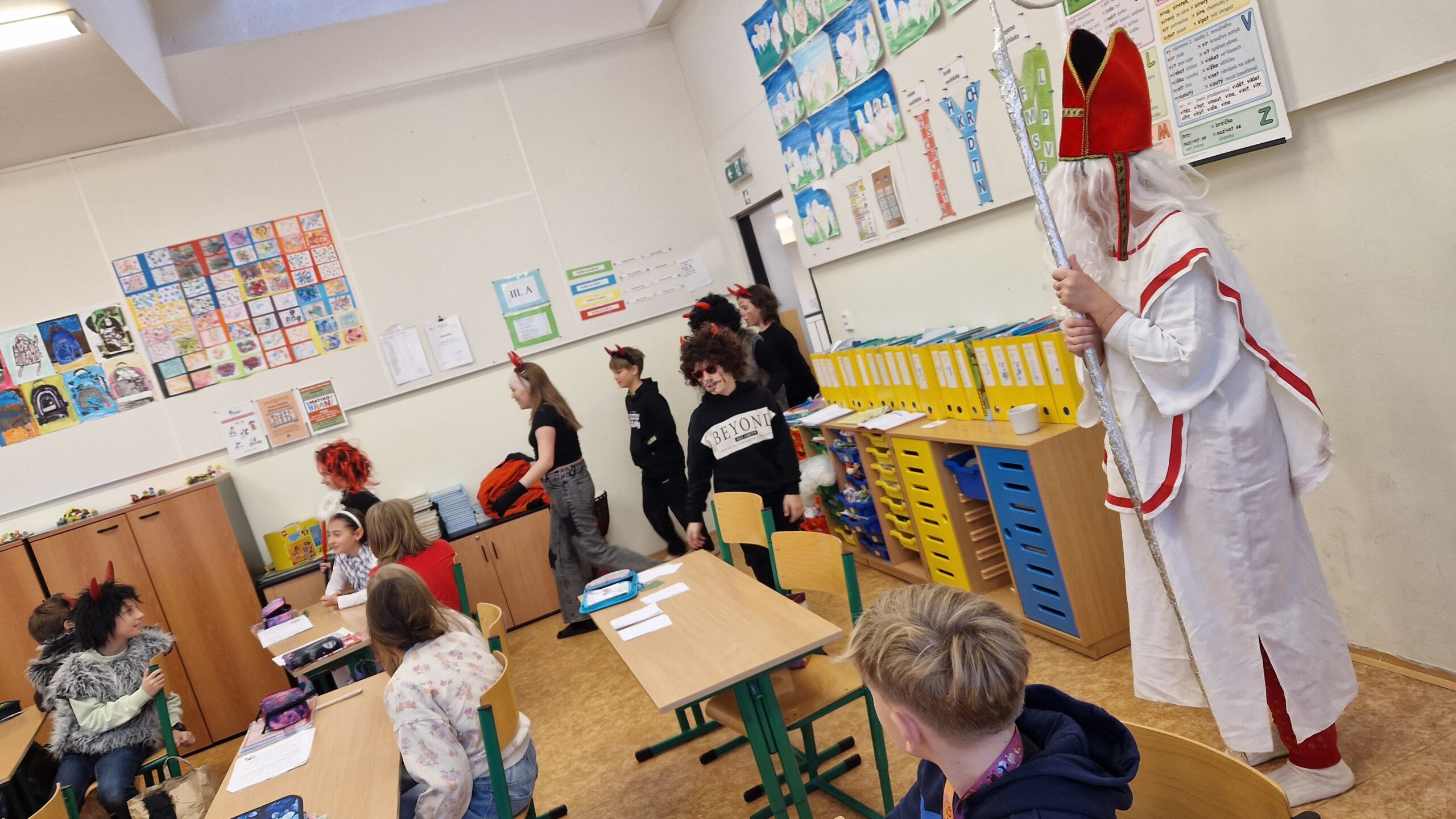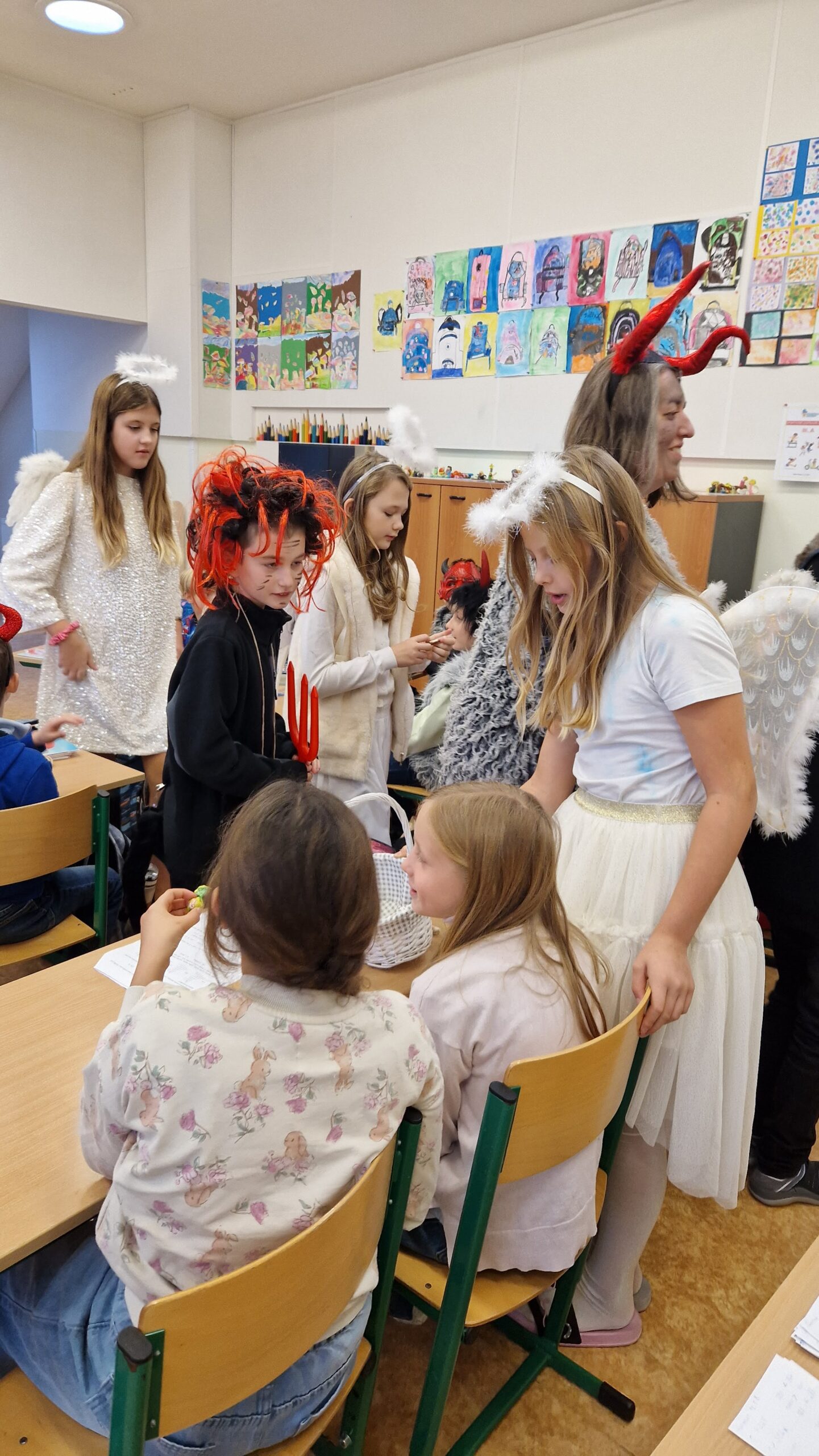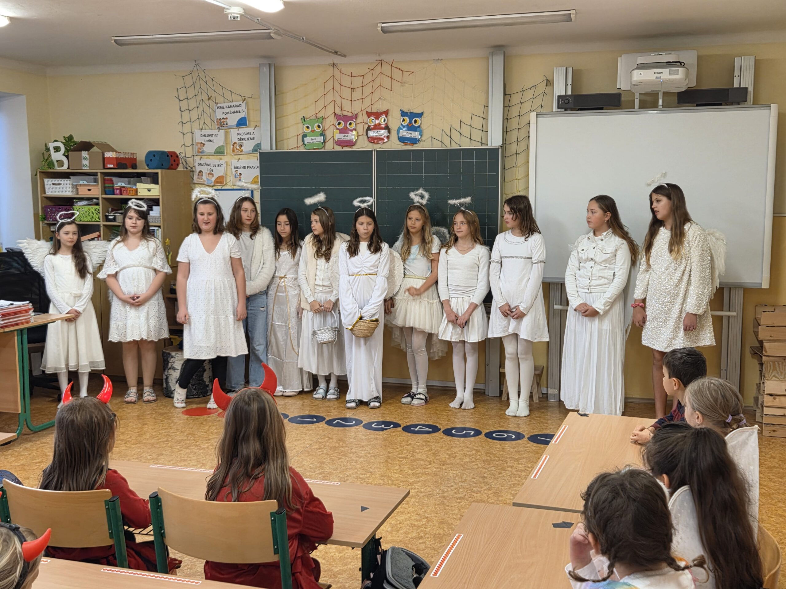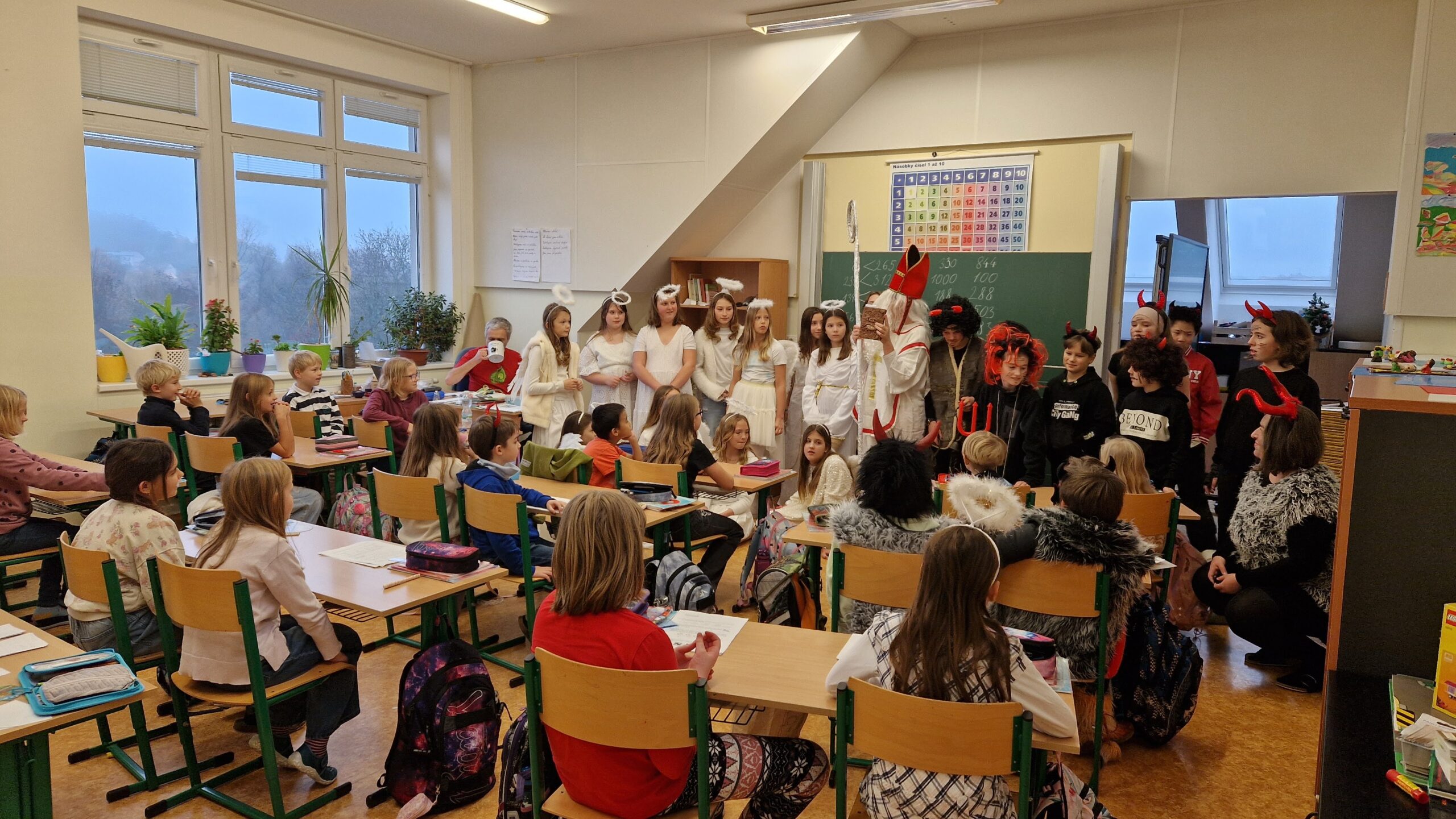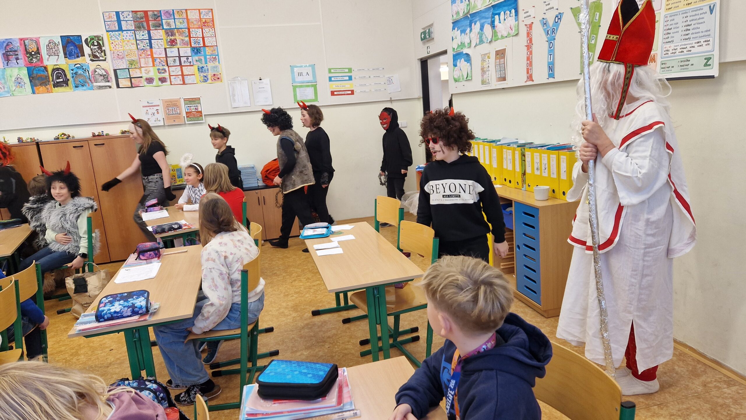 Návštěva byla milá, důstojná a vlídná. Přece jen ještě není daleko doba, kdy měli i páťáci z andělů, čertíků a Mikuláše ještě velký respekt.