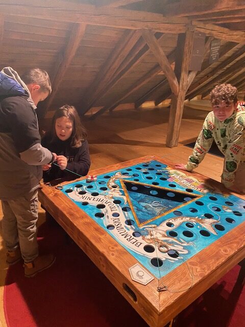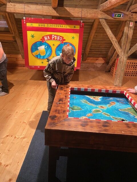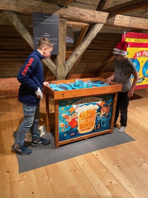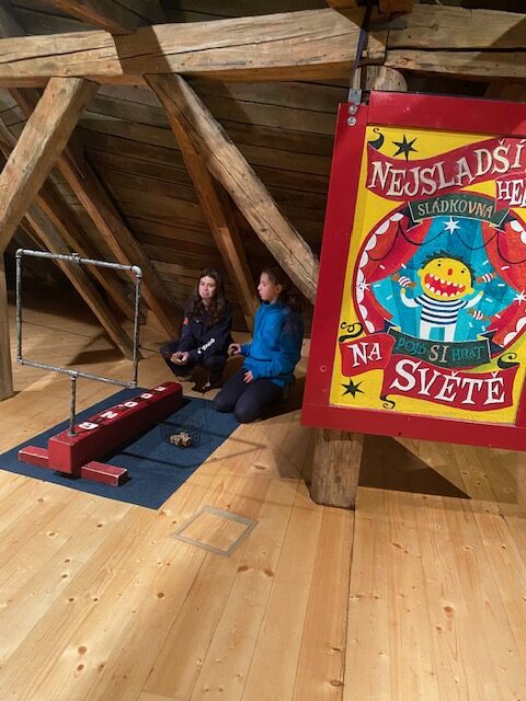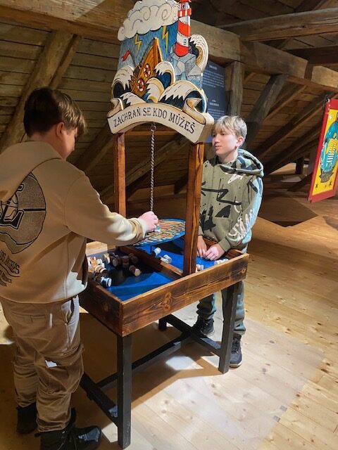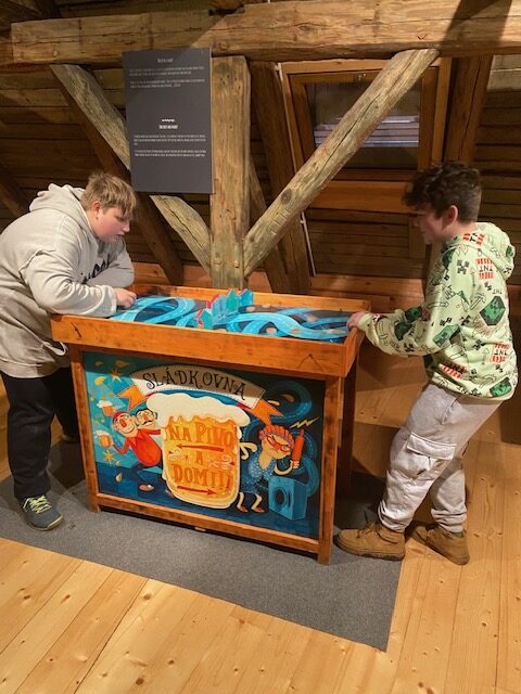 V předvánočním čase se žáci třídy VI. B vydali na společný výlet do Středočeského muzea v Roztokách u Prahy, kde navštívili interaktivní výstavu SLÁDKOVNA – Kočovná herna. Cílem výletu nebylo jen zpestření adventního období, ale také ukázat dětem, že zábava a hra mohou mít i jinou podobu než tu digitální na obrazovkách mobilních telefonů.
