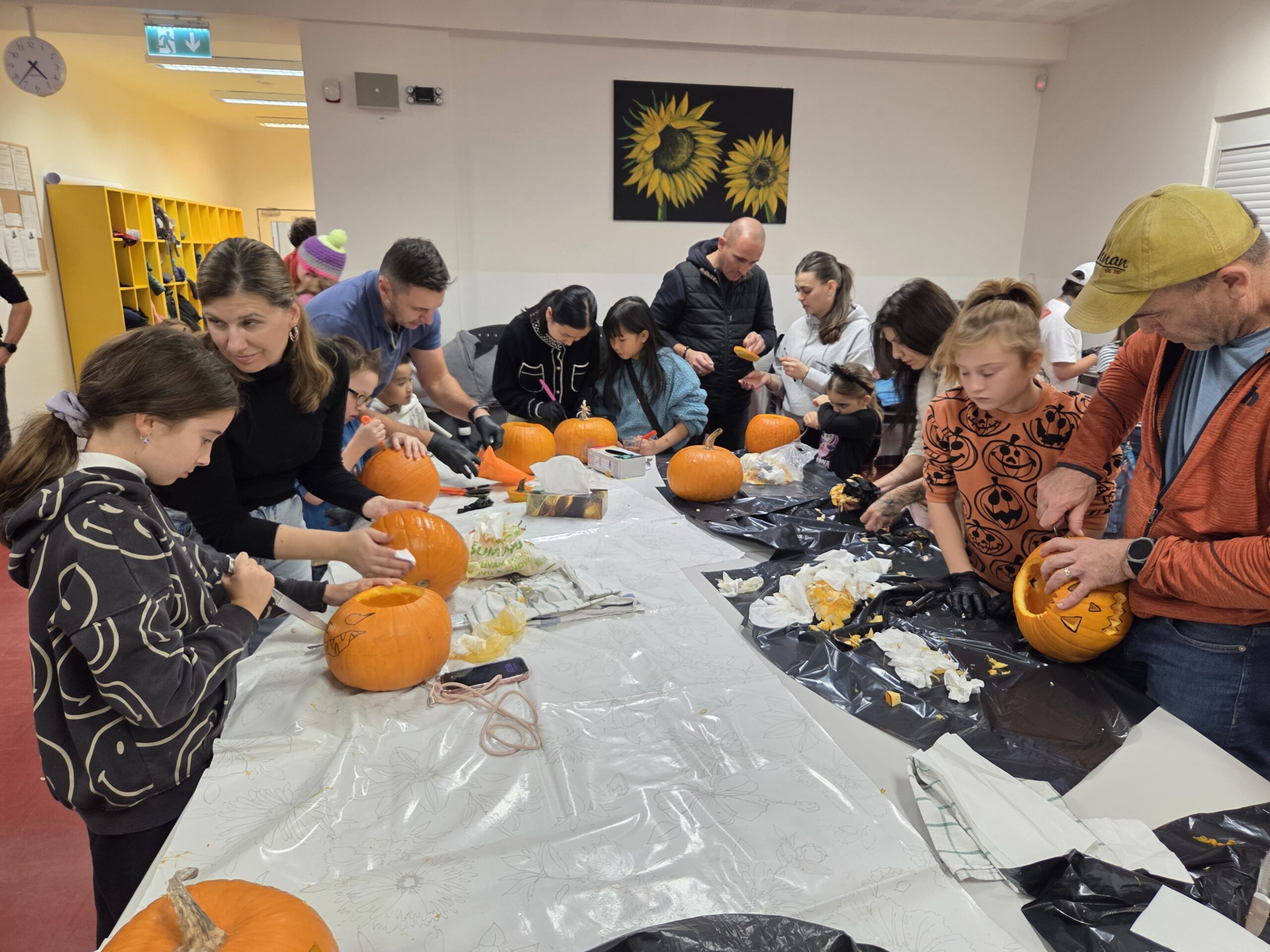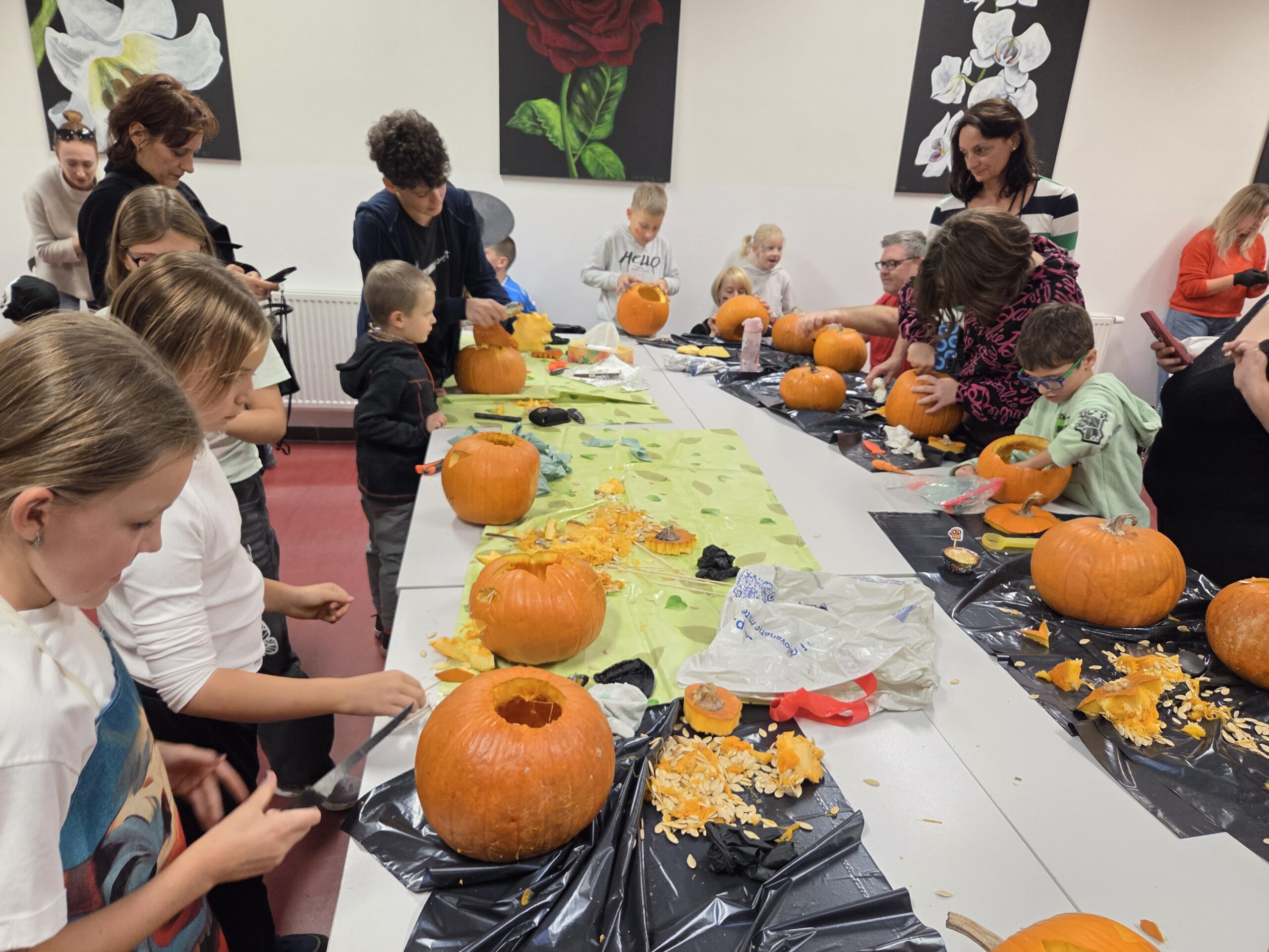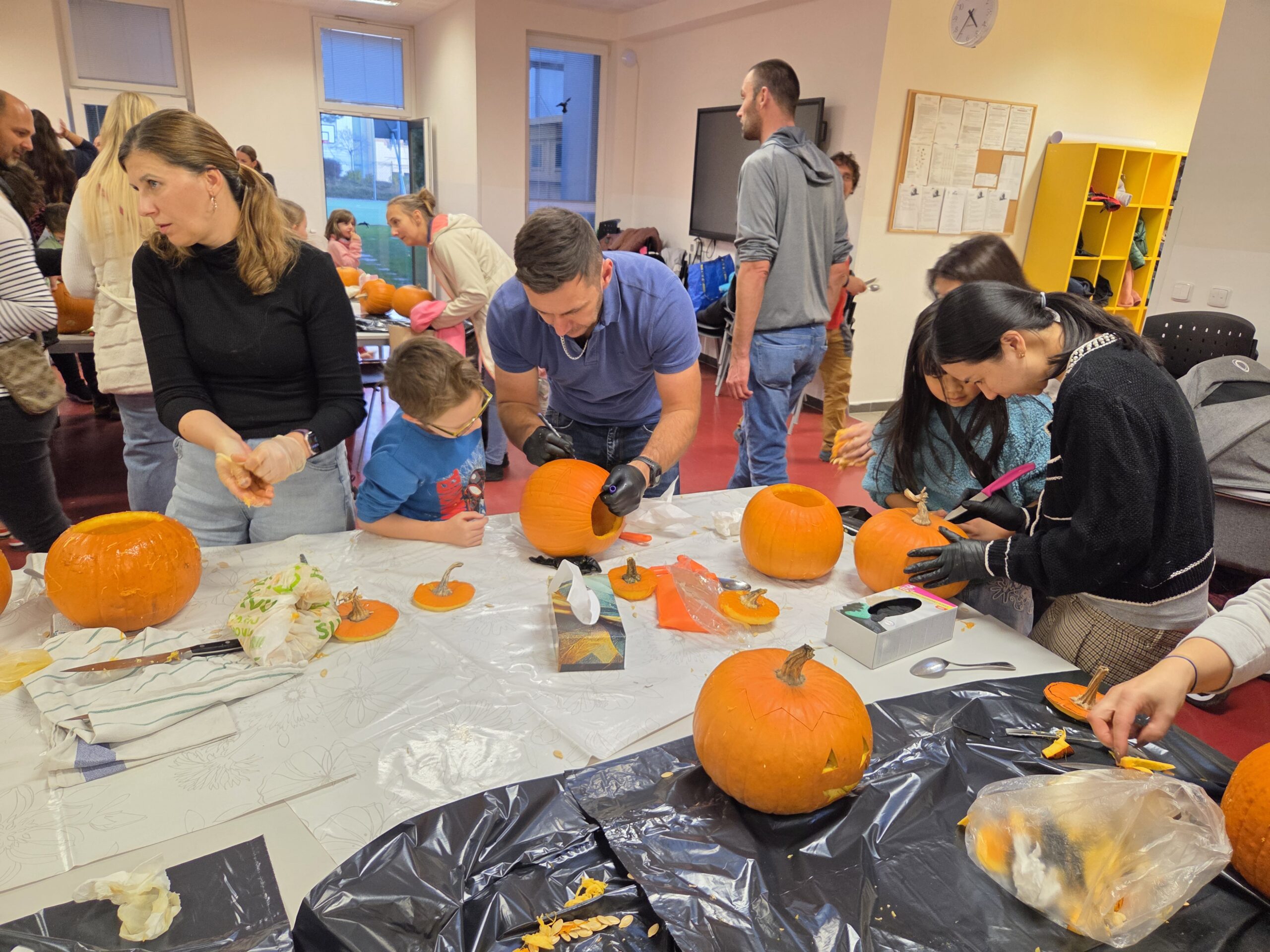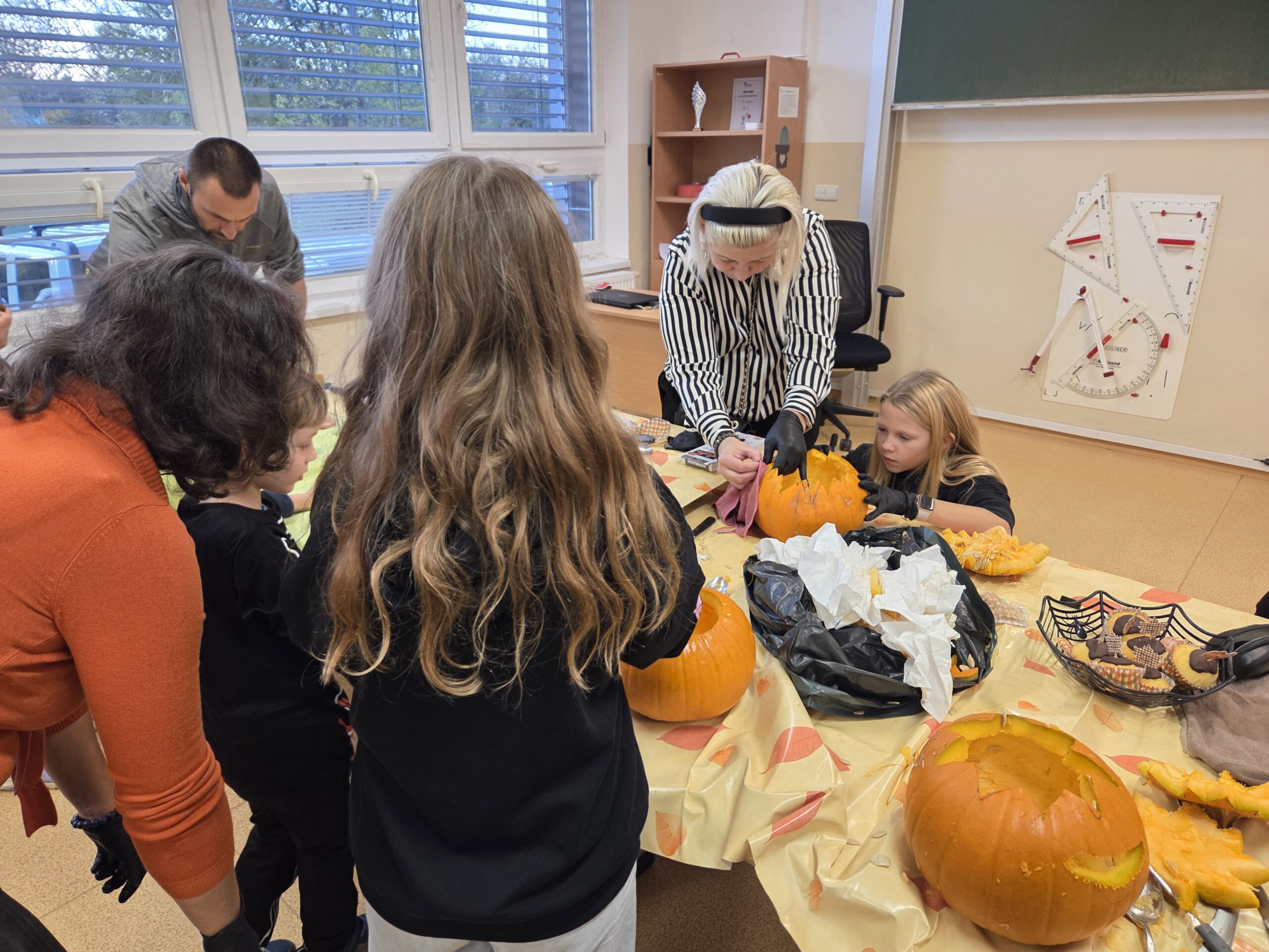 Hlavními aktéry byli samozřejmě žáci, především z 1. stupně, kteří s velkým nadšením přetvářeli dýně v originální a strašidelné lucerny. Bylo radost sledovat jejich kreativitu a soustředěnou práci. Akce se letos vyznačovala mimořádnou účastí celých rodin. Přišly maminky, tatínkové, sourozenci i prarodiče. Zaznamenali jsme, že se do samotného vyřezávání a dlabání dýní zapojilo neobvykle velké množství tatínků, kteří svým dětem obětavě pomáhali s náročnějšími částmi, a tím přispěli k hladkému průběhu akce.