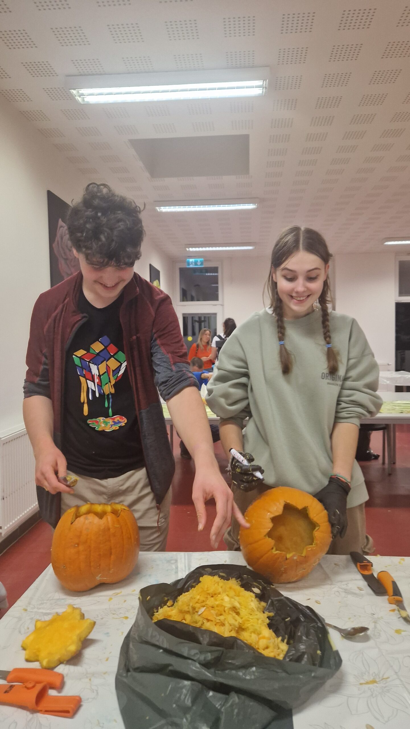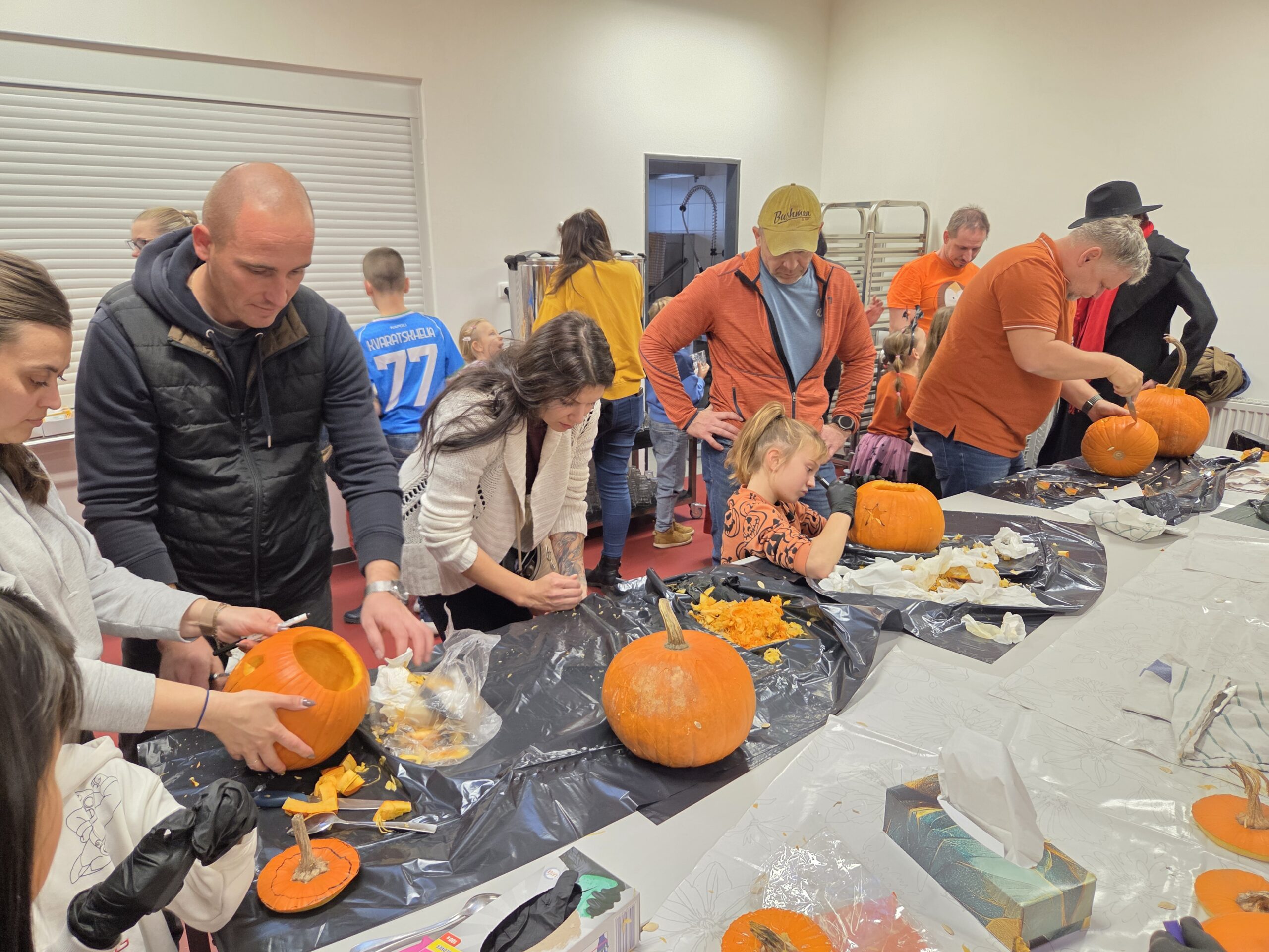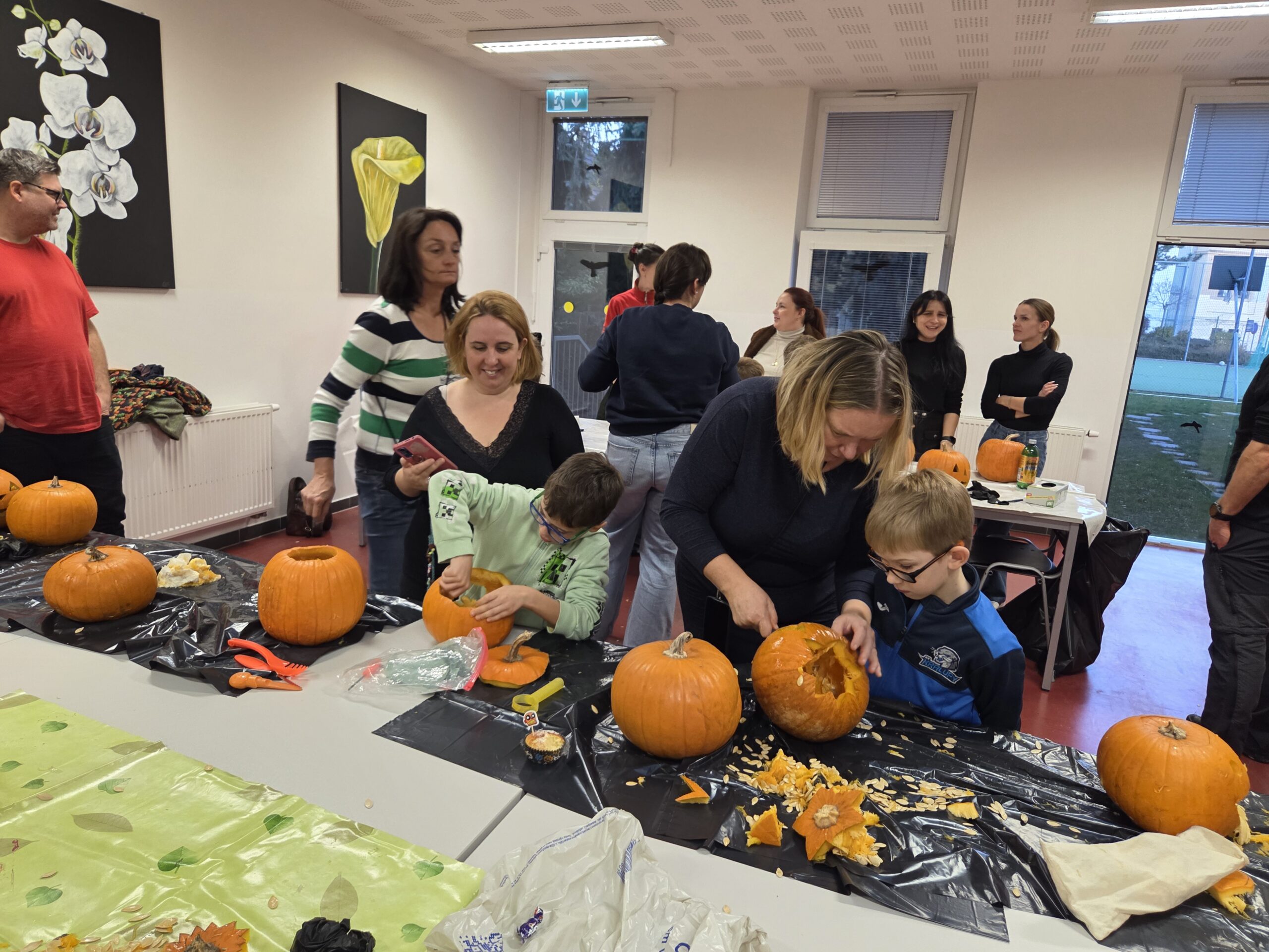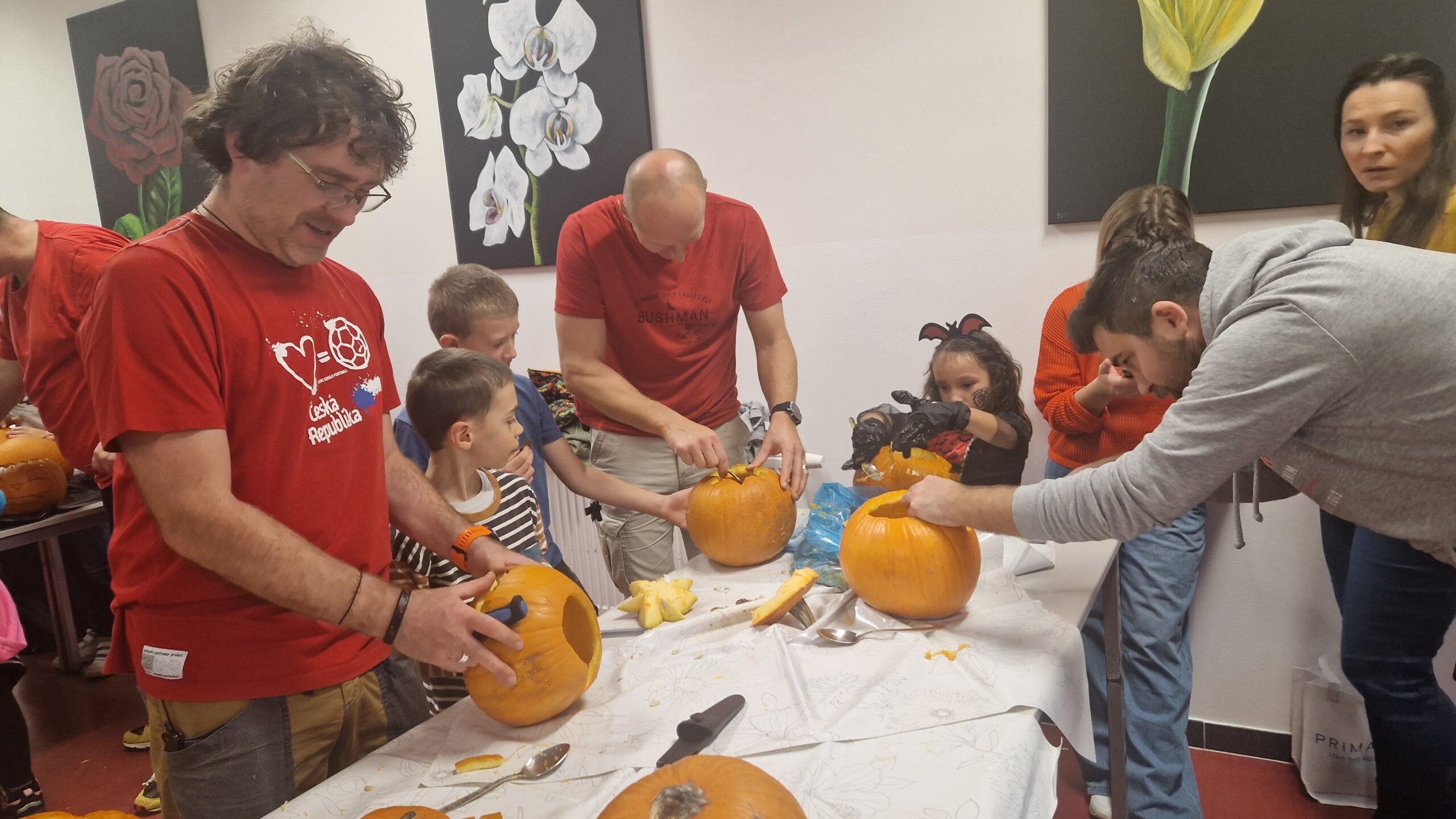 Hlavními aktéry byli samozřejmě žáci, především z 1. stupně, kteří s velkým nadšením přetvářeli dýně v originální a strašidelné lucerny. Bylo radost sledovat jejich kreativitu a soustředěnou práci. Akce se letos vyznačovala mimořádnou účastí celých rodin. Přišly maminky, tatínkové, sourozenci i prarodiče. Zaznamenali jsme, že se do samotného vyřezávání a dlabání dýní zapojilo neobvykle velké množství tatínků, kteří svým dětem obětavě pomáhali s náročnějšími částmi, a tím přispěli k hladkému průběhu akce.