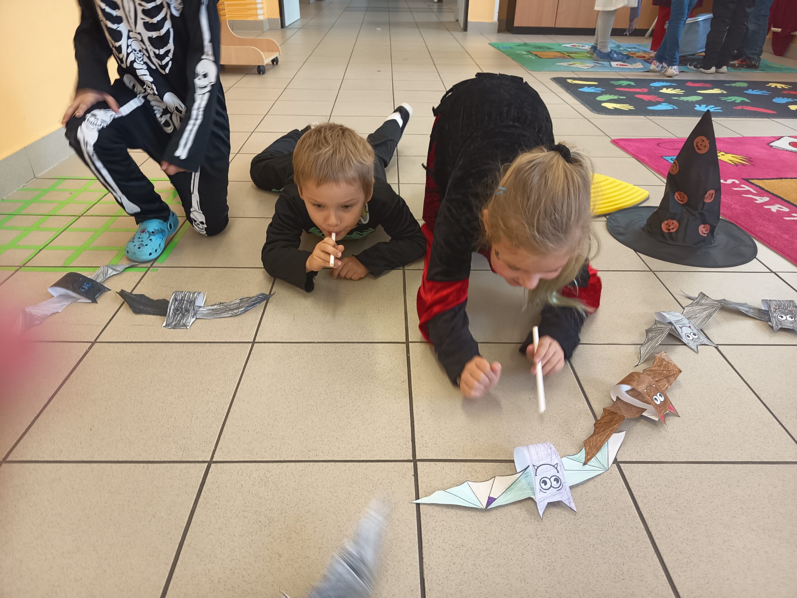 Děti musely ukázat své matematické dovednosti na stanovišti s počítáním, kde správně určovaly počty pavouků, duchů a dýní. Svou zdatnost projevily v netopýřím závodu, kdy musely foukáním přesunout papírové netopýry přes cílovou pásku. Aby si žáci procvičili i logické myšlení, pustili se do řešení jednoduchého sudoku s halloweenskými motivy. Další stanoviště zaměřené na postřeh je vyzvalo k tomu, aby správně poskládali logickou řadu obrázků. Zkouška hmatu a poznávání písmen pak proběhla u úkolu, kde v tajemném koši musely děti hmatem poznat a správně pojmenovat ukrytá písmena. Celá stezka tak zábavnou formou spojila halloweenské dobrodružství s učením.