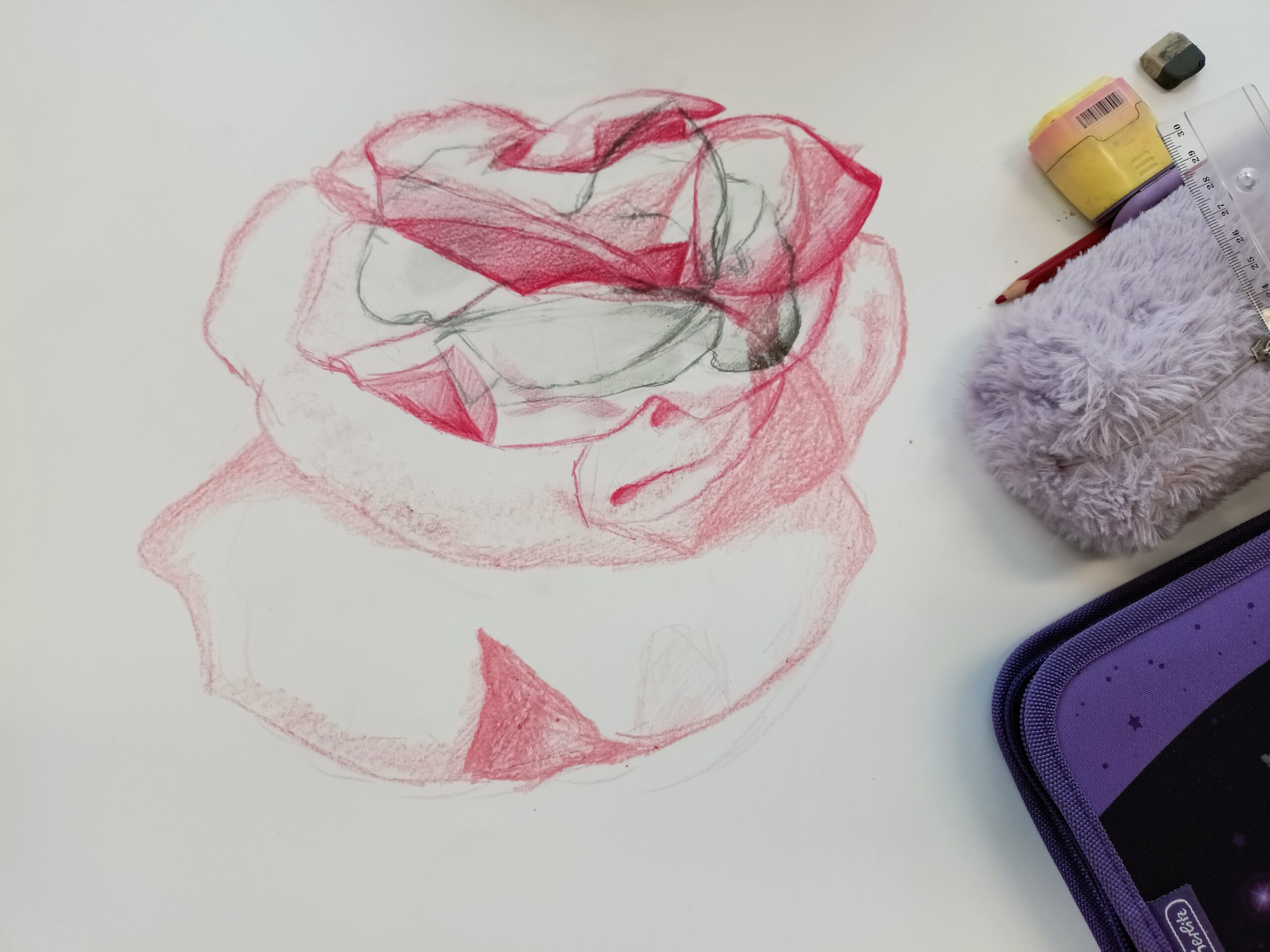 Výzva v podobě kresby a malby neidentifikovatelného předmětu se pro žáky 6. ročníku stala doslova výpravou za výtvarným poznáním široké škály pomůcek. Pozorování tvaru, který se neustále měnil, udržovalo naši bedlivou pozornost při tvorbě. Na základě znalosti o tom, kde a jak můžeme růst-narůstání-zvětšování pozorovat i v realitě, jsme zadaný úkol všichni krásně pochopili a uchopili. To jaký byl vývoj naší práce a konečné provedení si můžete prohlédnout v galerii.