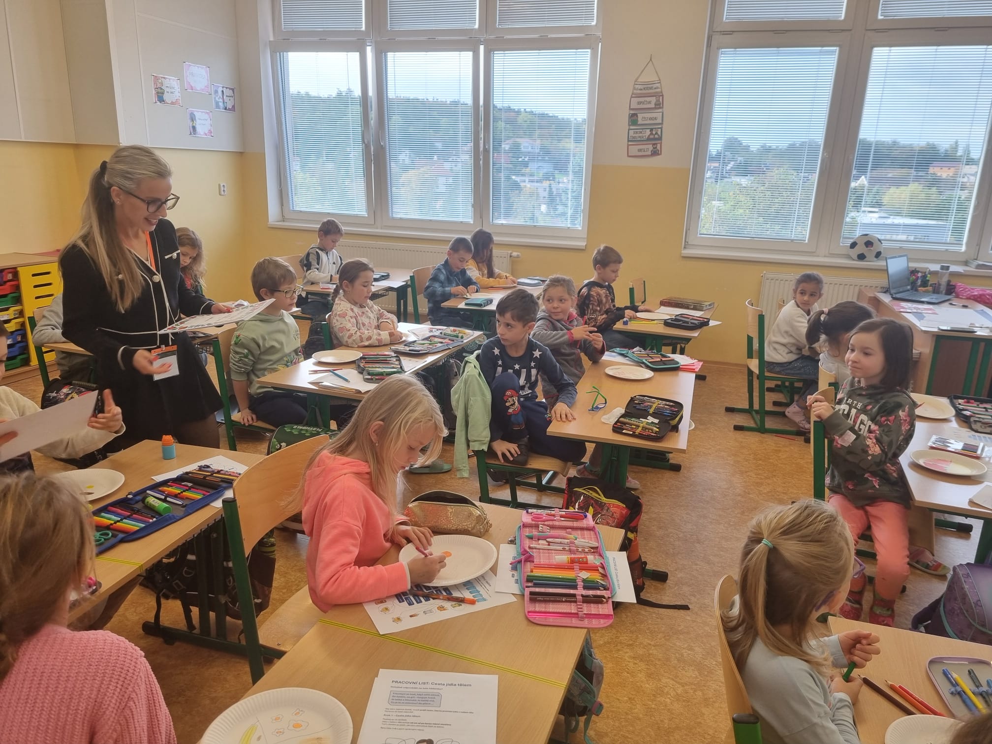 S velkou radostí se nám podařilo navázat spolupráci s katedrou výživy na České zemědělské univerzitě, a tak jsme u nás přivítali doktorandky, které se ve čtyřech dnech v druhé polovině října věnovaly žákům prvního stupně. Připravily si pro ně workshopy na téma zdravého stravování. Děti obdržely absolventský certifikát. Spolupráce s dětmi studentky velmi těšila, a tak se nabídly uspořádat workshopy i pro ostatní ročníky, pokračovat bychom měli v únoru 2026. Domlouváme i besedu pro rodiče.