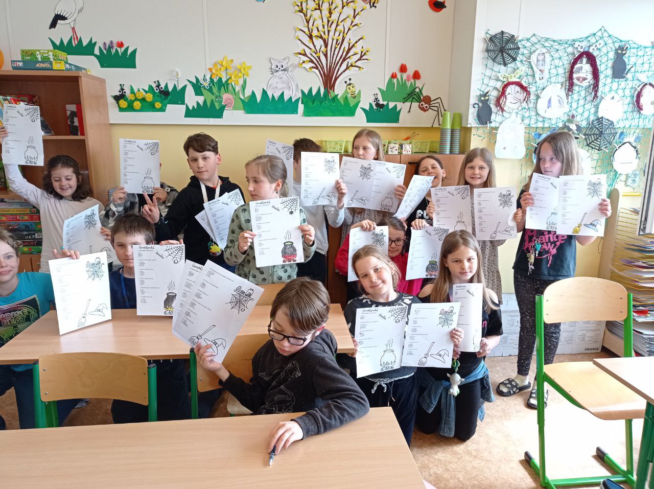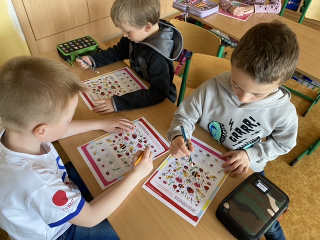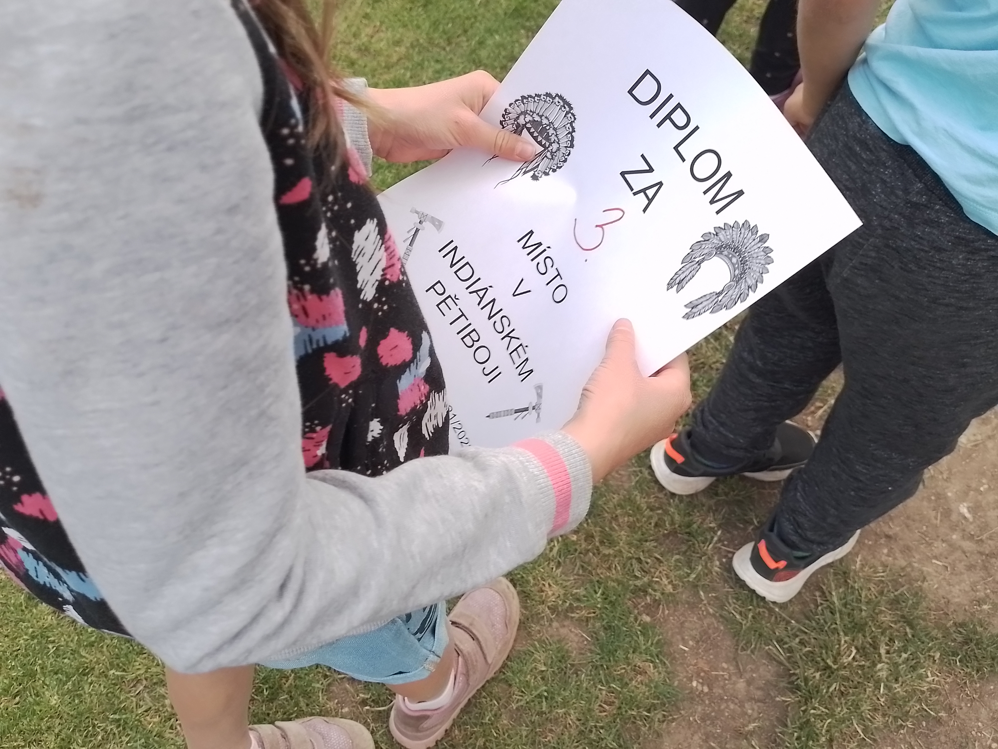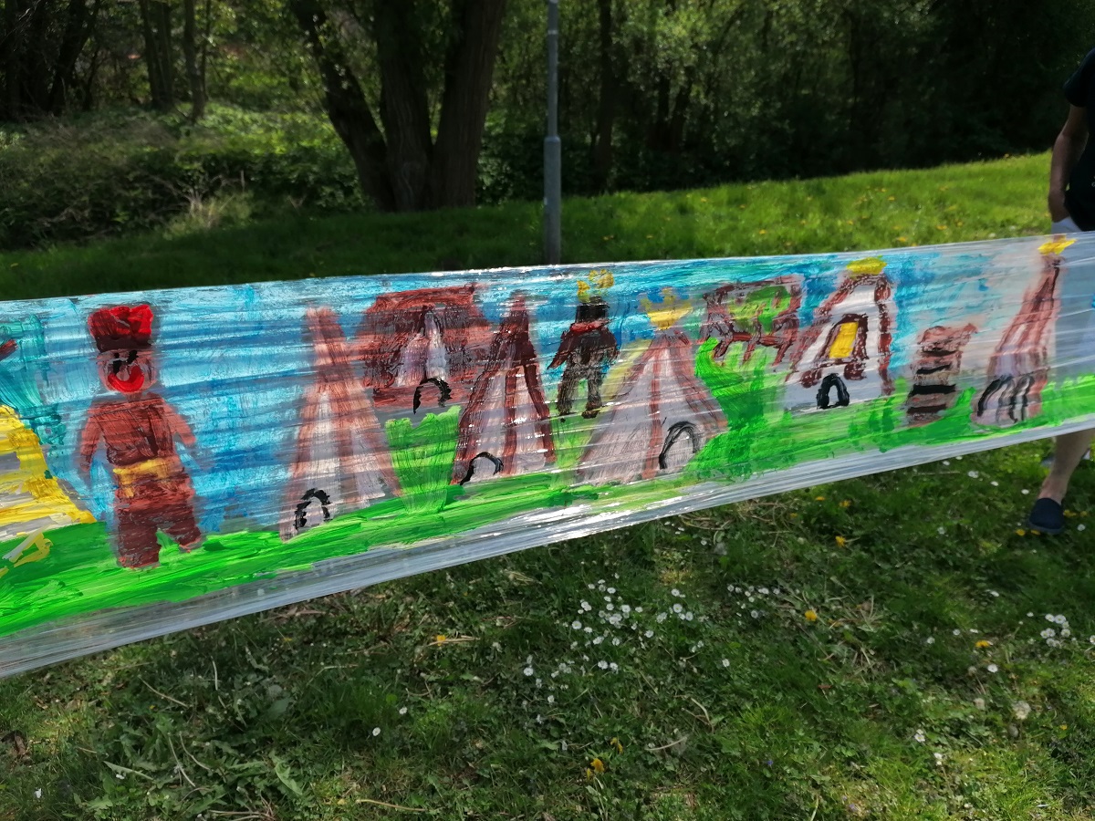 Květen je pro nás indiánský měsíc – vyprávěli jsme si o Indiánech, tvořili spolu indiánské písmo, každý si podle svých vlastností zkusil vymyslet indiánské jméno – takže tu máme např. Bystrého kapra, Normální kuře, Rychlého králíka apod.