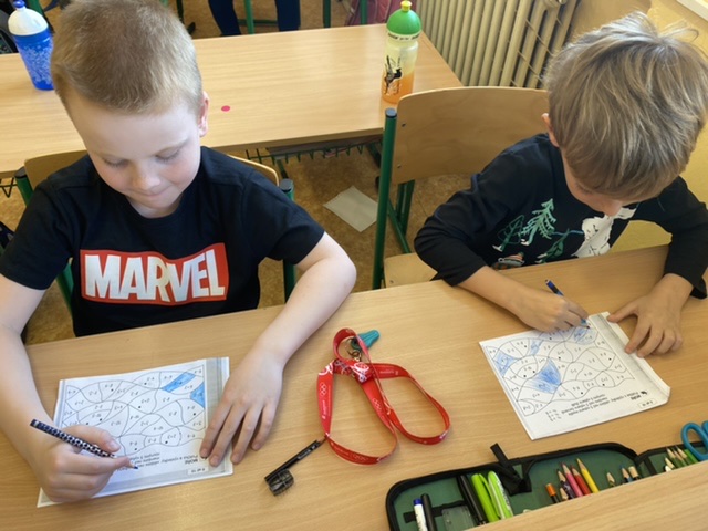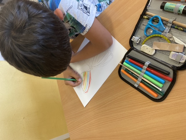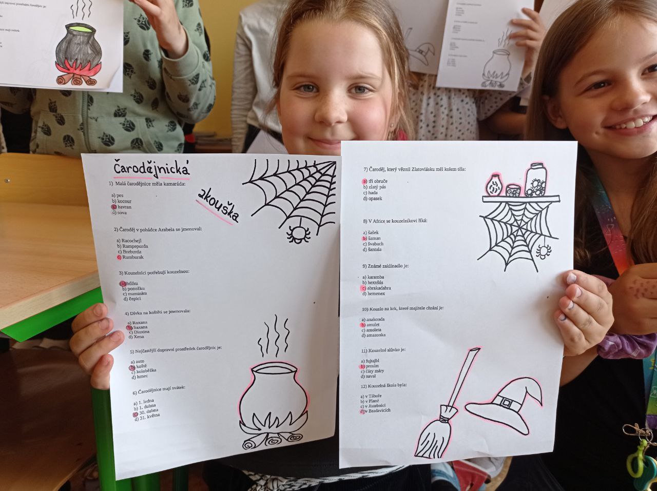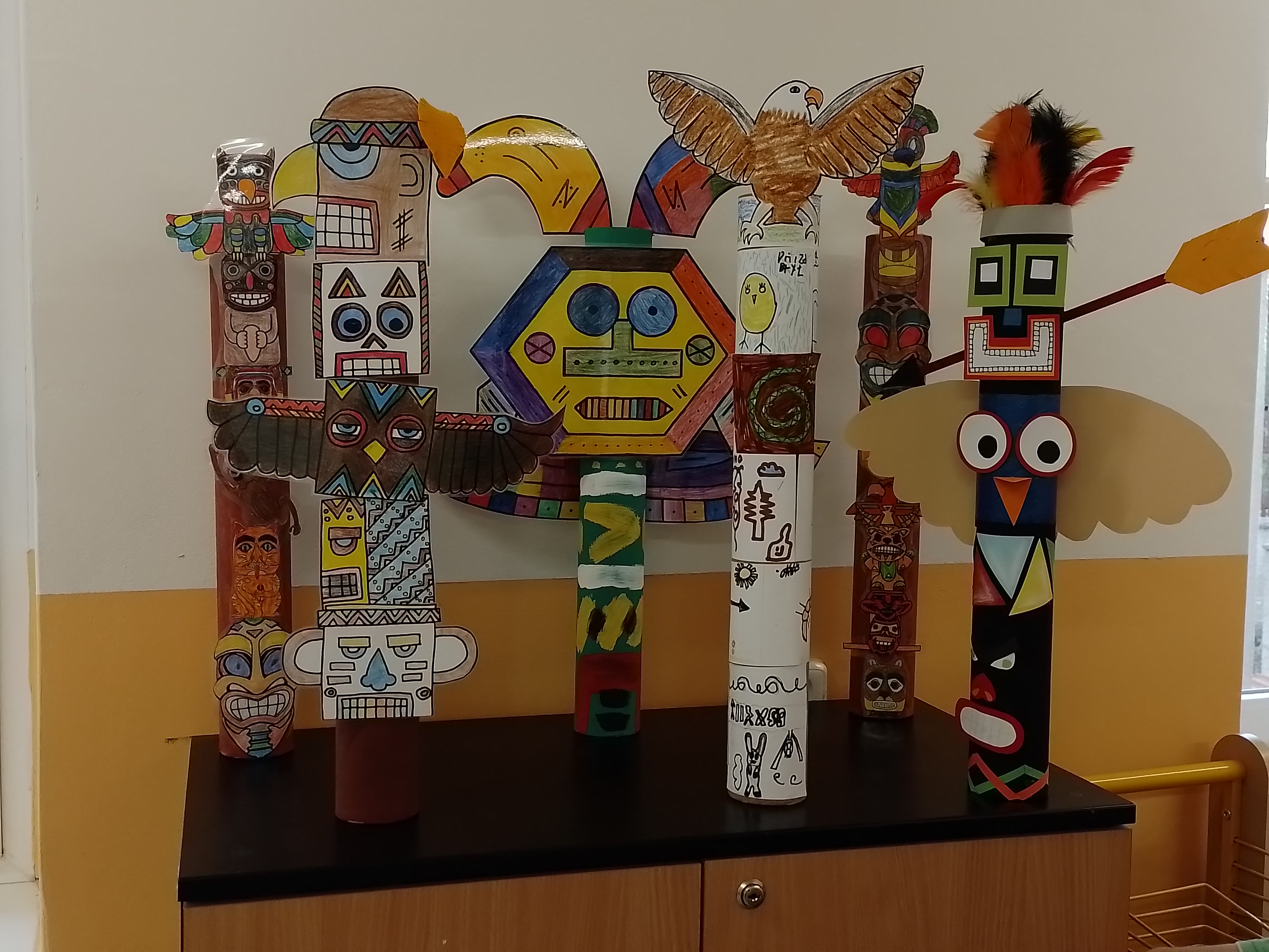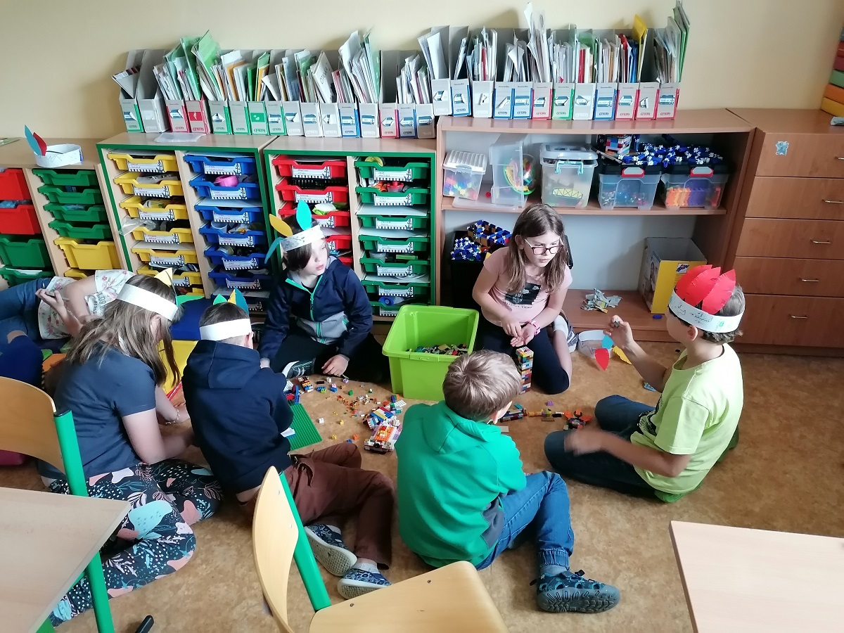 Pro náš „Kmen bystrých orlů“ jsme vytvořili vlastní totem, šifrovali si navzájem úkoly naším písmem, vyráběli krásné čelenky a zdobili je různobarevným peřím, kde každá barva znamená nějakou specifickou vlastnost – každý podle toho, jak sám sebe vnímá. Měsíc zakončíme indiánským pětibojem.