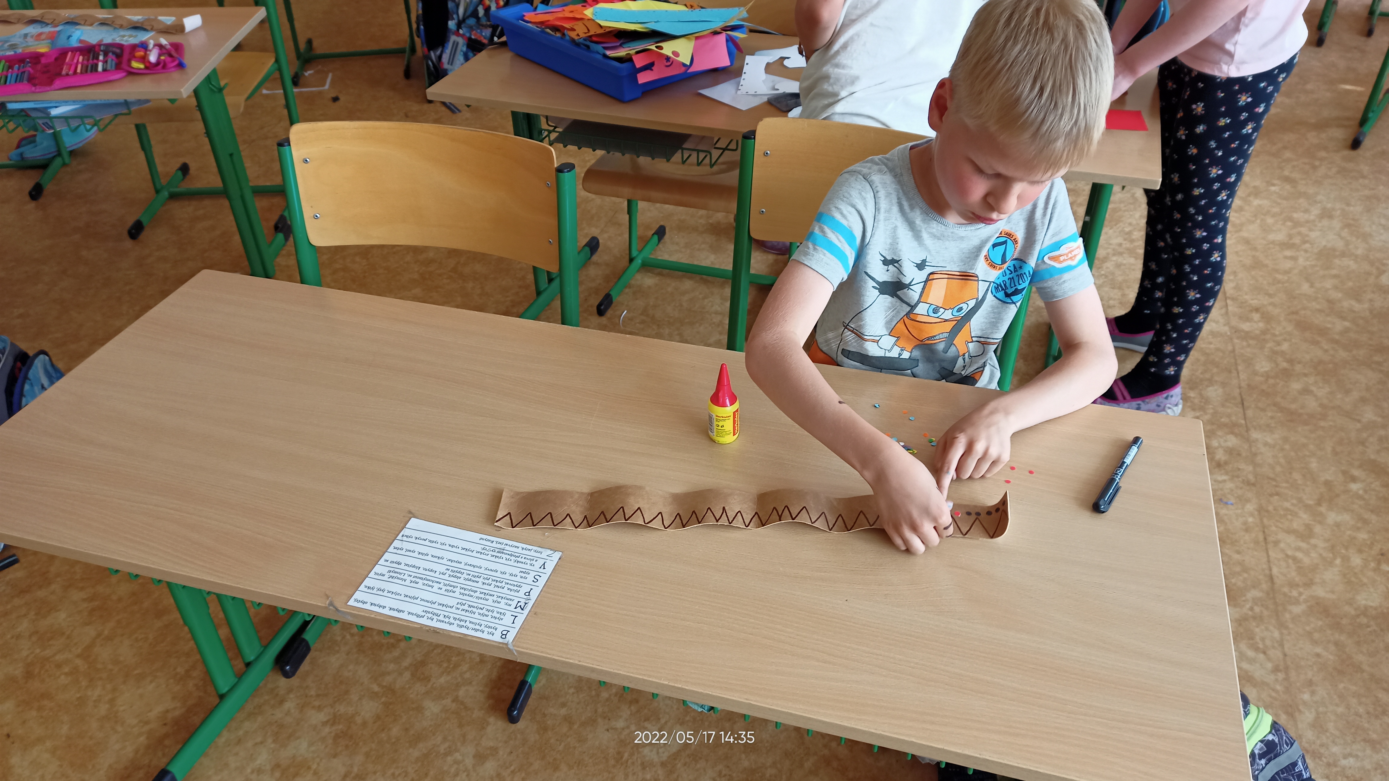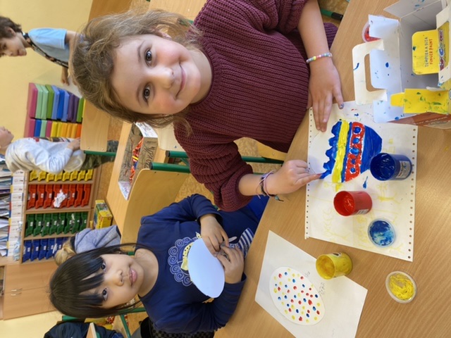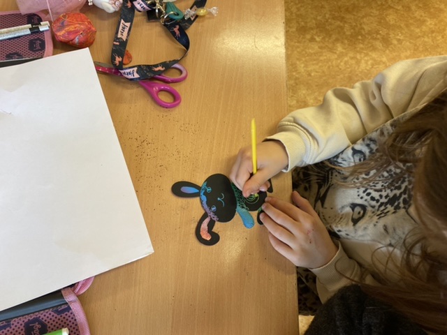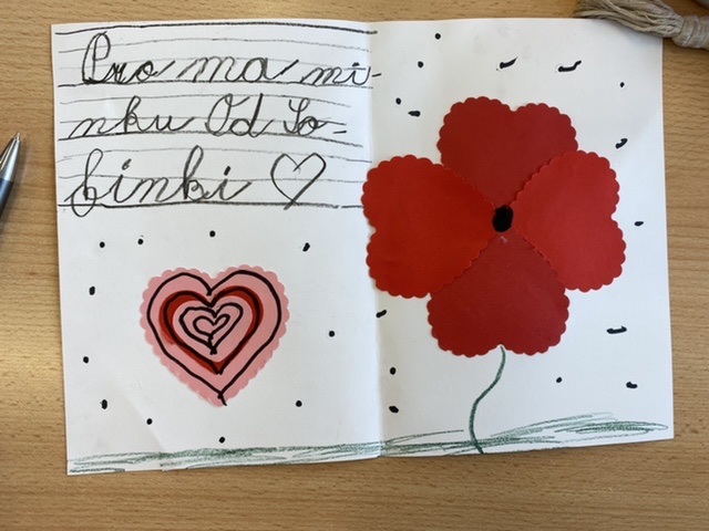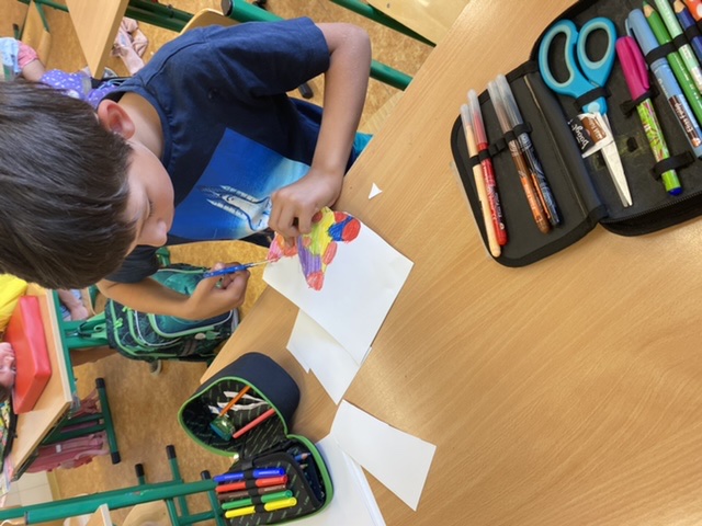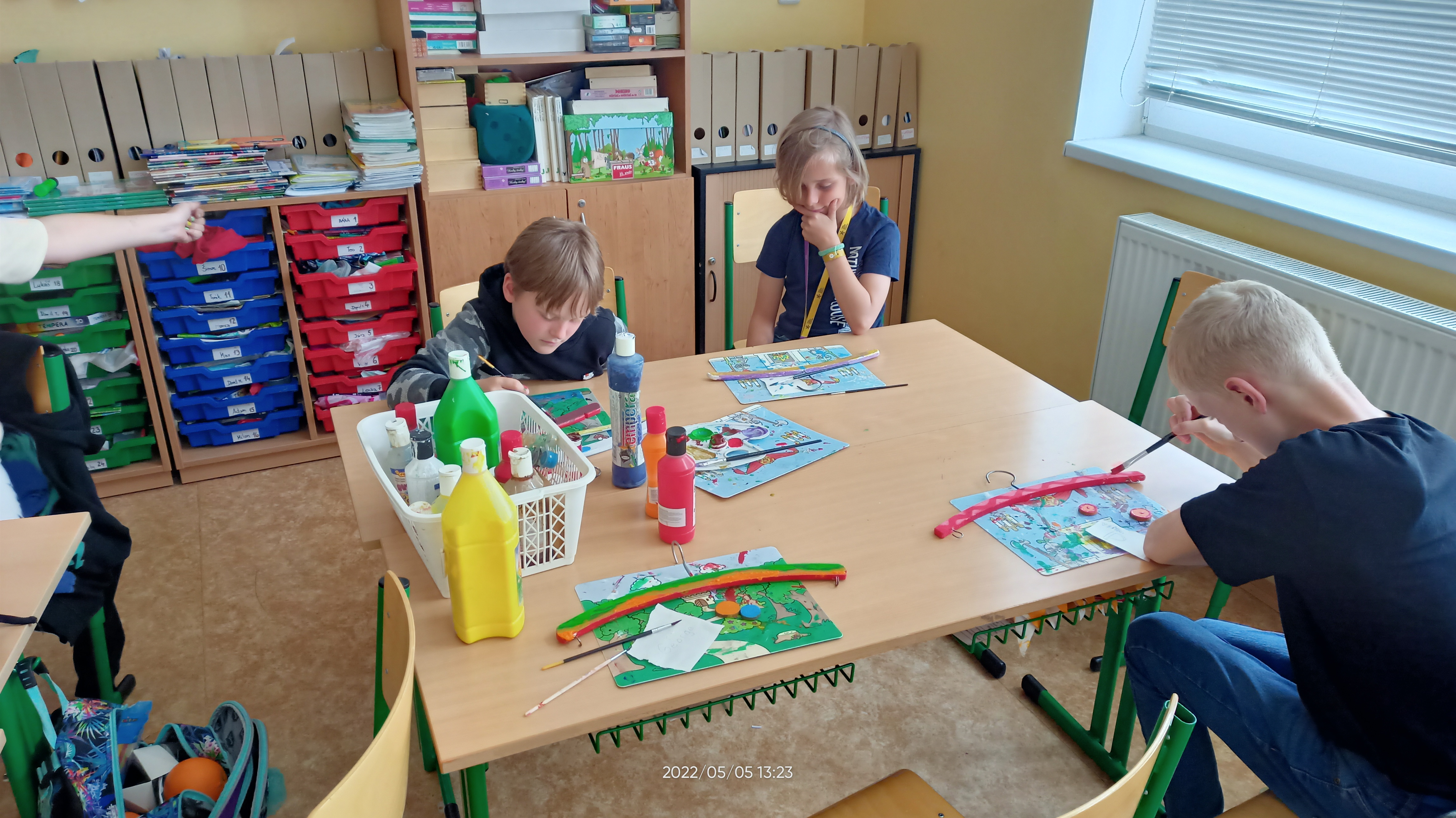 Když nám počasí nepřeje, také trochu vyrábíme – třeba maminkám přáníčko. Pokusili jsme se také dát starým dřevěným ramínkům na oblečení druhou šanci – každý ho pomaloval a přizdobil podle svého vkusu.