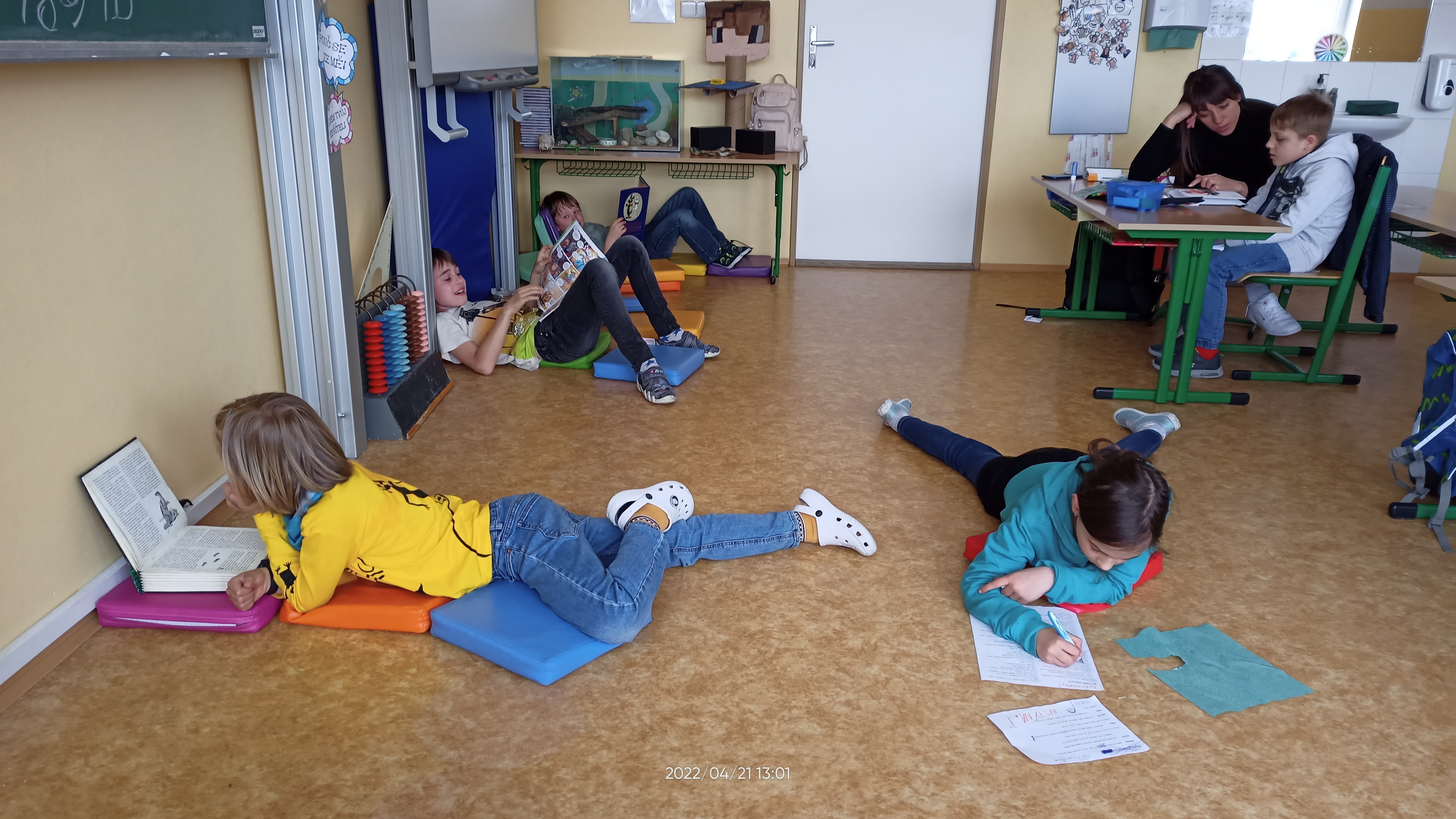 Jeden den v týdnu jsme zavedli čtenářskou chvilku – kdo chtěl, přinesl si svou knihu, udělal si pohodlí a v klidovém čase po obědě si četl.