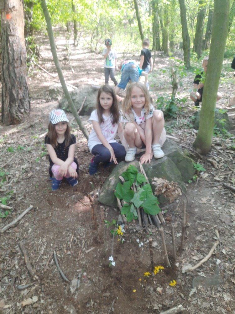 Slunečné jaro si v družině užíváme hlavně na procházkách a průzkumech v okolí. Tam se dá dělat věcí! Šplhat na vyhlídku, stavět si lesní obydlí, hrát oblíbenou „bombu“, hraničáře, pohrát si s malými králíčky – to byl hit letošního jara 🙂