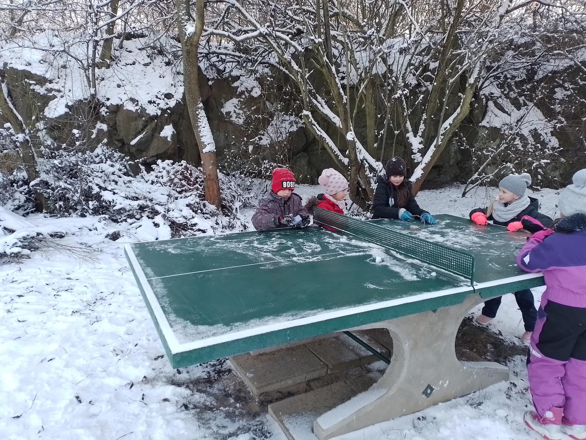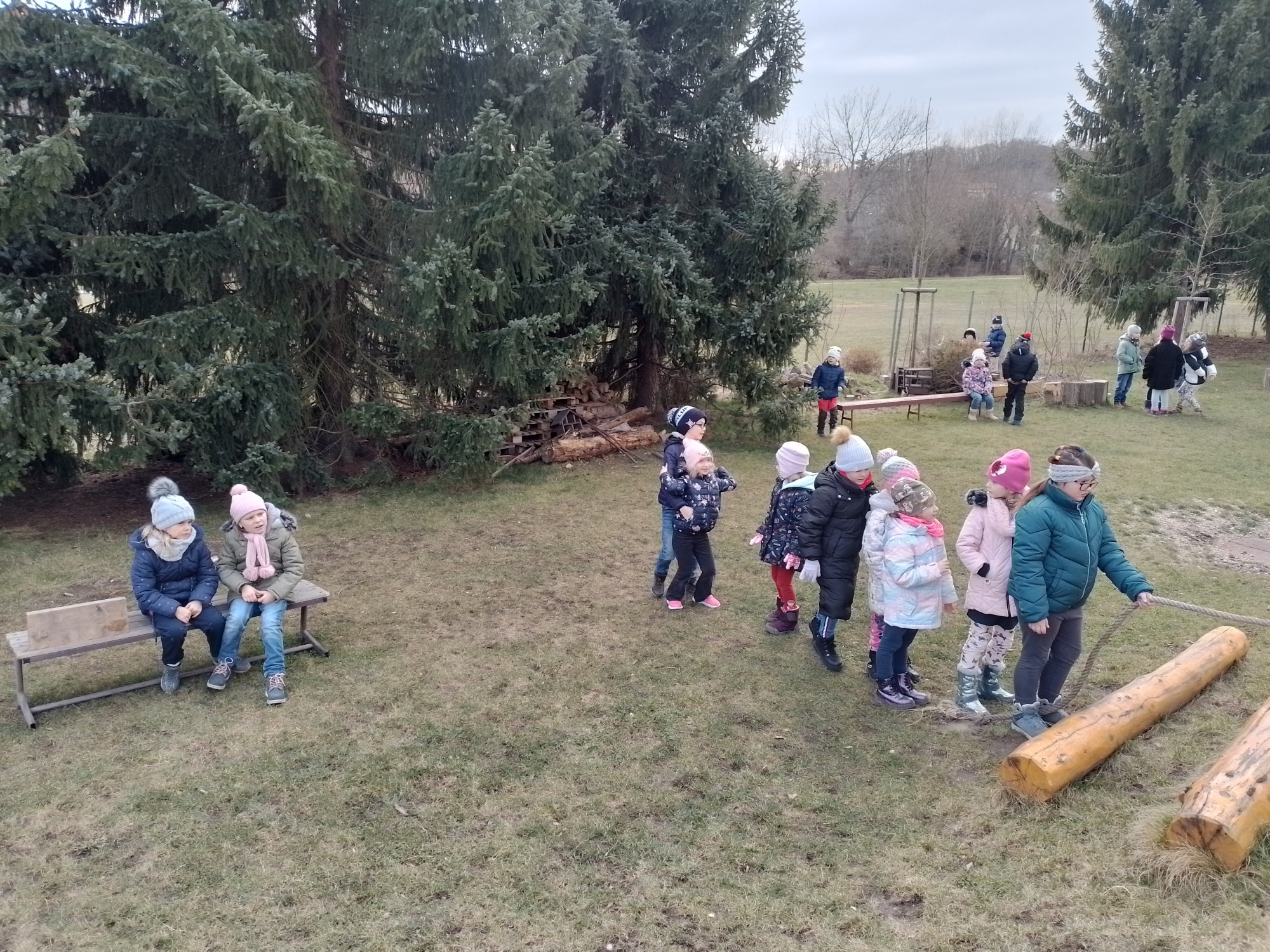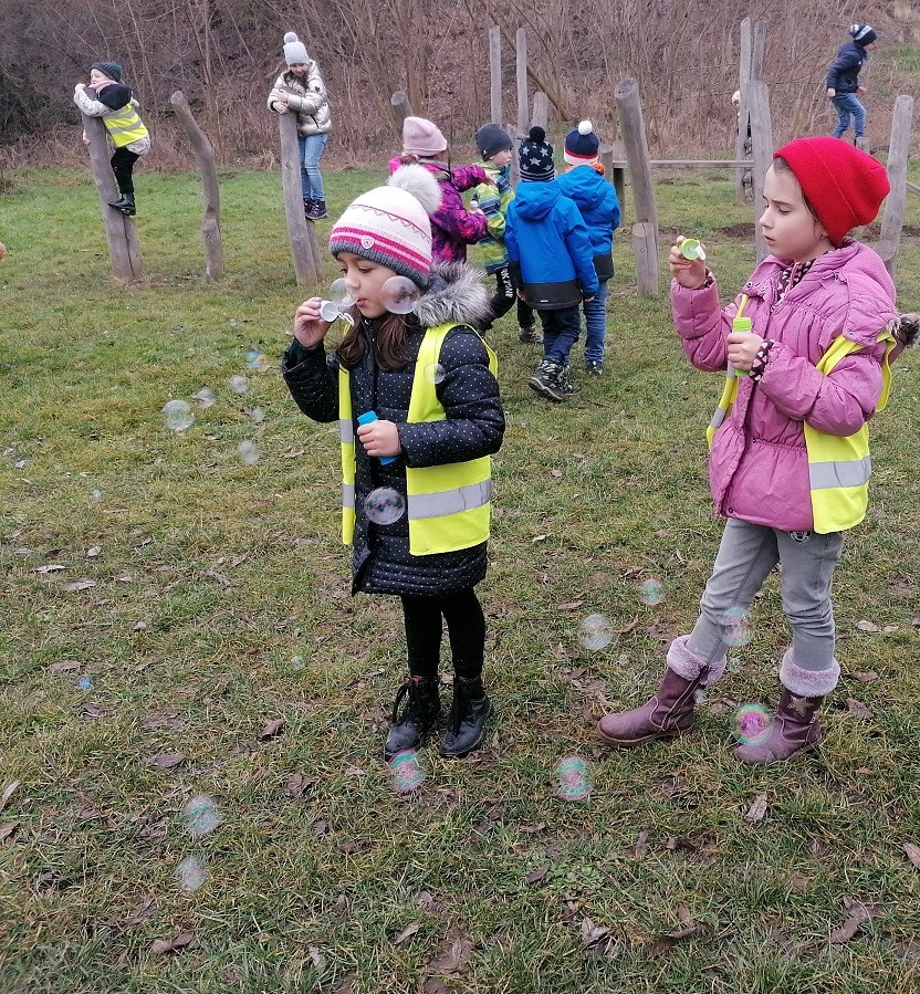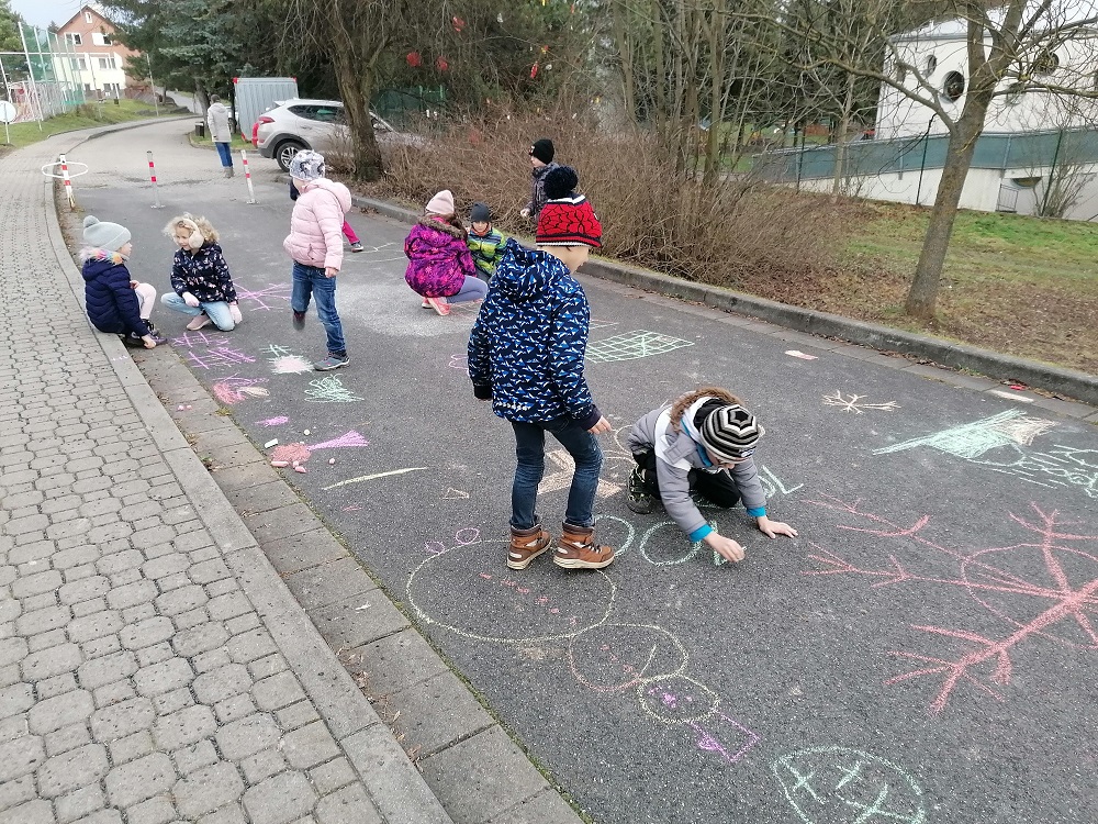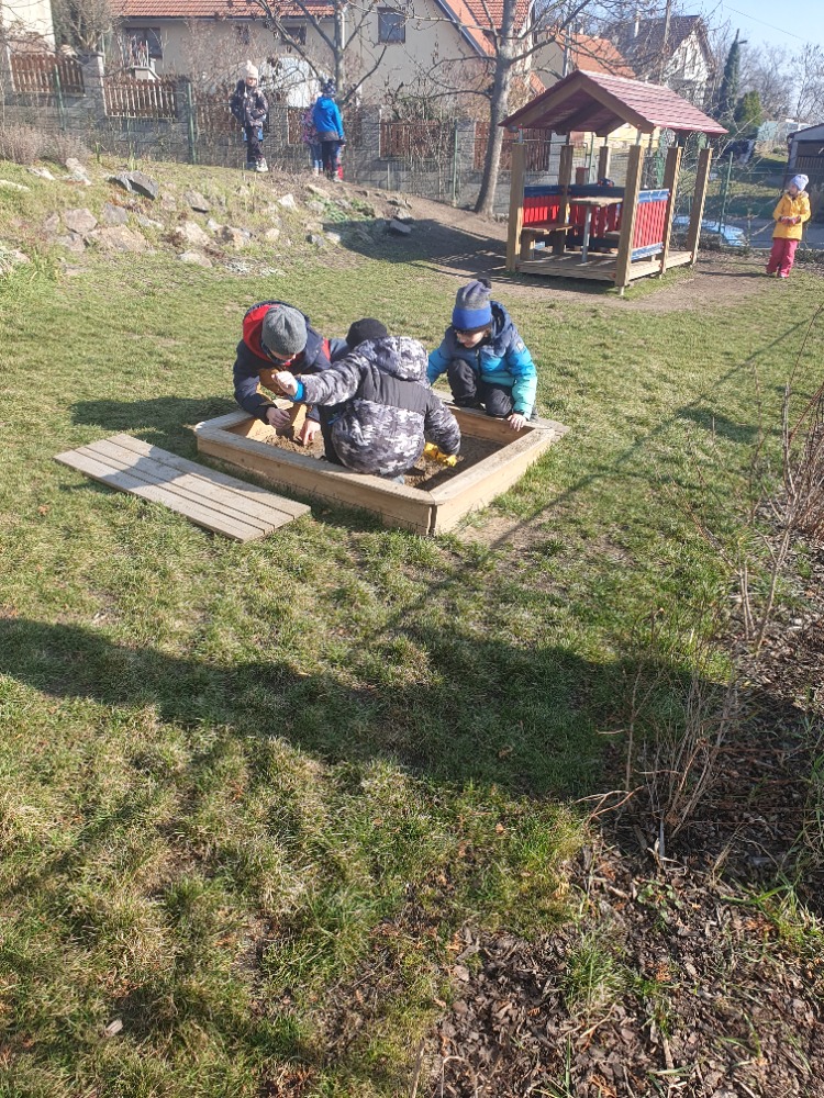 Chodili jsme prakticky každý možný den ven. Trávili jsme hodně času na velké školní zahradě, hráli ping pong či stavěli z písku, nebo si jen tak běhali po trávě. Také jsme byli v první polovině února přikrmovat ptáčky v lese – povídali jsme si o tom, jaké krmení pro ptáčky je vhodné a jaké naopak ne.