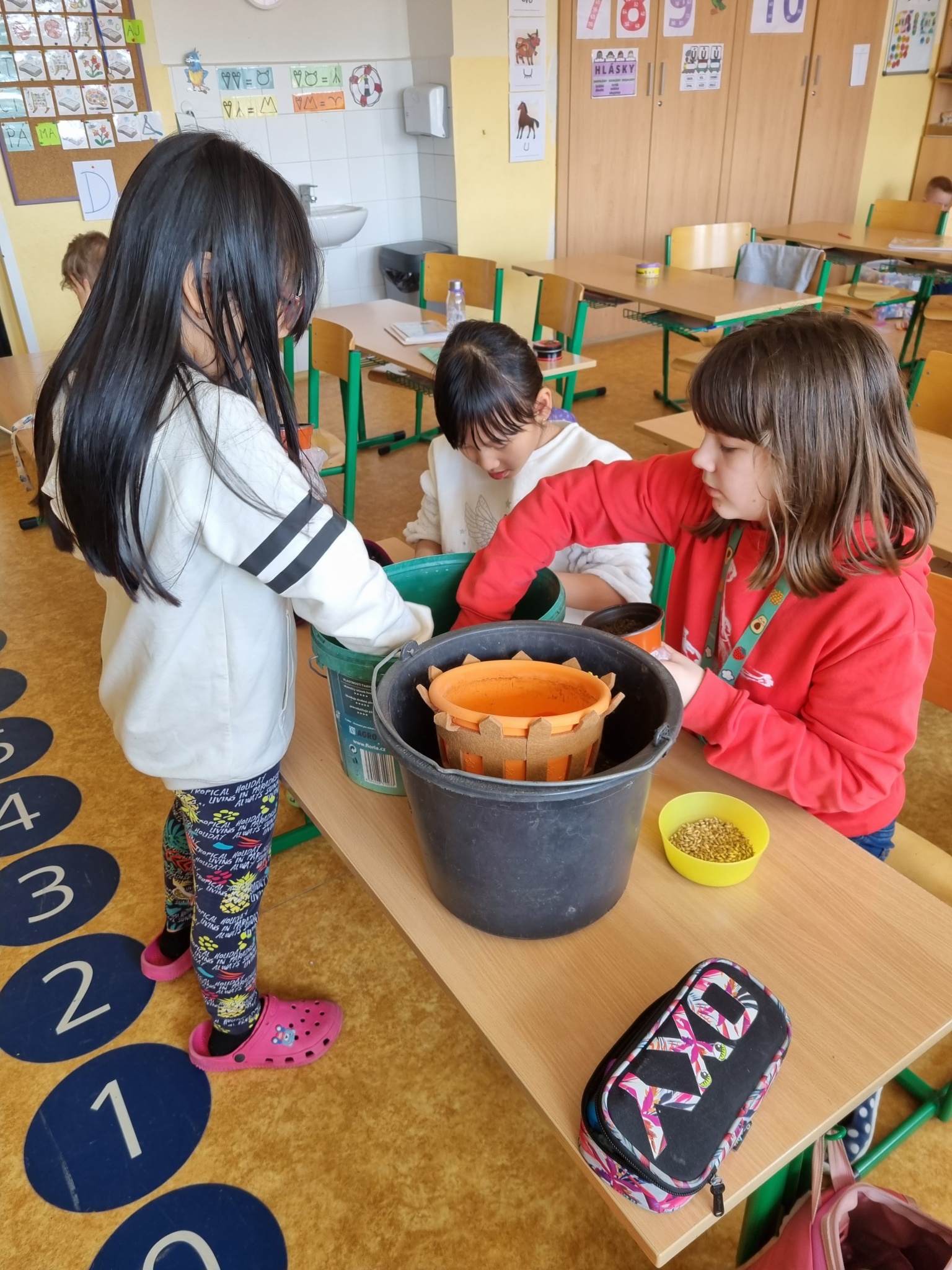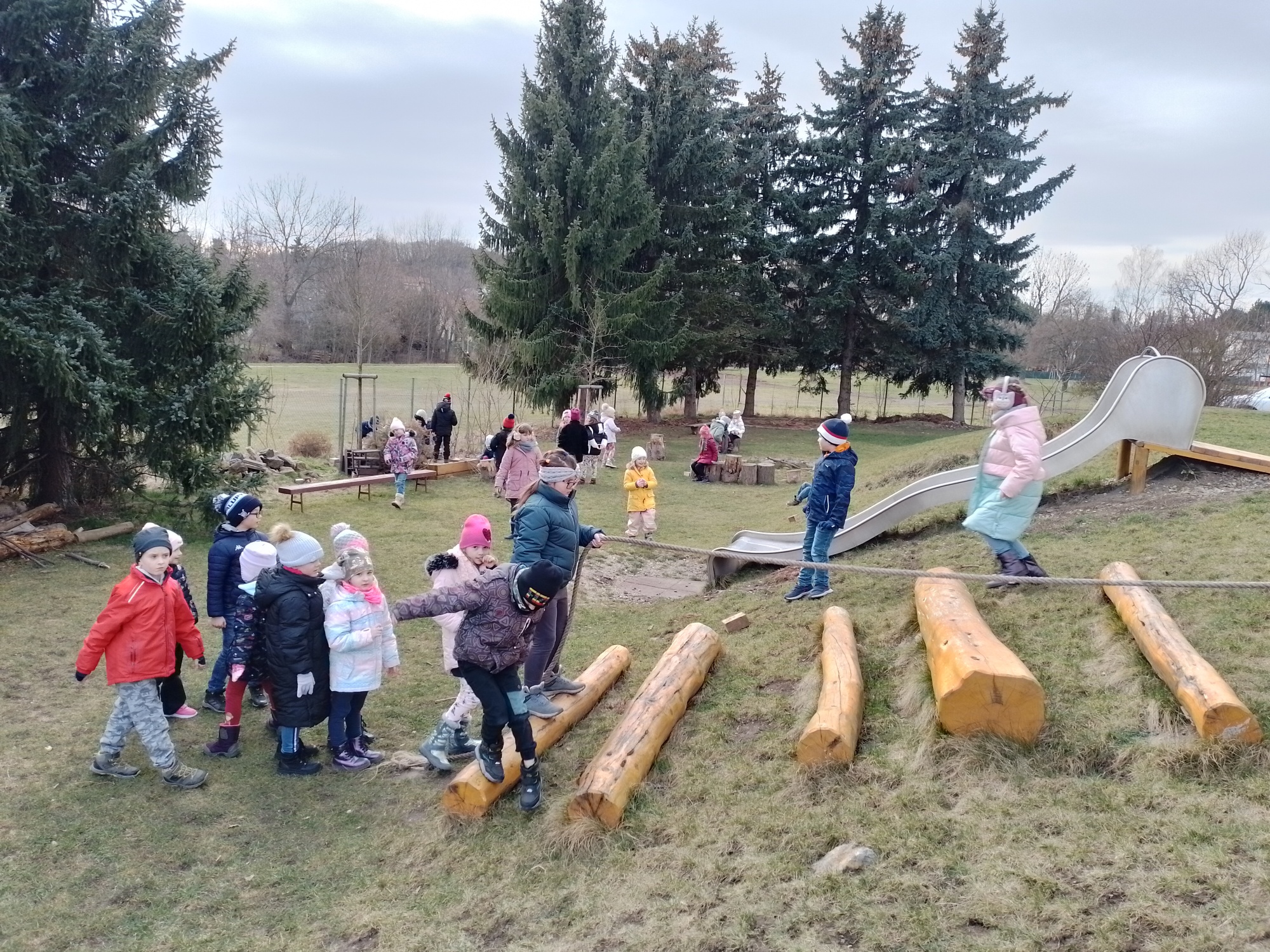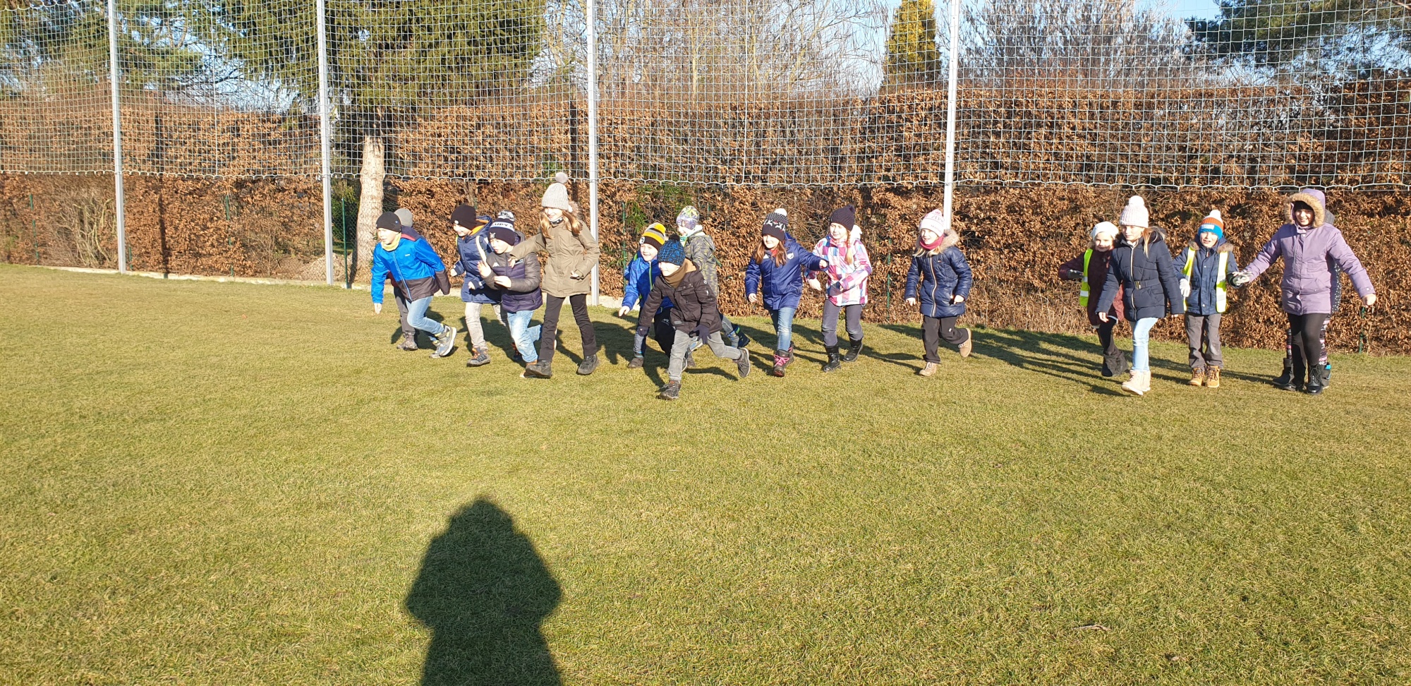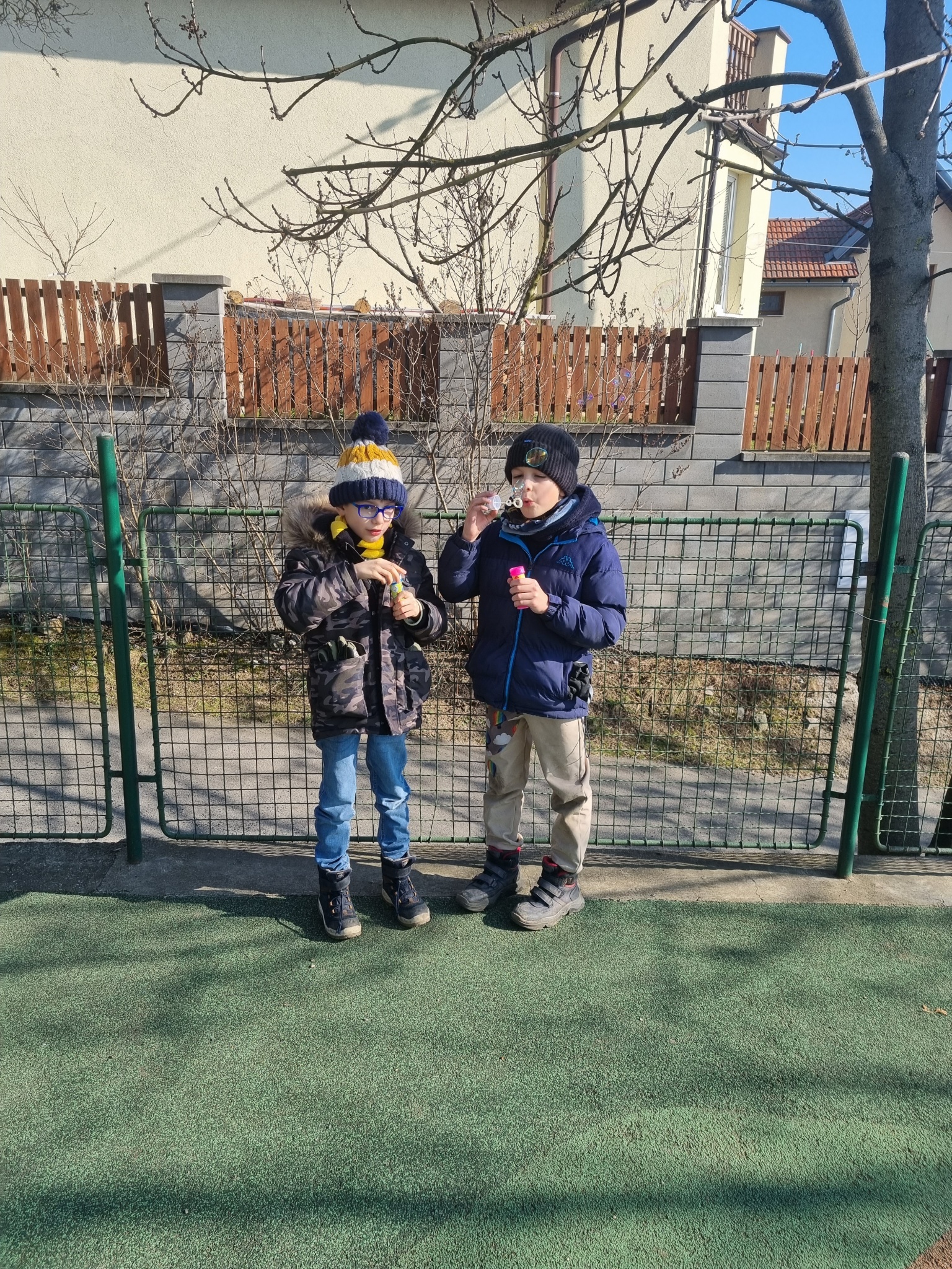 Chodili jsme prakticky každý možný den ven. Trávili jsme hodně času na velké školní zahradě, hráli ping pong či stavěli z písku, nebo si jen tak běhali po trávě. Také jsme byli v první polovině února přikrmovat ptáčky v lese – povídali jsme si o tom, jaké krmení pro ptáčky je vhodné a jaké naopak ne.