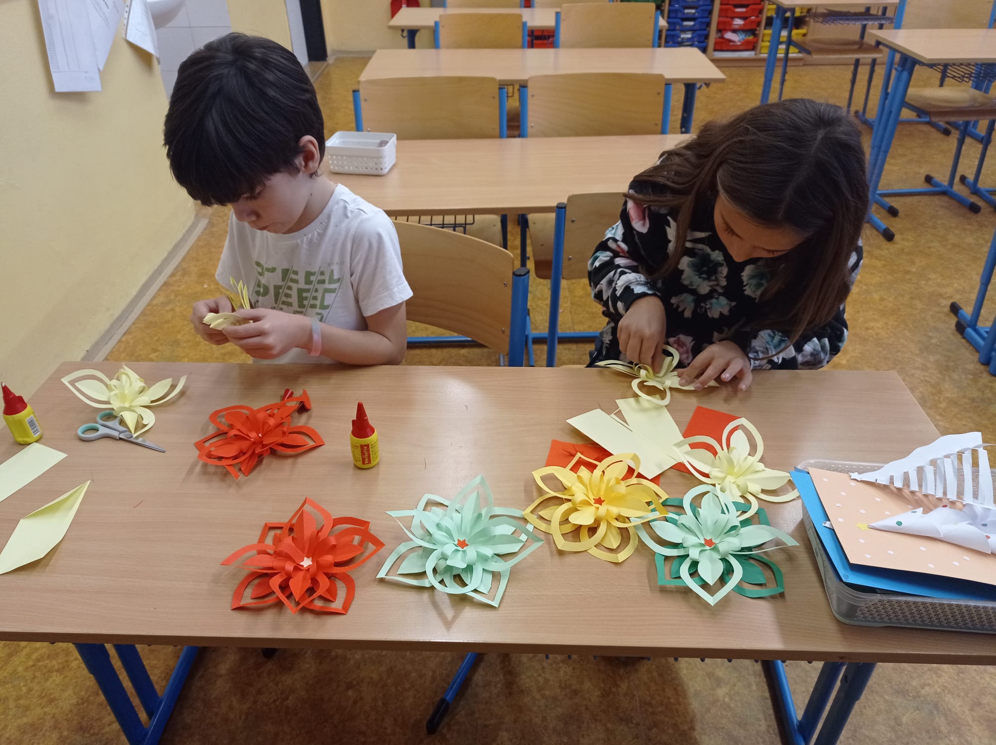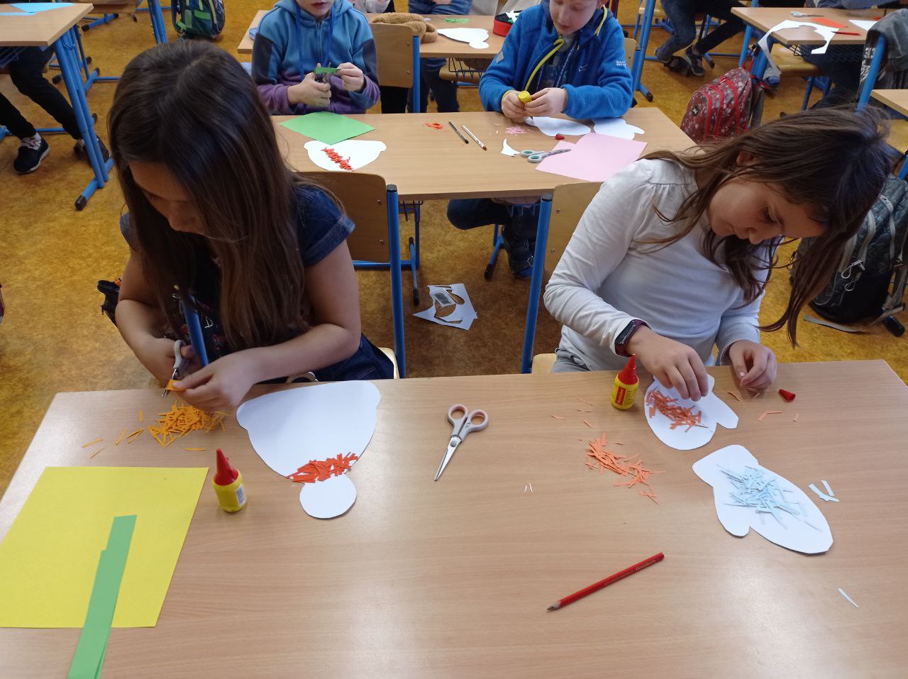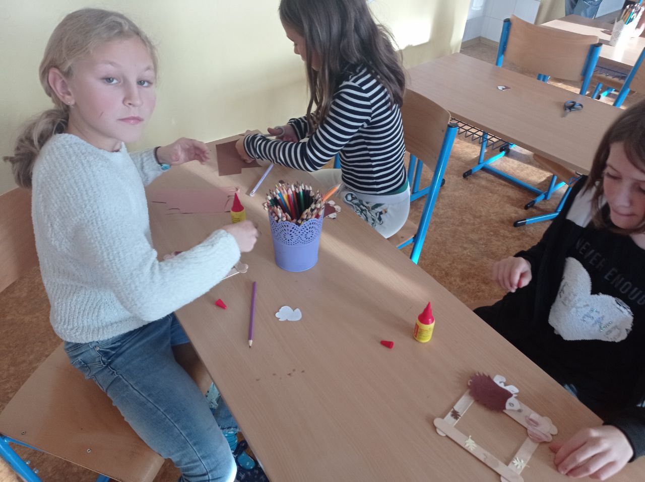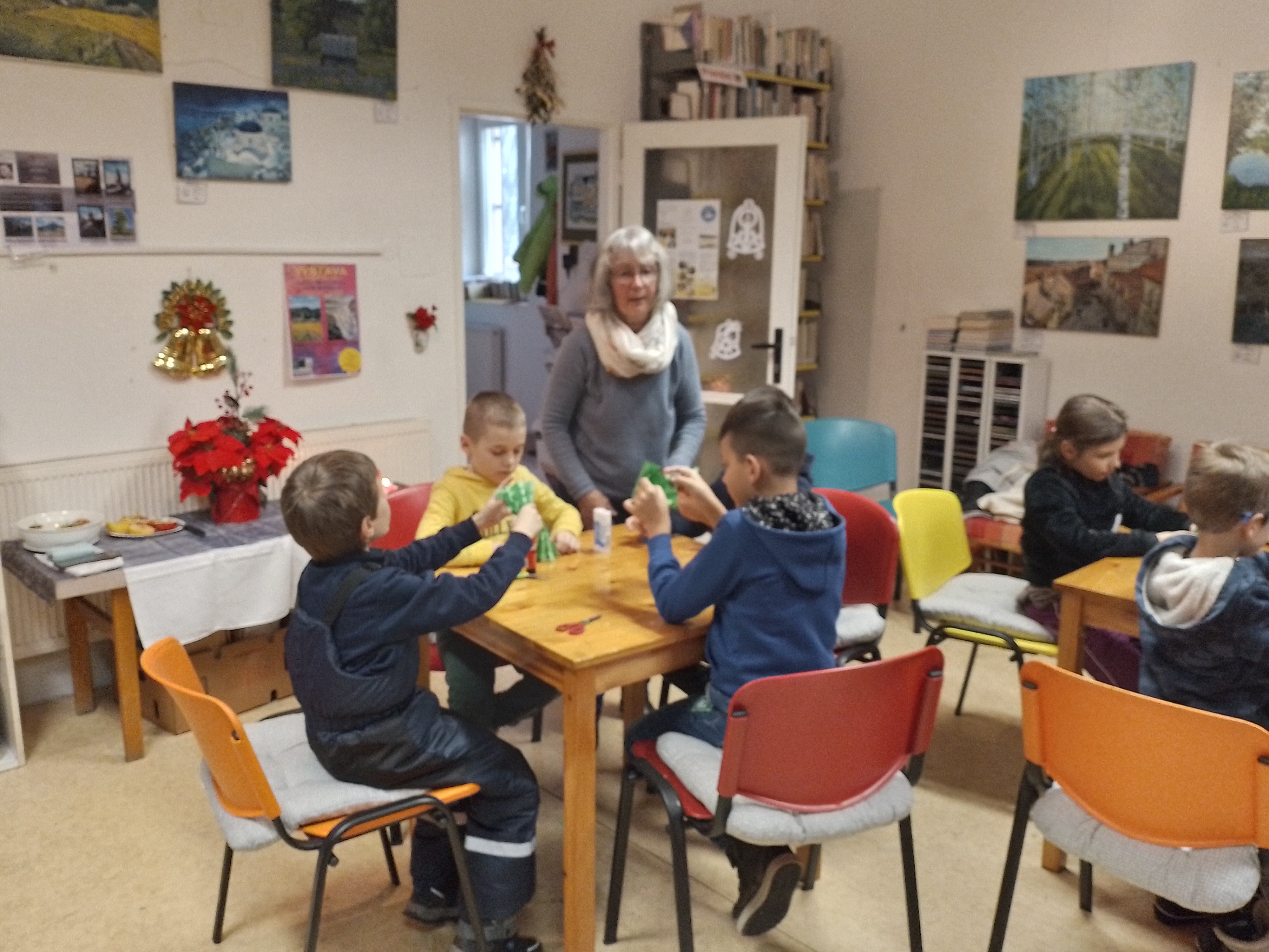 Děti připravovaly vánoční výzdobu na družinovou nástěnku, vyráběly dárečky a společně poslouchaly a zpívaly vánoční písně.