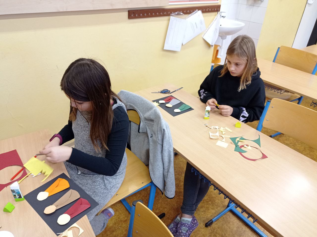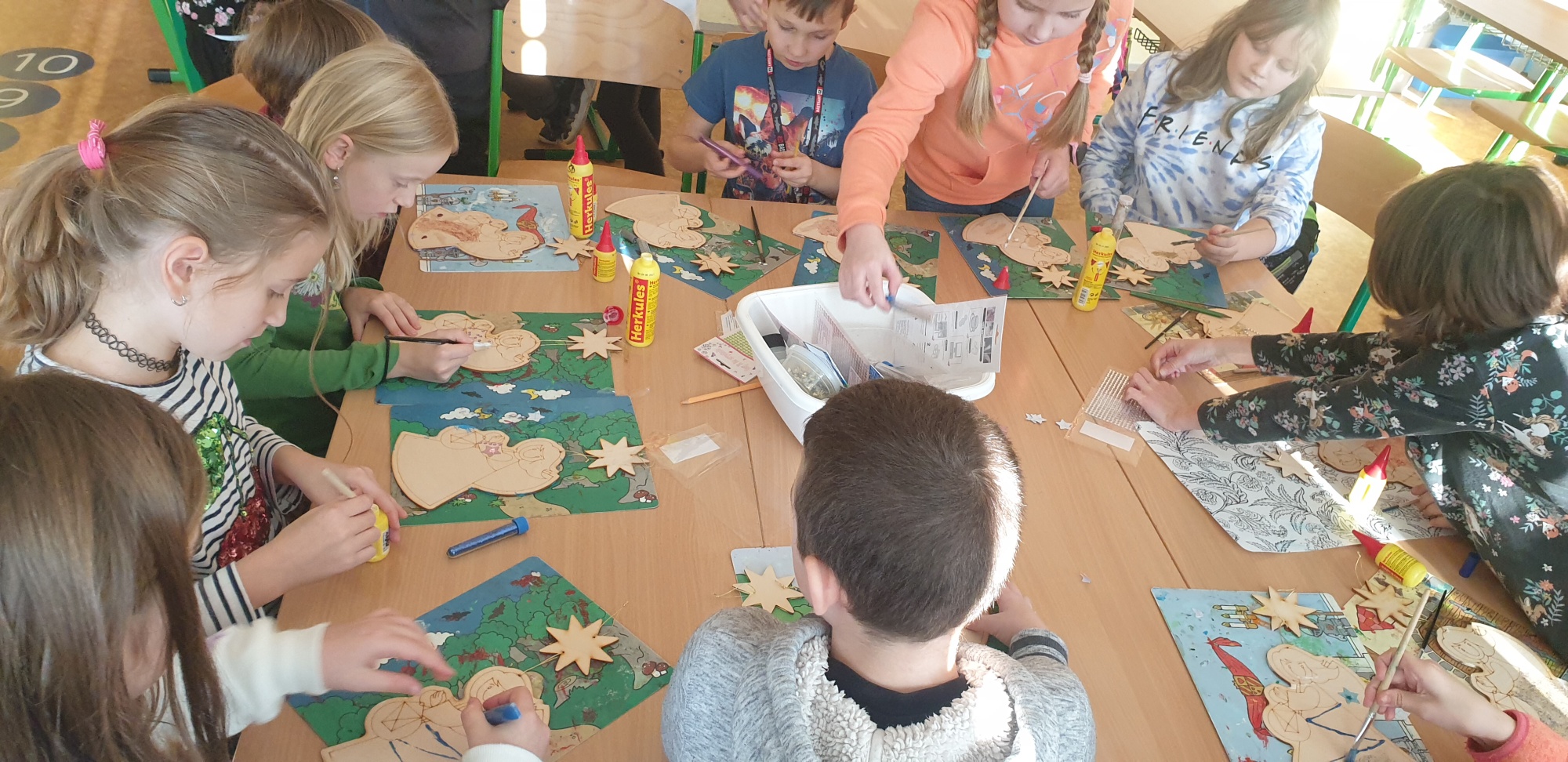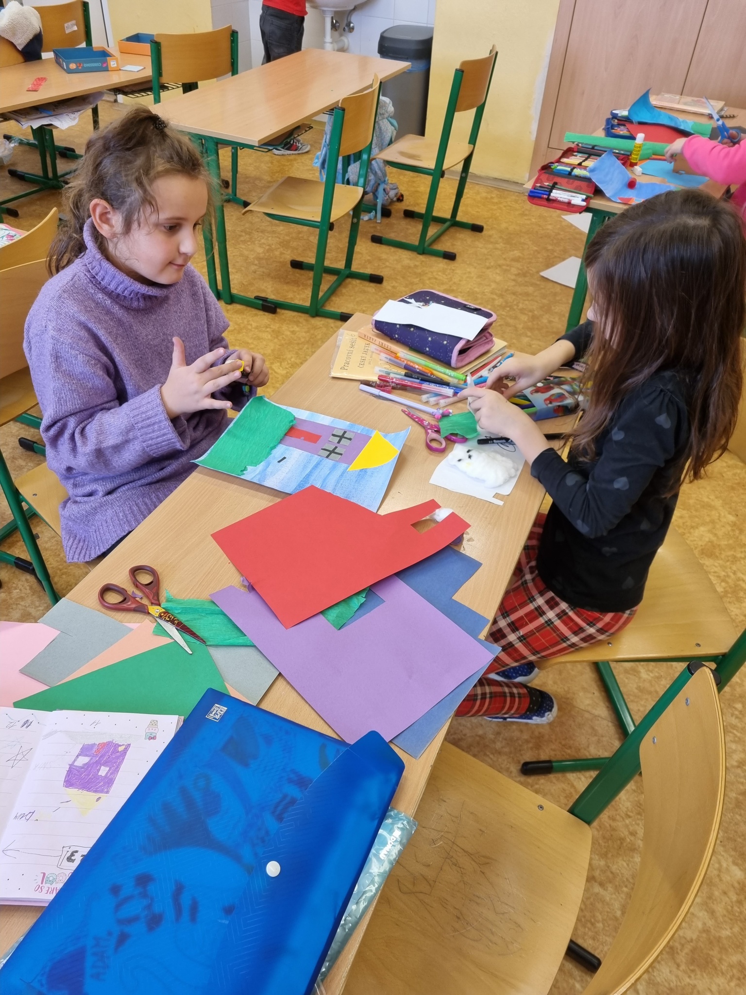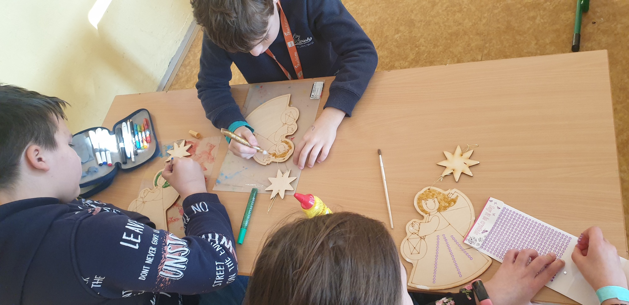 Děti připravovaly vánoční výzdobu na družinovou nástěnku, vyráběly dárečky a společně poslouchaly a zpívaly vánoční písně.