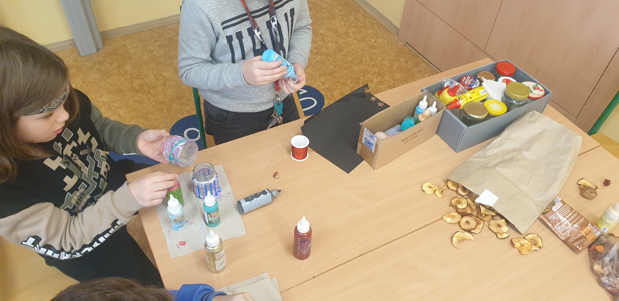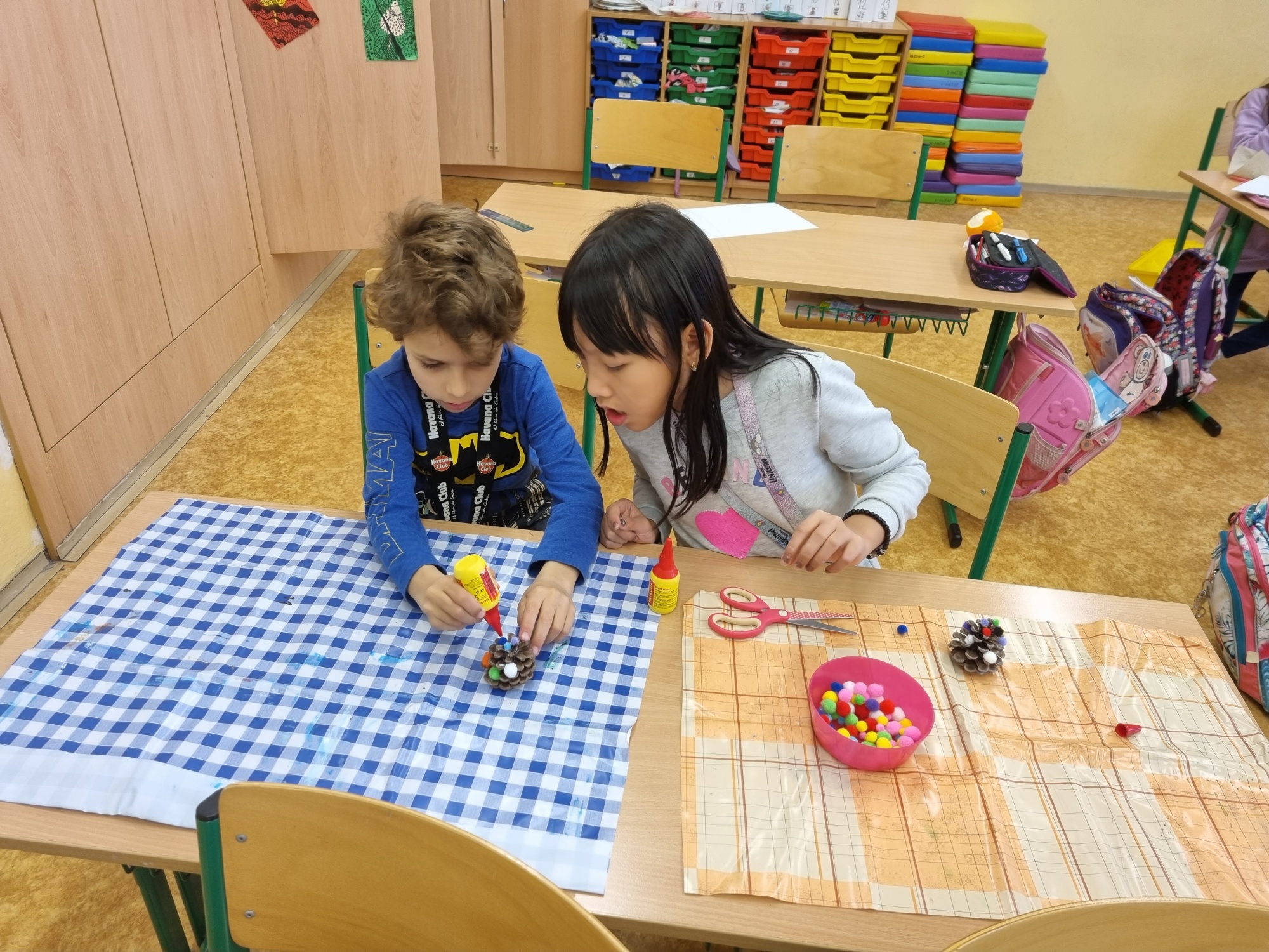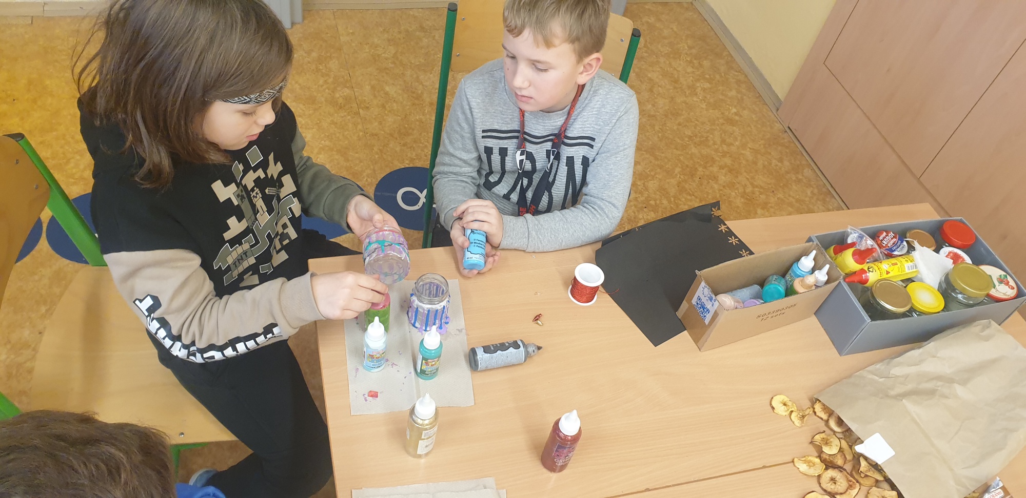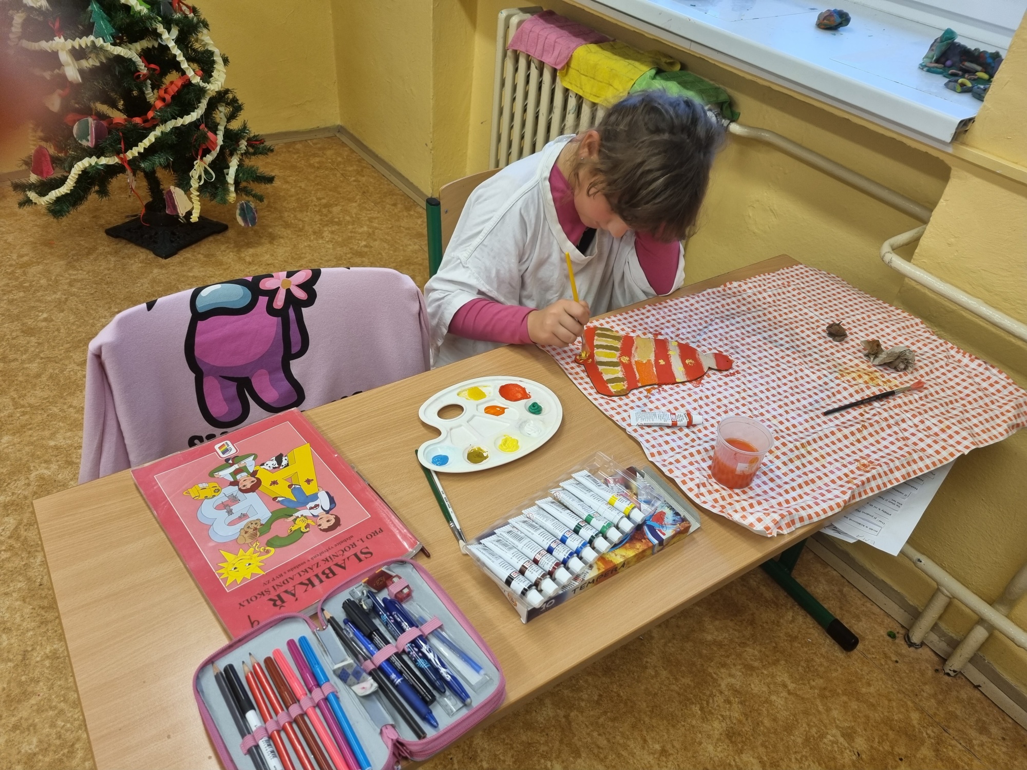 Děti připravovaly vánoční výzdobu na družinovou nástěnku, vyráběly dárečky a společně poslouchaly a zpívaly vánoční písně.