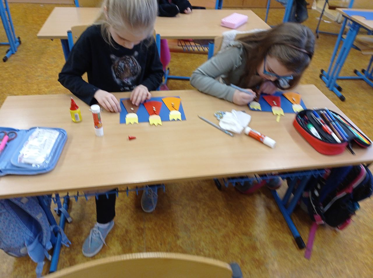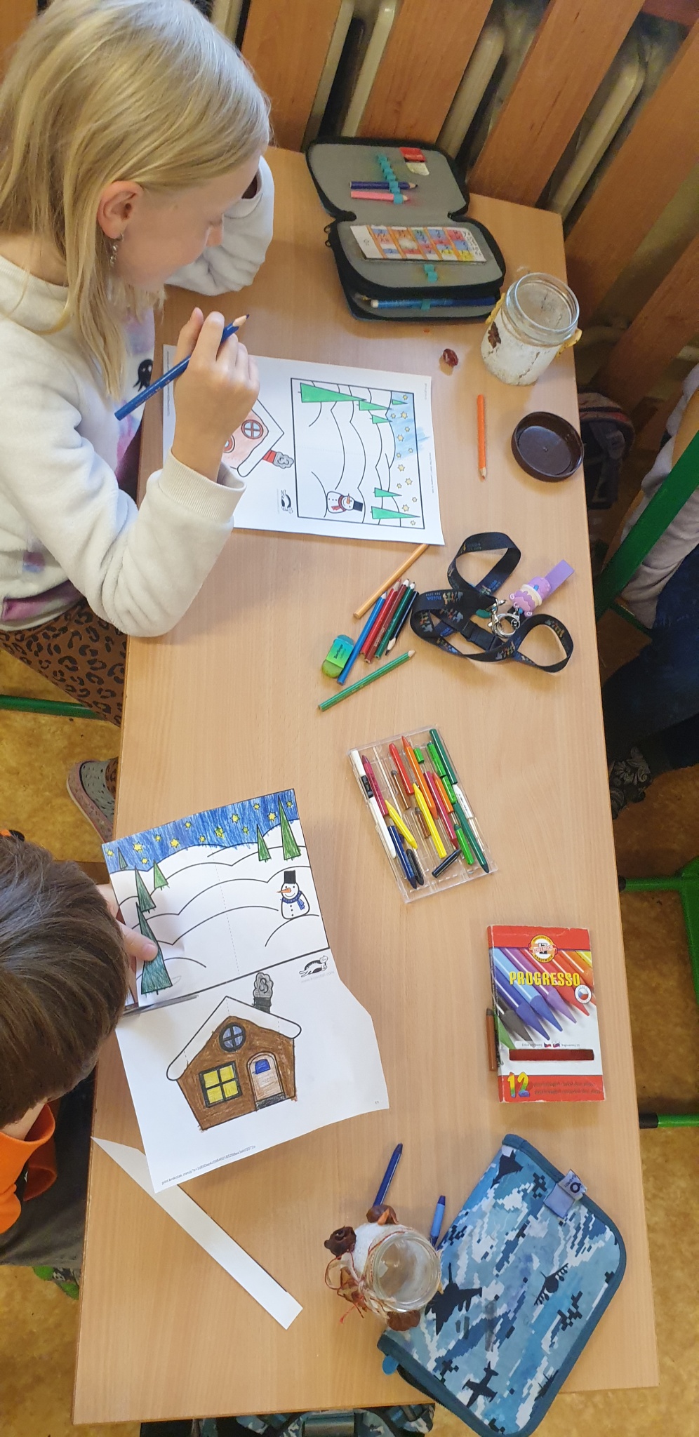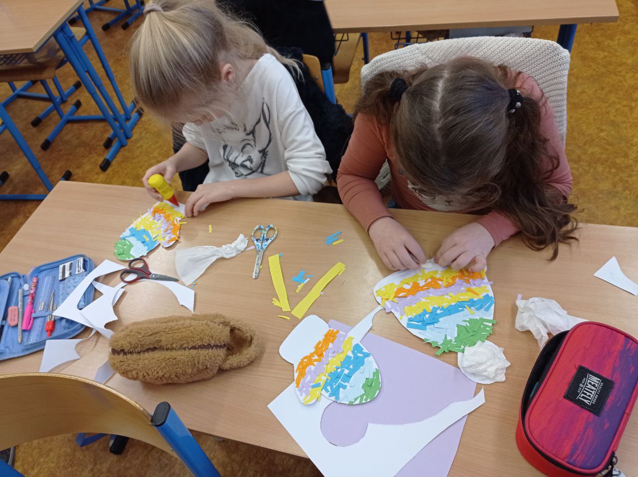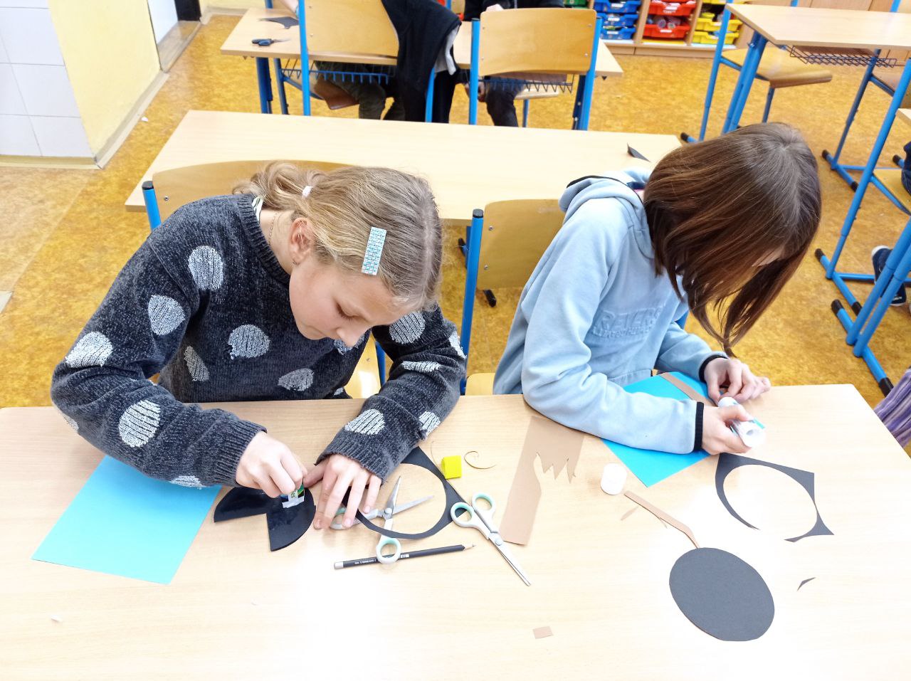 Děti připravovaly vánoční výzdobu na družinovou nástěnku, vyráběly dárečky a společně poslouchaly a zpívaly vánoční písně.