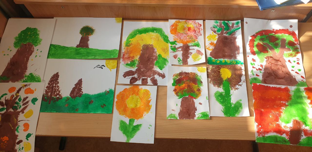 I když už venku není tak krásně zbarvená příroda, děti pořád rády tvoří barevný podzim. Vytvořily věnečky s použitím listů, podzimní obrázky ze špachtlí zdobené barevným listím a také namalovaly podzim temperami s pomocí bramborových tiskátek. Děti si připomněly Svatého Martina, který přijíždí na bílém koni, a i když nám sníh nepřinesl, dětem to nevadilo a vytvořily si zasněžený obrázek samy.