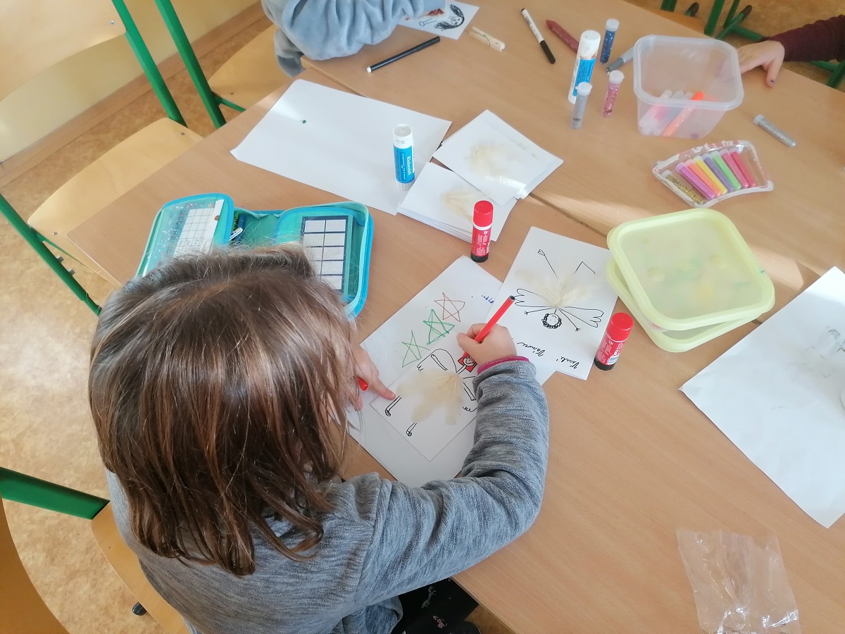 rádi bychom Vám představili, co se nám podařilo zvládnout v adventním čase. Každý den jsme otevírali jednu obálku, kde jsme se dozvěděli více o Vánocích, jejich tradicích a zvycích. Někdy jsme tam měli i nějaký úkol. Děti měly další den přijít v každé ponožce jiné, naučili jsme se říkat komplimenty či paní vychovatelka se stala na jeden den veličenstvem a kdo ji oslovil jinak, musel jí namalovat obrázek.