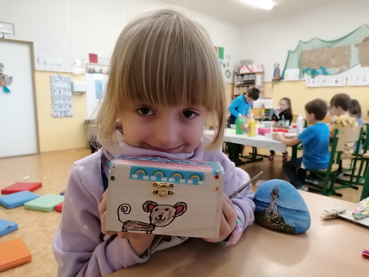 Také i k nám zavítali malí andílci a jejich protějšci z pekla. Nebojte, byli jen z papíru, ale v 3D podobě, jako skládanka. Potom jsme vytvářeli přáníčka se sobíkem a andělíčkem. Děti si také vytvořili truhličku na poklady. Namalovali jsme si vlastní stromeček s ozdobami. Tvoření nebralo konce!