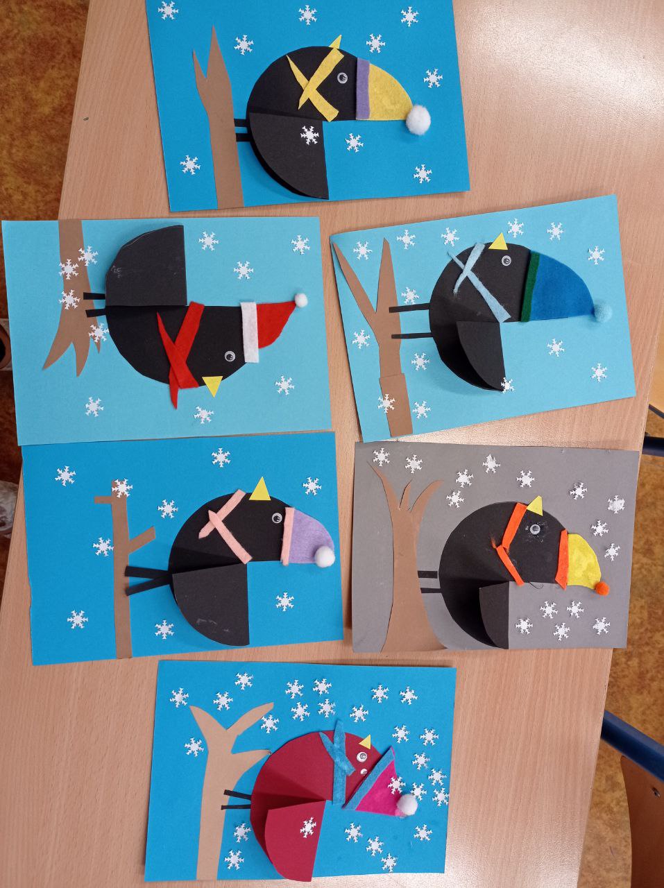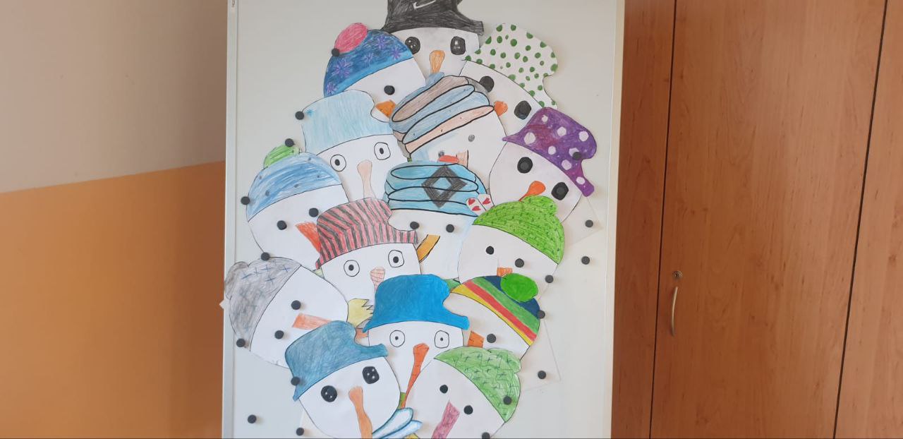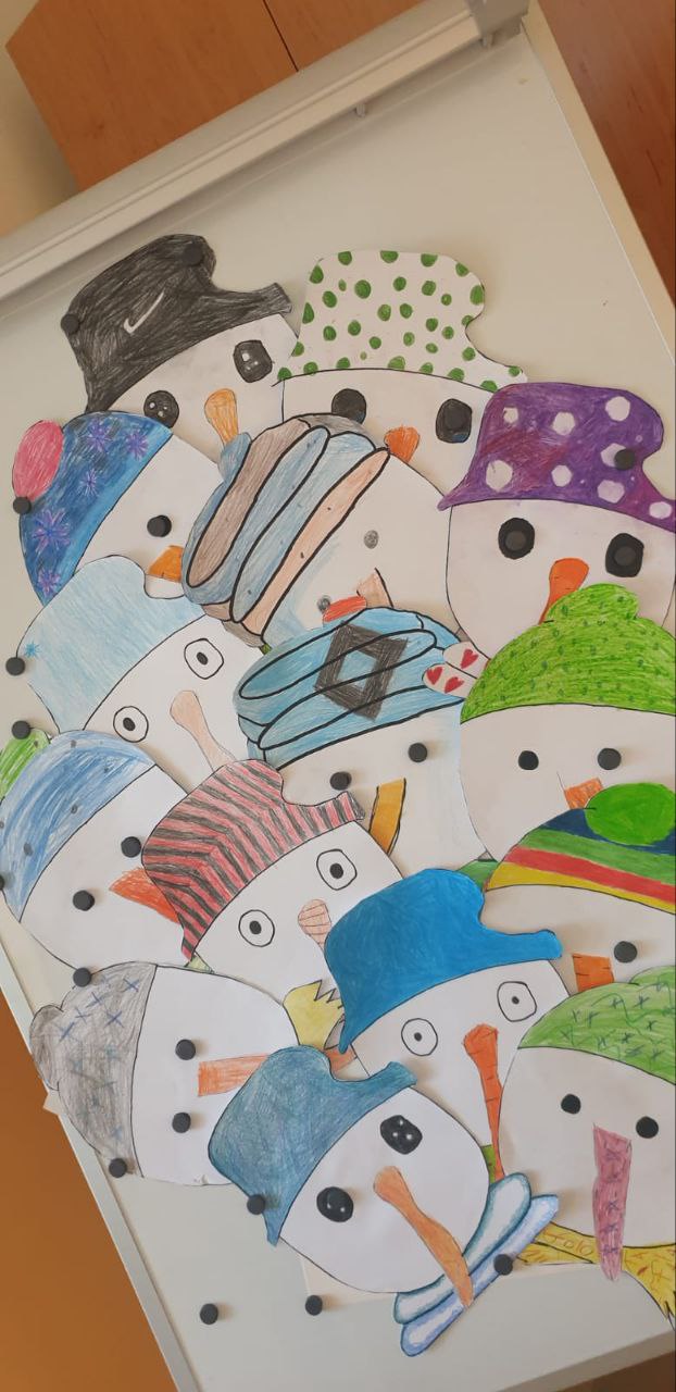 Nejprve jsme vytvořili Tři krále, jejichž svátkem bylo ukončeno vánoční období. A protože se nám stýskalo po sněhu, museli jsme využít naši fantazii a vytvářeli jsme zimní krajinu, zasněženého ptáčka, sovičku, strom ze samých sněhuláků a čepici s rukavicemi, aby nám nebyla zima 😊