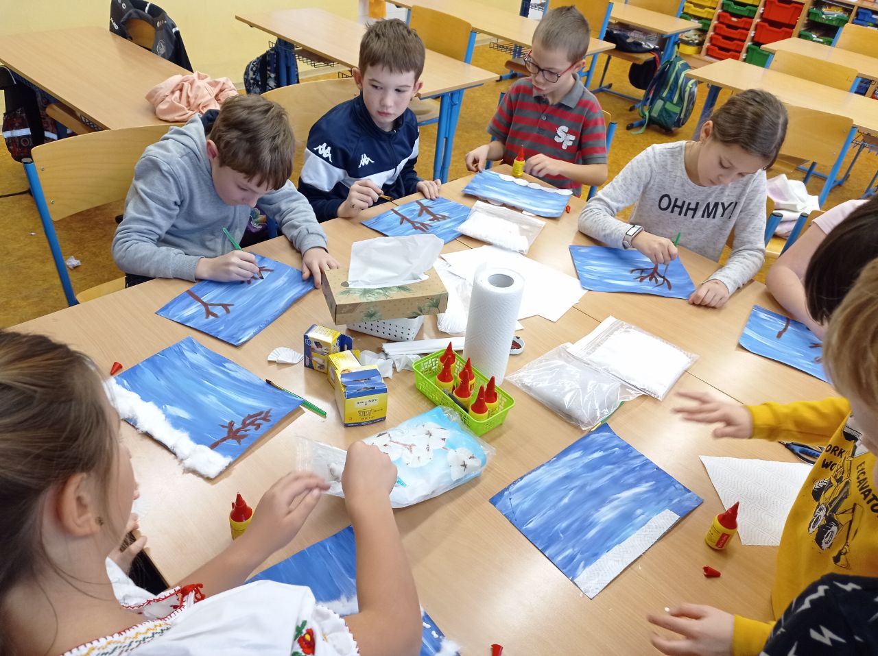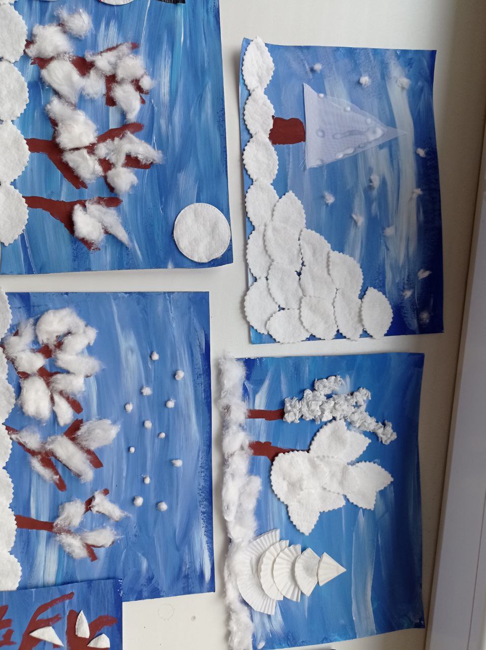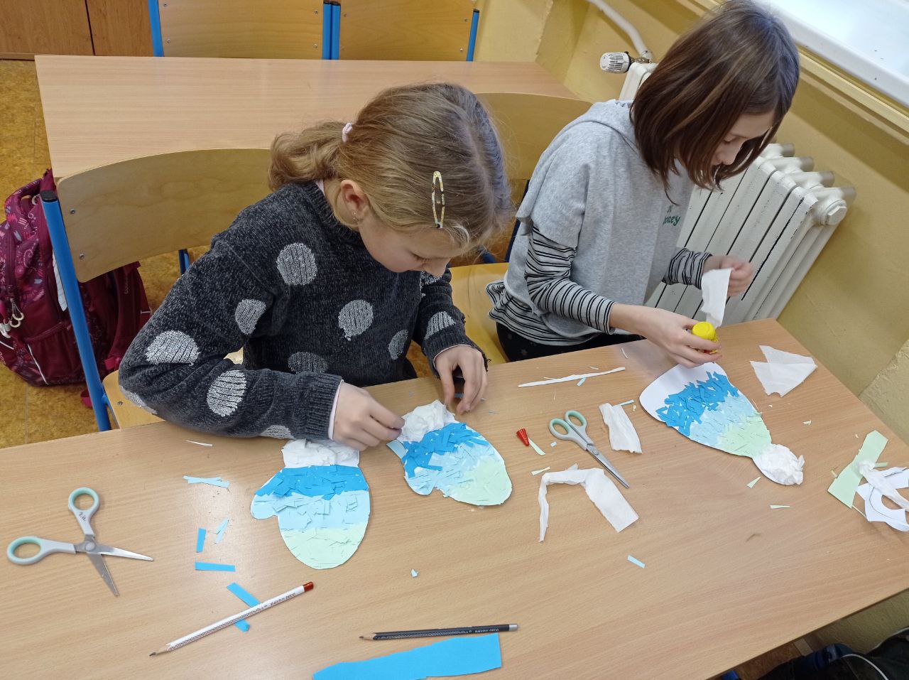 Nejprve jsme vytvořili Tři krále, jejichž svátkem bylo ukončeno vánoční období. A protože se nám stýskalo po sněhu, museli jsme využít naši fantazii a vytvářeli jsme zimní krajinu, zasněženého ptáčka, sovičku, strom ze samých sněhuláků a čepici s rukavicemi, aby nám nebyla zima 😊