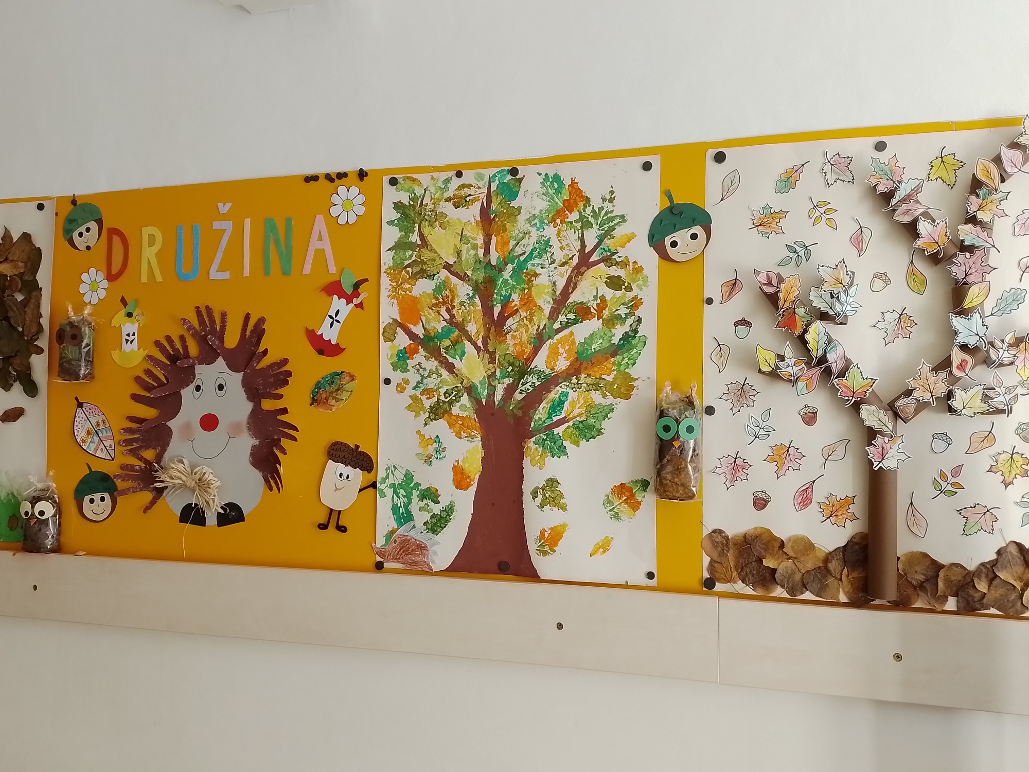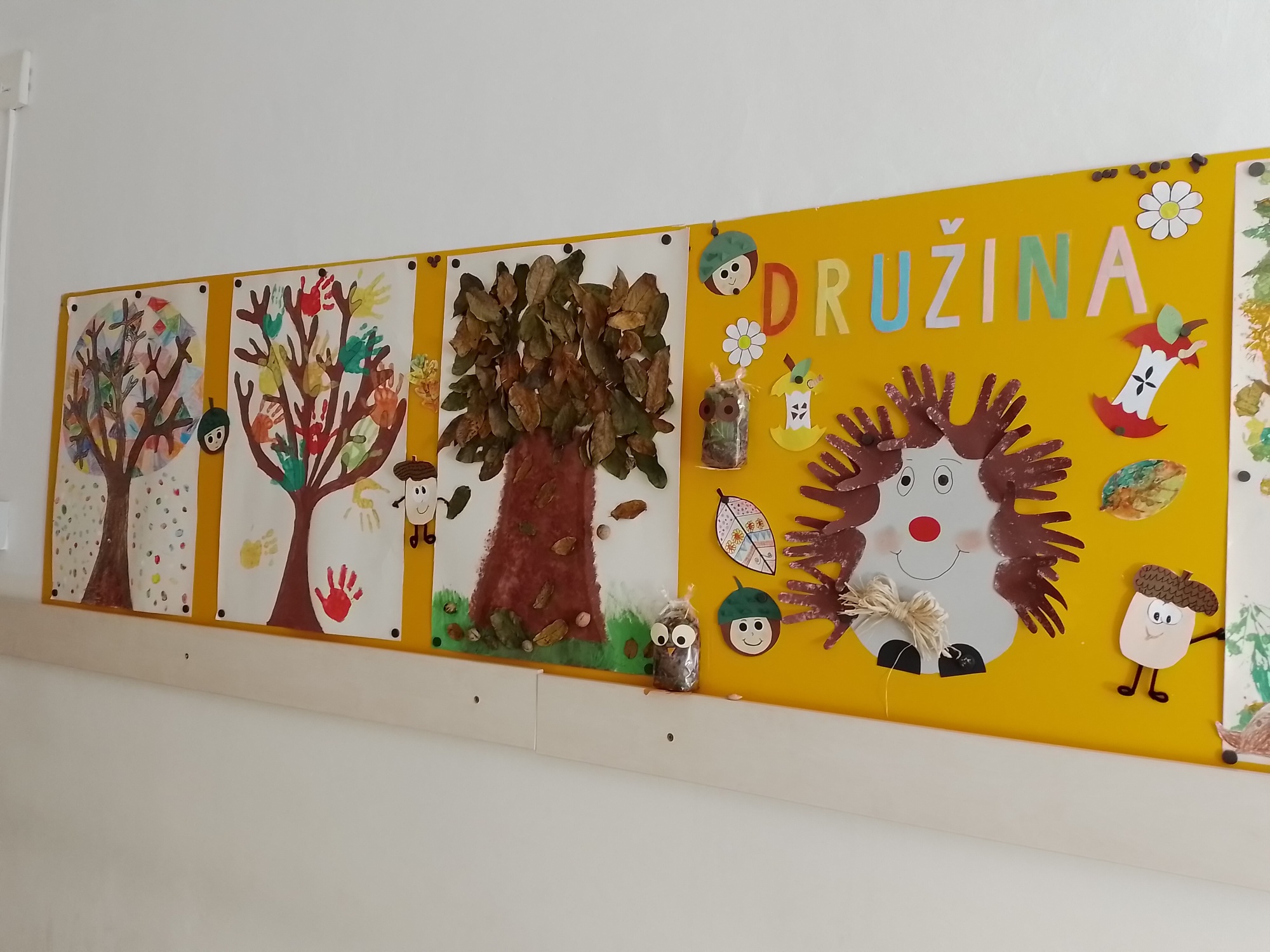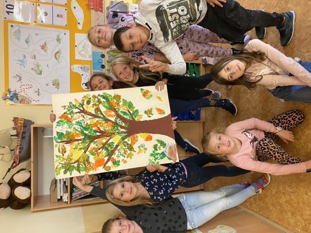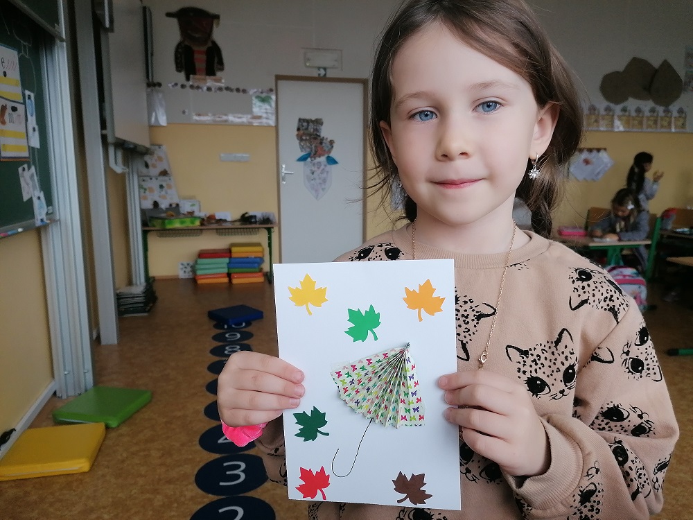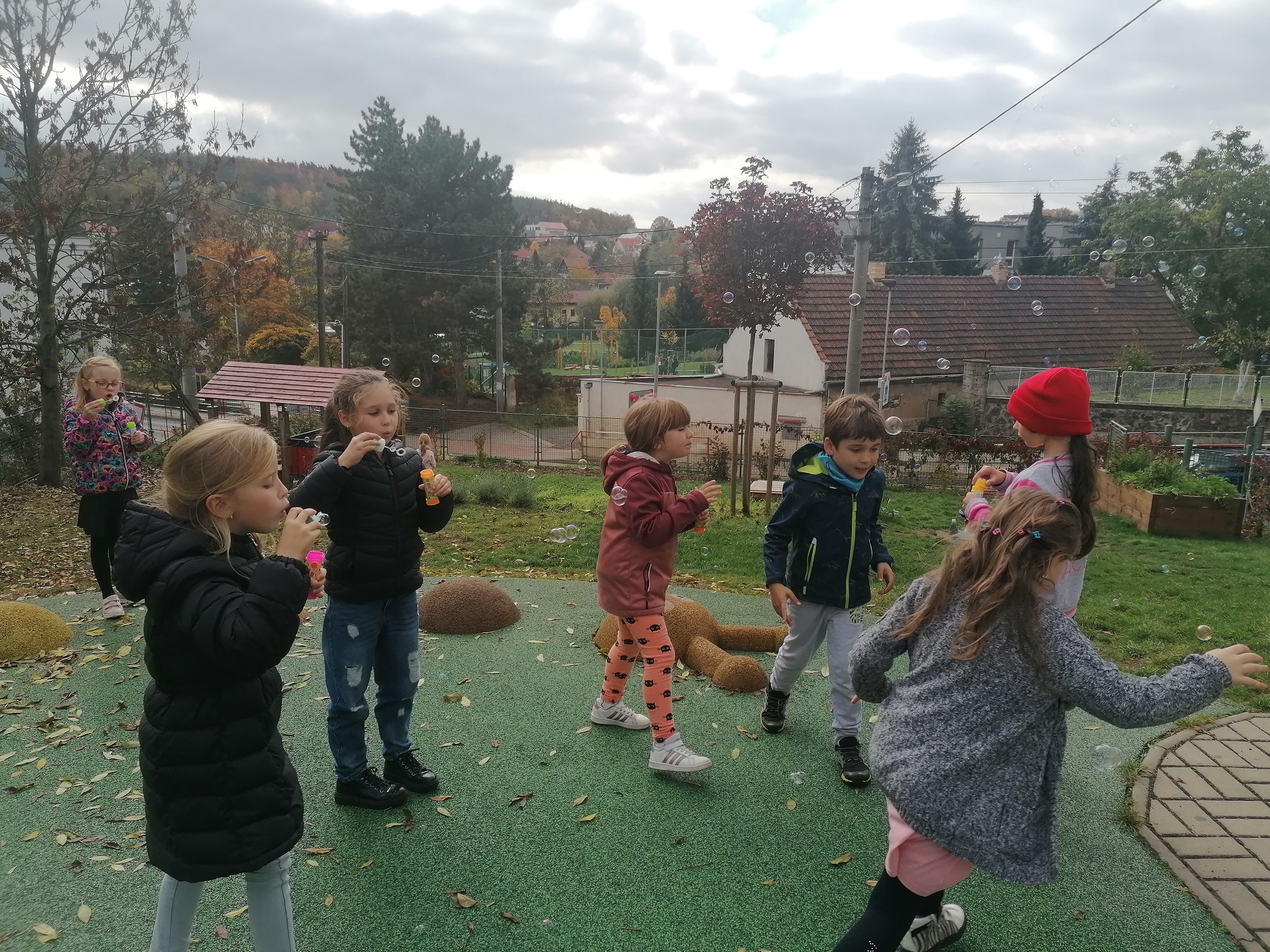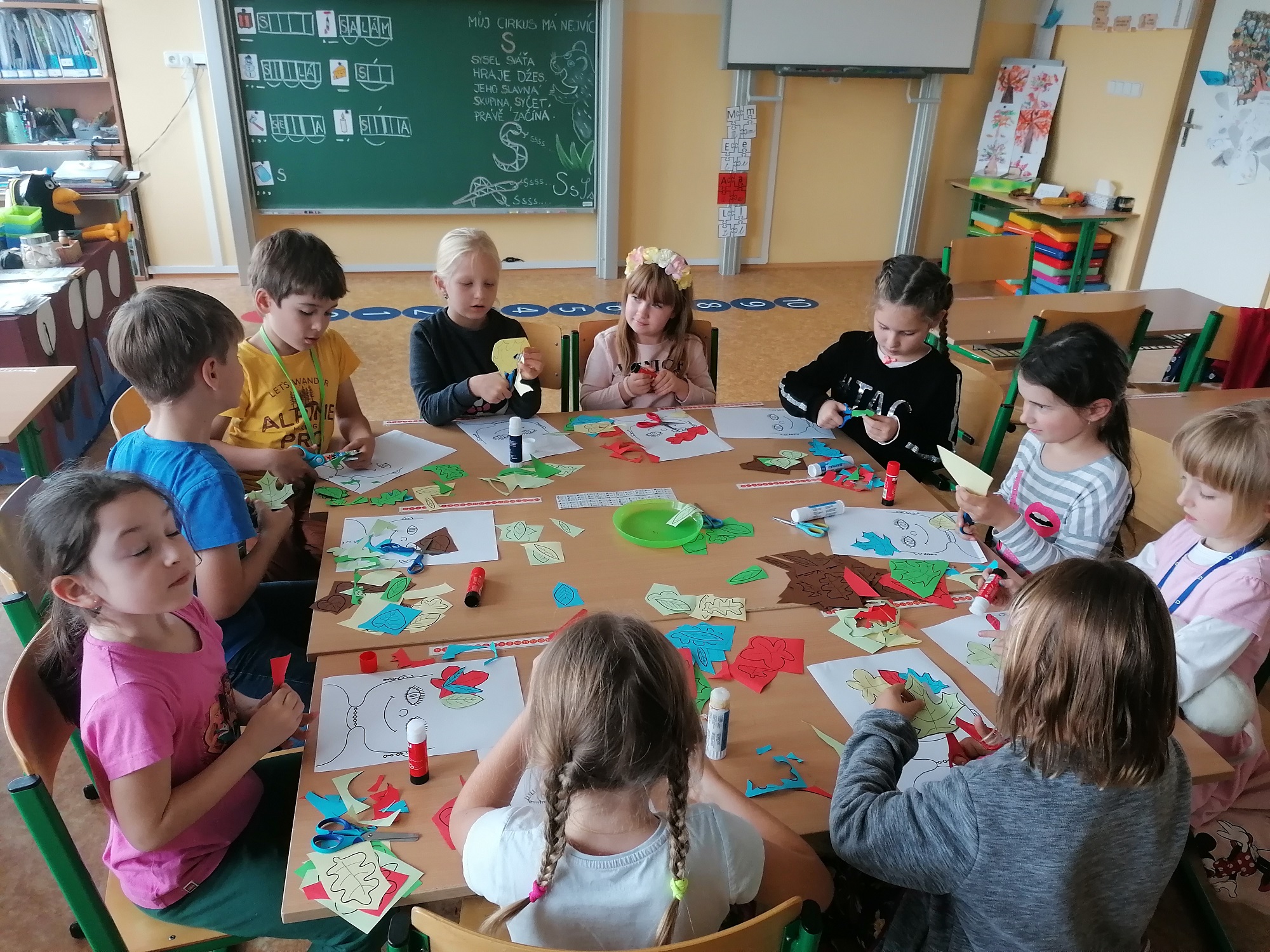 za naše oddělení školní družiny mohu říci, že listopad byl velmi zajímavý. Dělali jsme spoustu aktivit. Uvnitř jsme často před vycházkou tvořili a tak můžete vidět i zde několik našich výrobků – deštníček, panáčky z vystříhaných lístků či parádního podzimního lvíčka. Také jsme si utvořili na naši nástěnku celoroční strom, který nám pomůže lépe sledovat změny v přírodě a budeme je tedy na něj promítat. Vytvořili jsme si také pestrého a veselého podzimního draka. Na nástěnce nechybí ani procvičování učiva, a tak pečlivě opakujeme jednotlivá naučená písmena. Chodíme také ven, a to prakticky každý den. Místa, která jsme od začátku školního roku navštívili, nespočítáme na prstech jedné ruky. Na fotkách můžete vidět naše oblíbené stavění domečků v lese. Také jsme foukali bubliny, to byla zábava! Bylo sice pod mrakem, ale zjistili jsme, že jsou parádně barevné a na jejich počítání nám nestačily všechny prstíky naší družiny. Samozřejmě hrajeme i spoustu her a nejraději máme běhací pexesa.