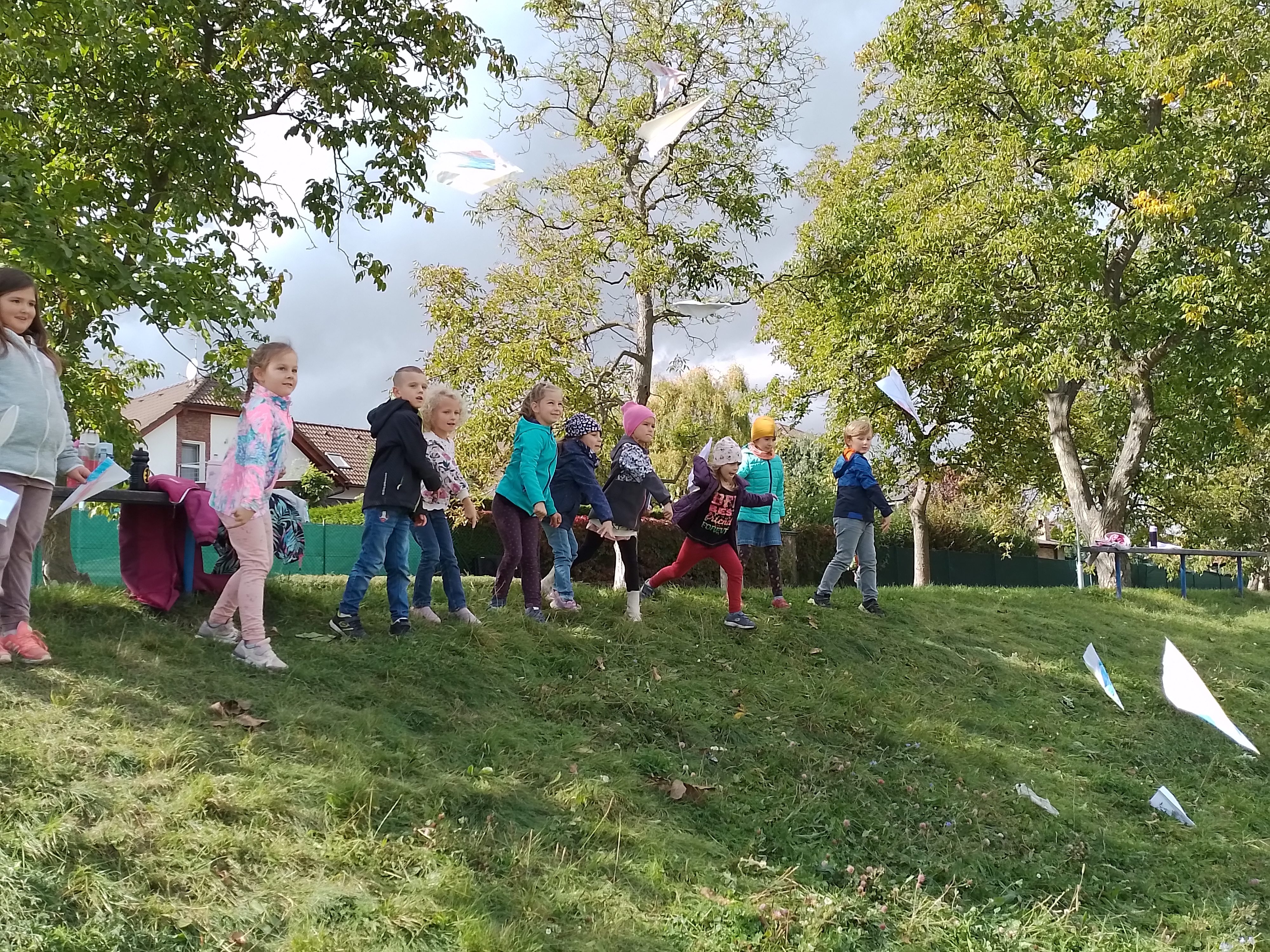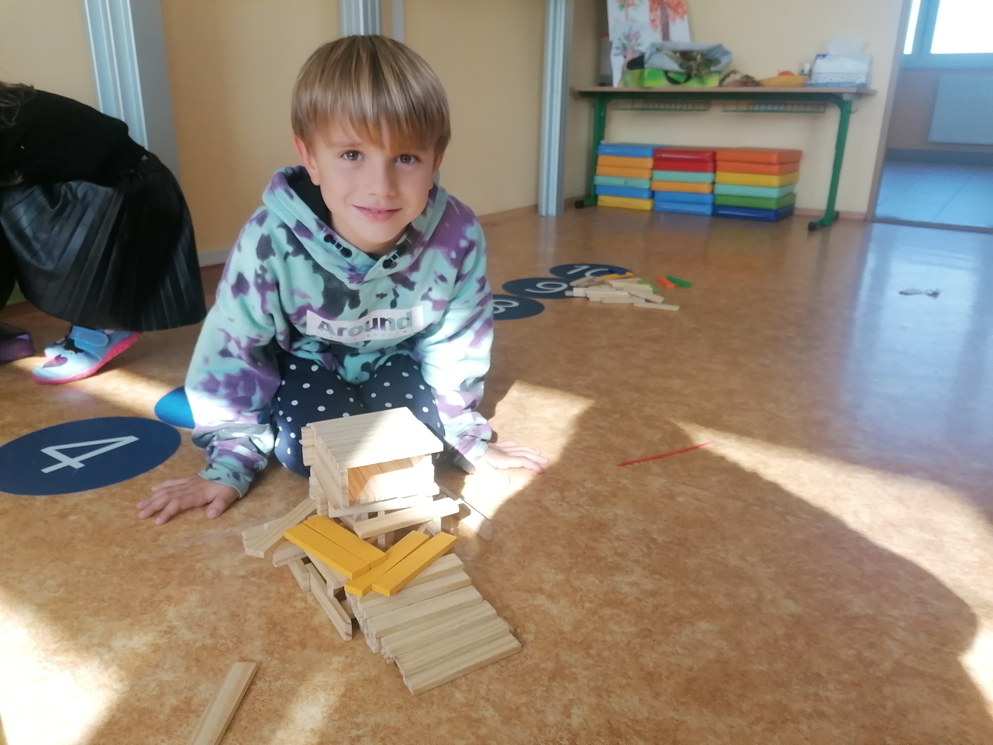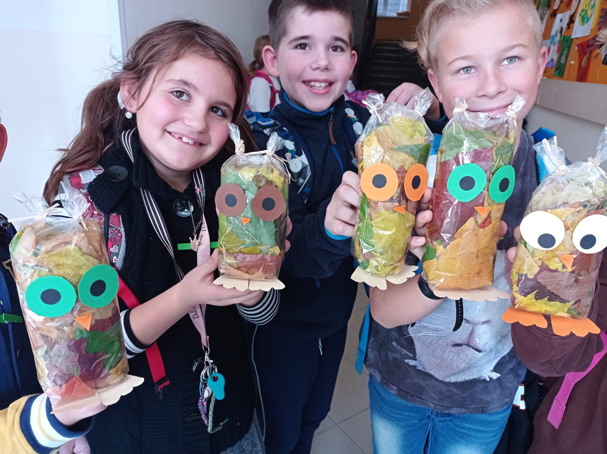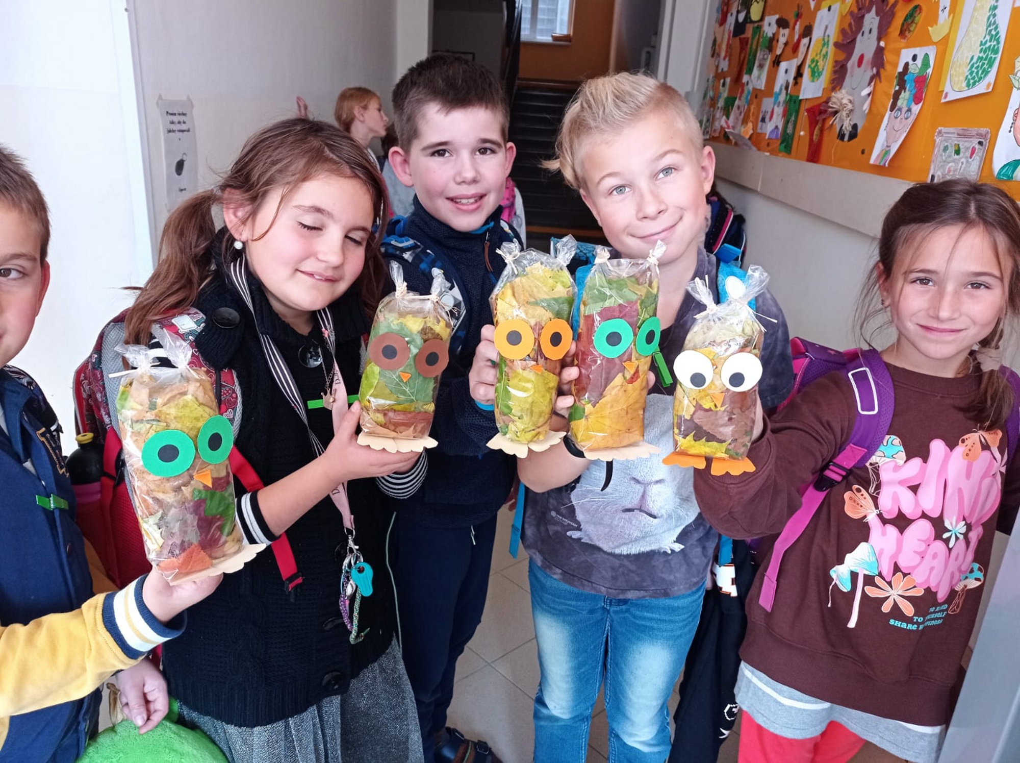 za naše oddělení školní družiny mohu říci, že listopad byl velmi zajímavý. Dělali jsme spoustu aktivit. Uvnitř jsme často před vycházkou tvořili a tak můžete vidět i zde několik našich výrobků – deštníček, panáčky z vystříhaných lístků či parádního podzimního lvíčka. Také jsme si utvořili na naši nástěnku celoroční strom, který nám pomůže lépe sledovat změny v přírodě a budeme je tedy na něj promítat. Vytvořili jsme si také pestrého a veselého podzimního draka. Na nástěnce nechybí ani procvičování učiva, a tak pečlivě opakujeme jednotlivá naučená písmena. Chodíme také ven, a to prakticky každý den. Místa, která jsme od začátku školního roku navštívili, nespočítáme na prstech jedné ruky. Na fotkách můžete vidět naše oblíbené stavění domečků v lese. Také jsme foukali bubliny, to byla zábava! Bylo sice pod mrakem, ale zjistili jsme, že jsou parádně barevné a na jejich počítání nám nestačily všechny prstíky naší družiny. Samozřejmě hrajeme i spoustu her a nejraději máme běhací pexesa.